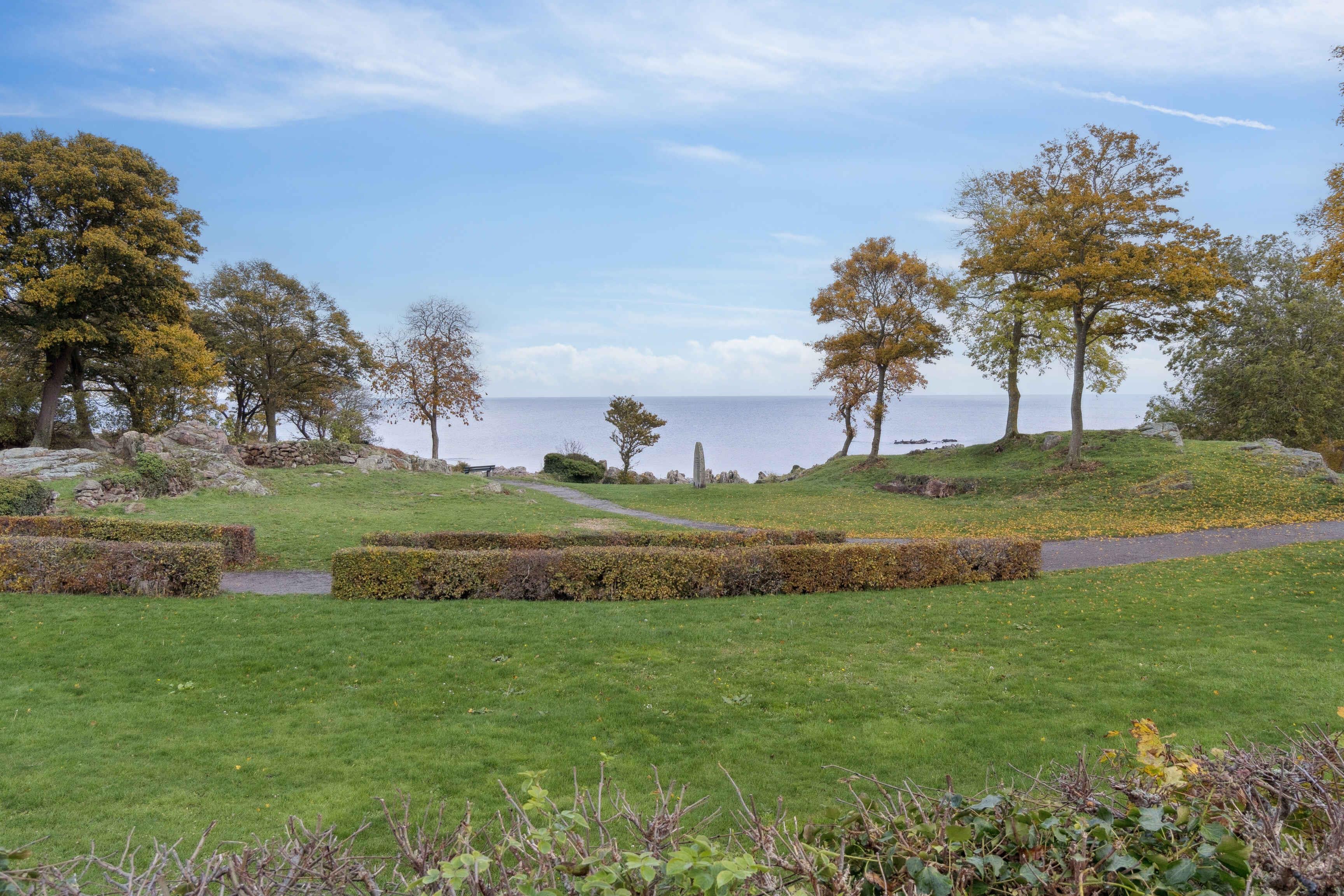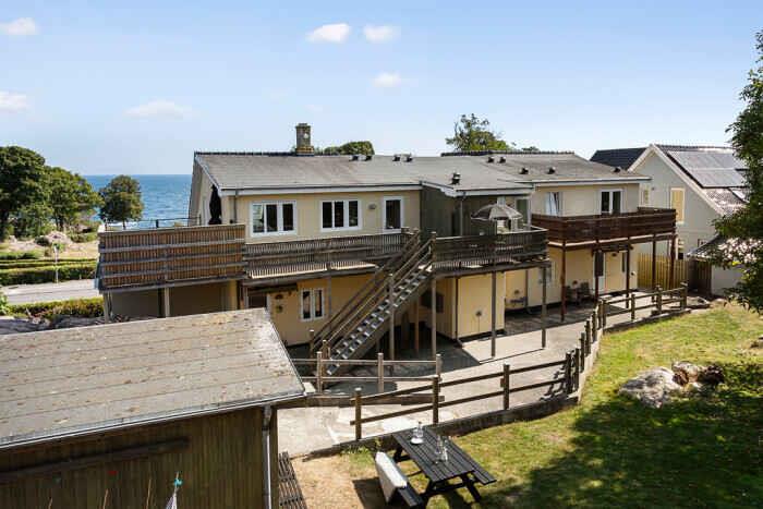 Der schöne Meerblick zeigt sich über den Park, der jedes Jahr das Folkemødet beherbergt. Das Zentrum von Allinge am Hafen mit Cafés, Einkaufsmöglichkeiten, Restaurants und Livemusik liegt nur wenige Gehminuten entfernt.