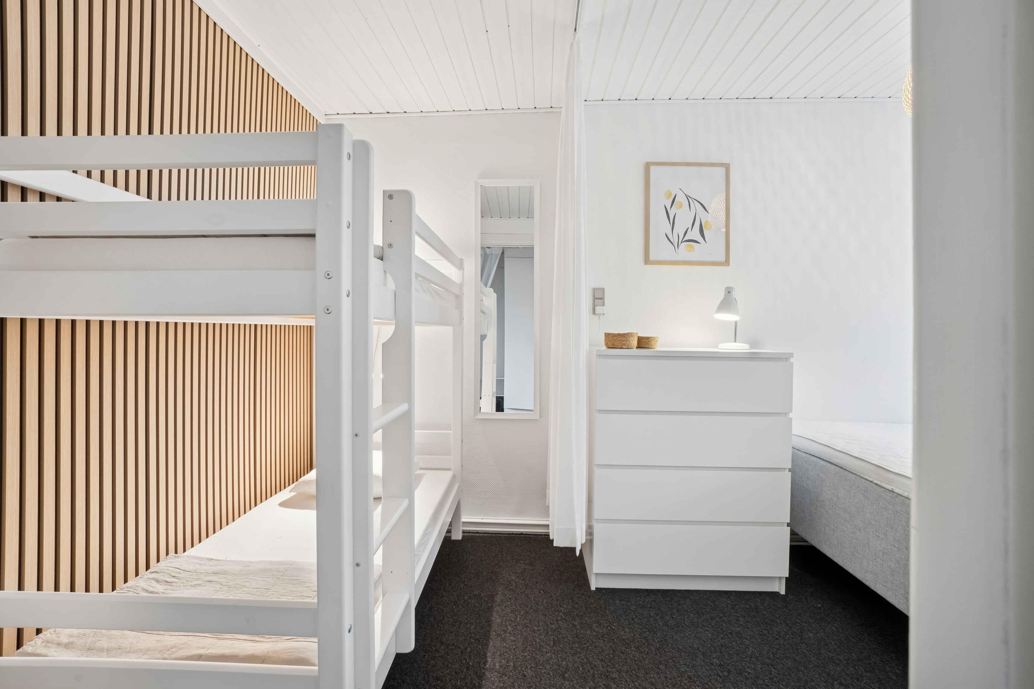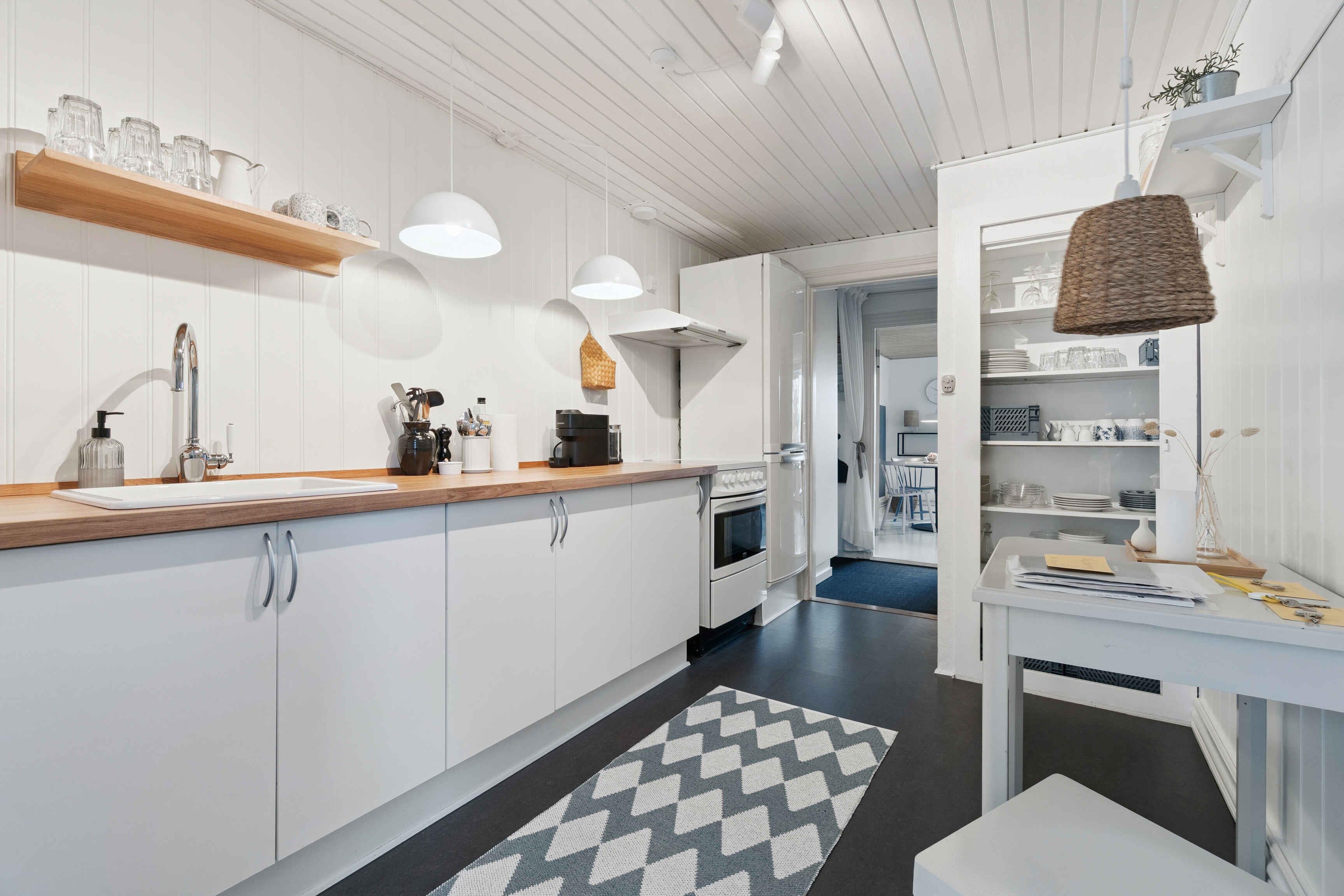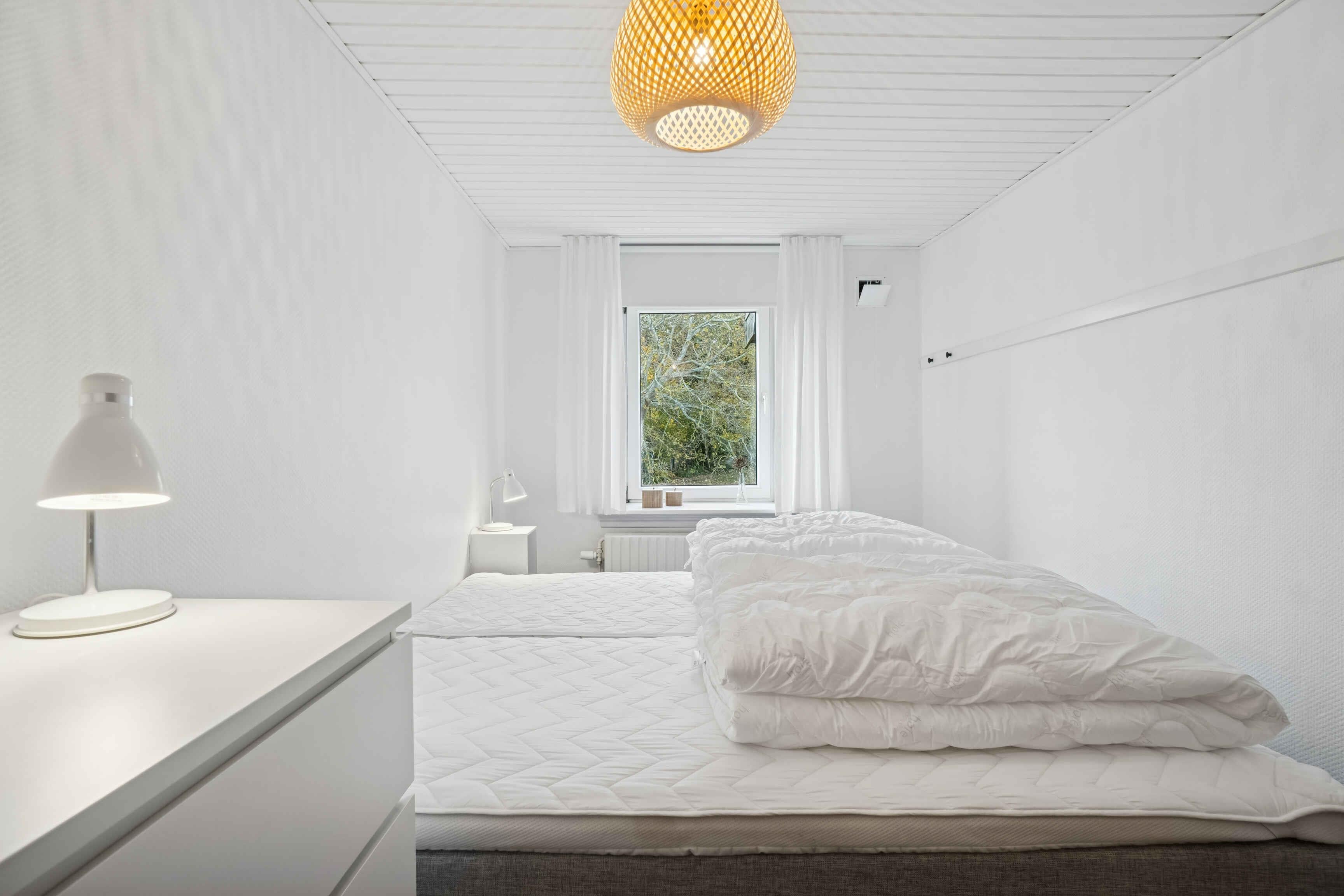 Die gepflegte Wohnung im ersten Stock eines repräsentativen Gebäudes bietet einen schönen Meerblick. Die 57 m² umfassen ein Schlafzimmer und drei Schlafplätze, und die Einrichtung ist schlicht und einladend. Vom Wohnzimmer aus blickt man auf den Park bei Domen, wo das wechselnde Licht über dem Meer den Tagesrhythmus bestimmt. Das Wasser liegt nur 150 Meter entfernt – ideal zum Morgenschwimmen oder für einen Abendspaziergang. Der charmante Garten mit Felsen und sonnigen Ecken lädt zum Entspannen ein. Parkplätze befinden sich auf der Rückseite des Hauses. Die Umgebung eignet sich hervorragend für Urlaubstage. Der Park vor der Wohnung ist Mittelpunkt des Folkemødet, und sowohl das Zentrum von Allinge als auch Sandvig sind zu Fuß erreichbar. Schöne Wanderwege beginnen in der Nähe, Fahrräder können gemietet werden und öffentliche Verkehrsmittel ermöglichen Ausflüge über die gesamte Insel.