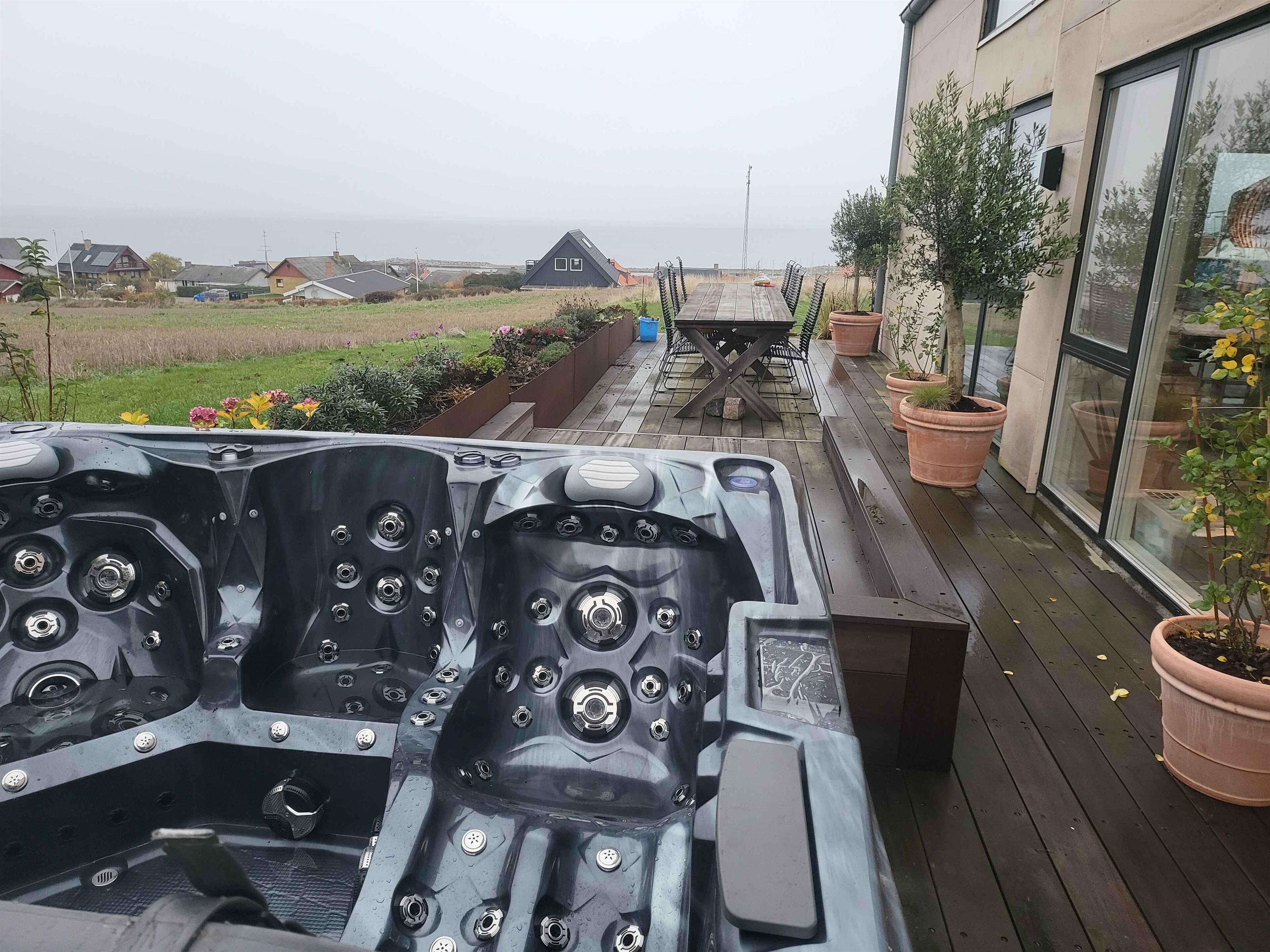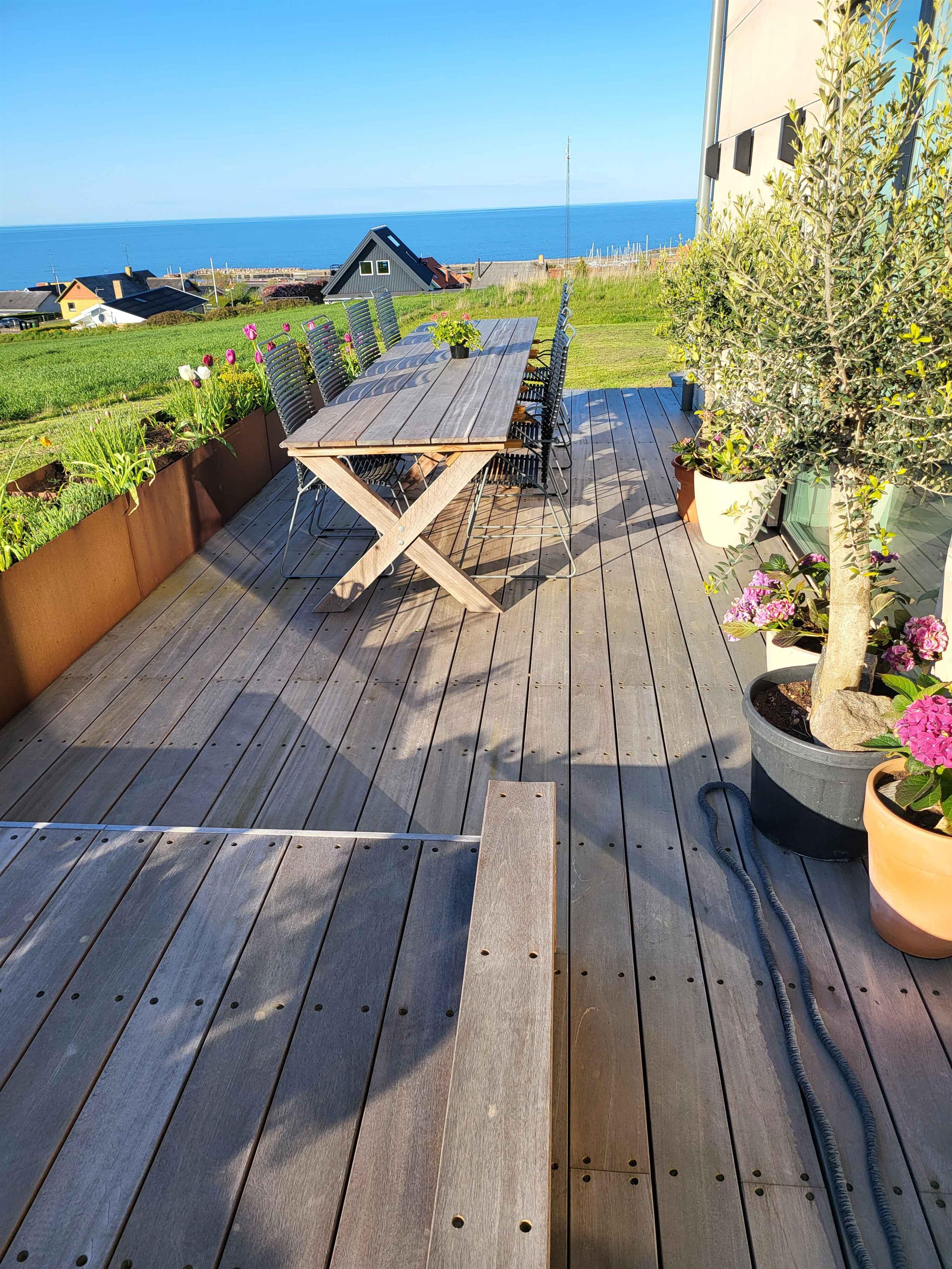 Modernes Ferienhaus mit Meerblick, barrierefrei, Whirlpool und privatem Garten in Allinge, Dänemark.