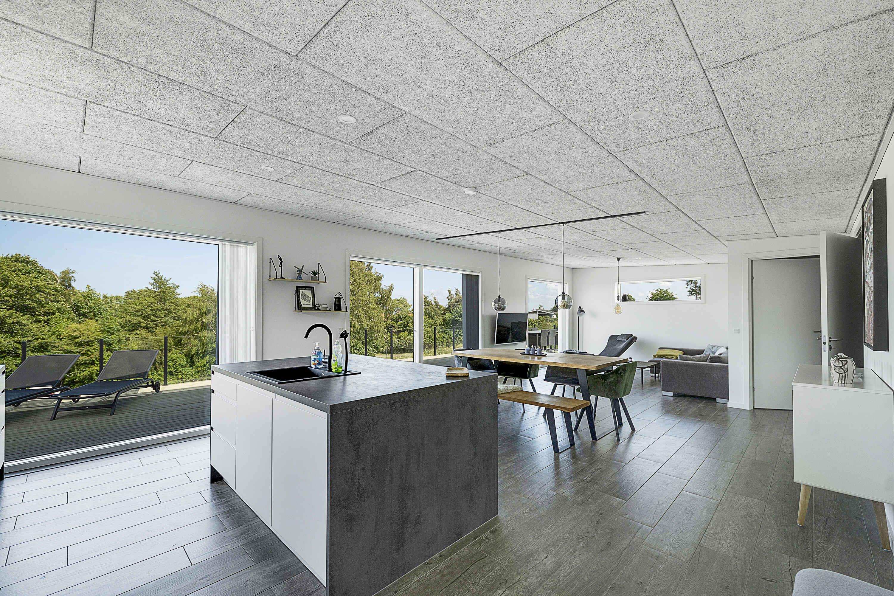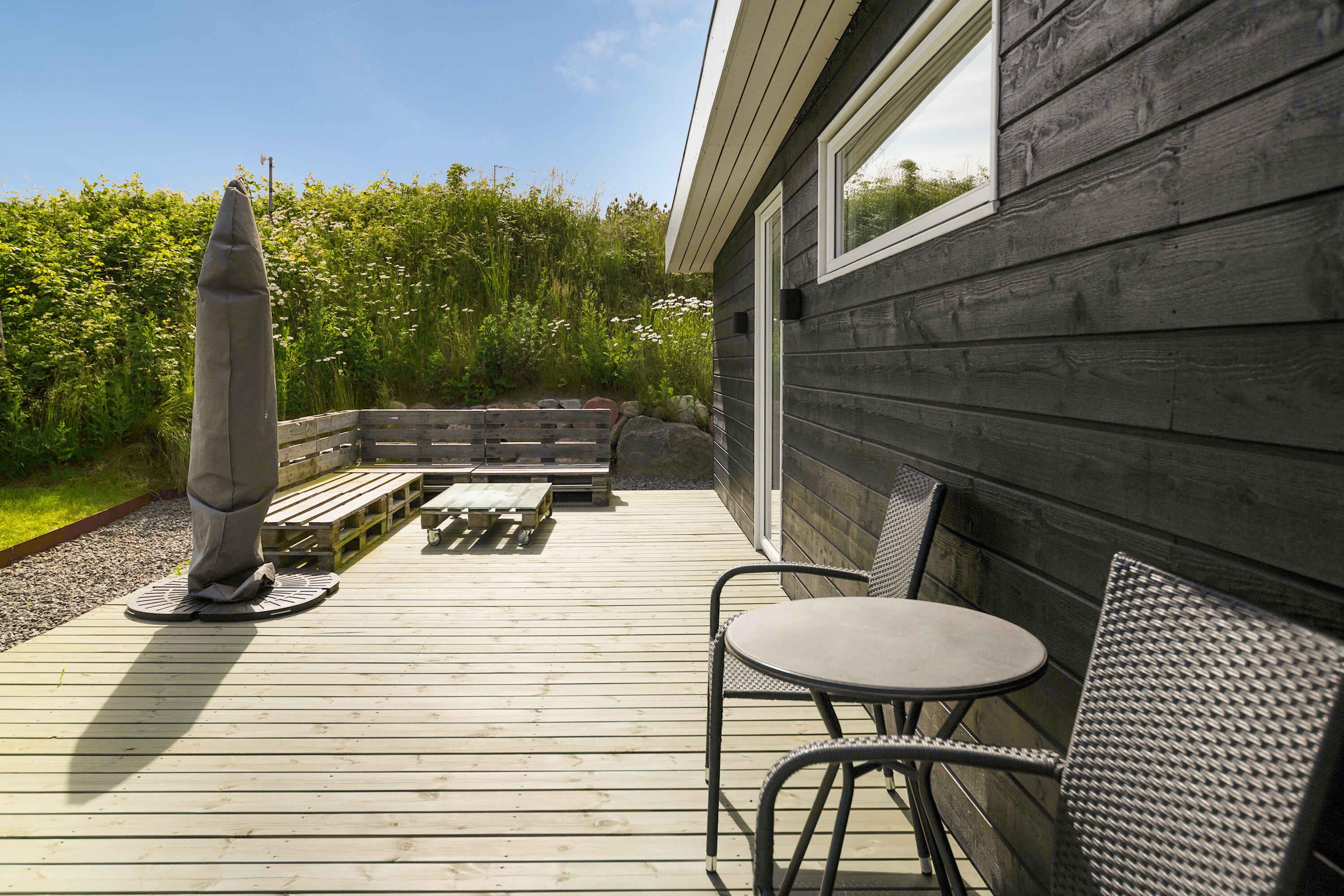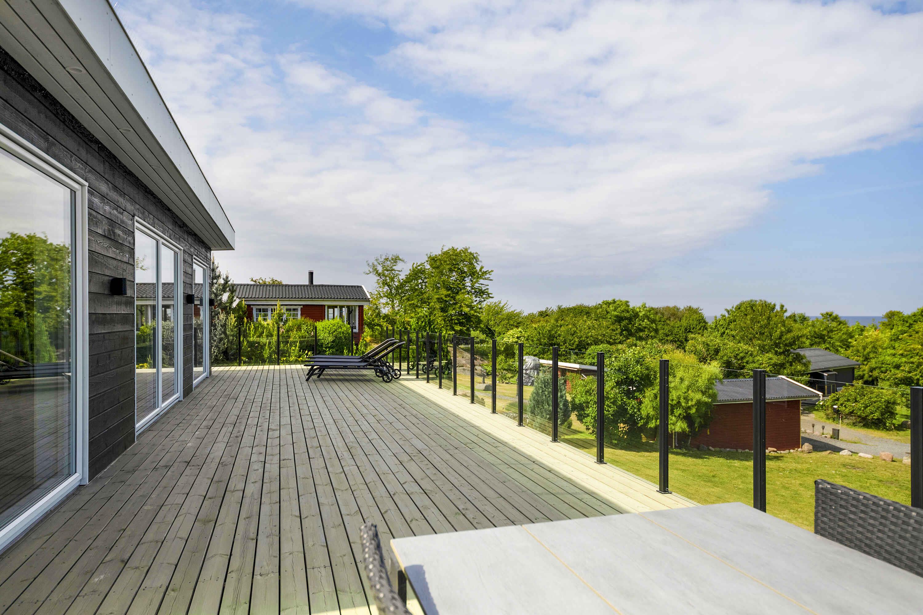 Modernes Ferienhaus auf Bornholm mit Meerblick, Terrasse und Nähe zu Stränden und Restaurants.