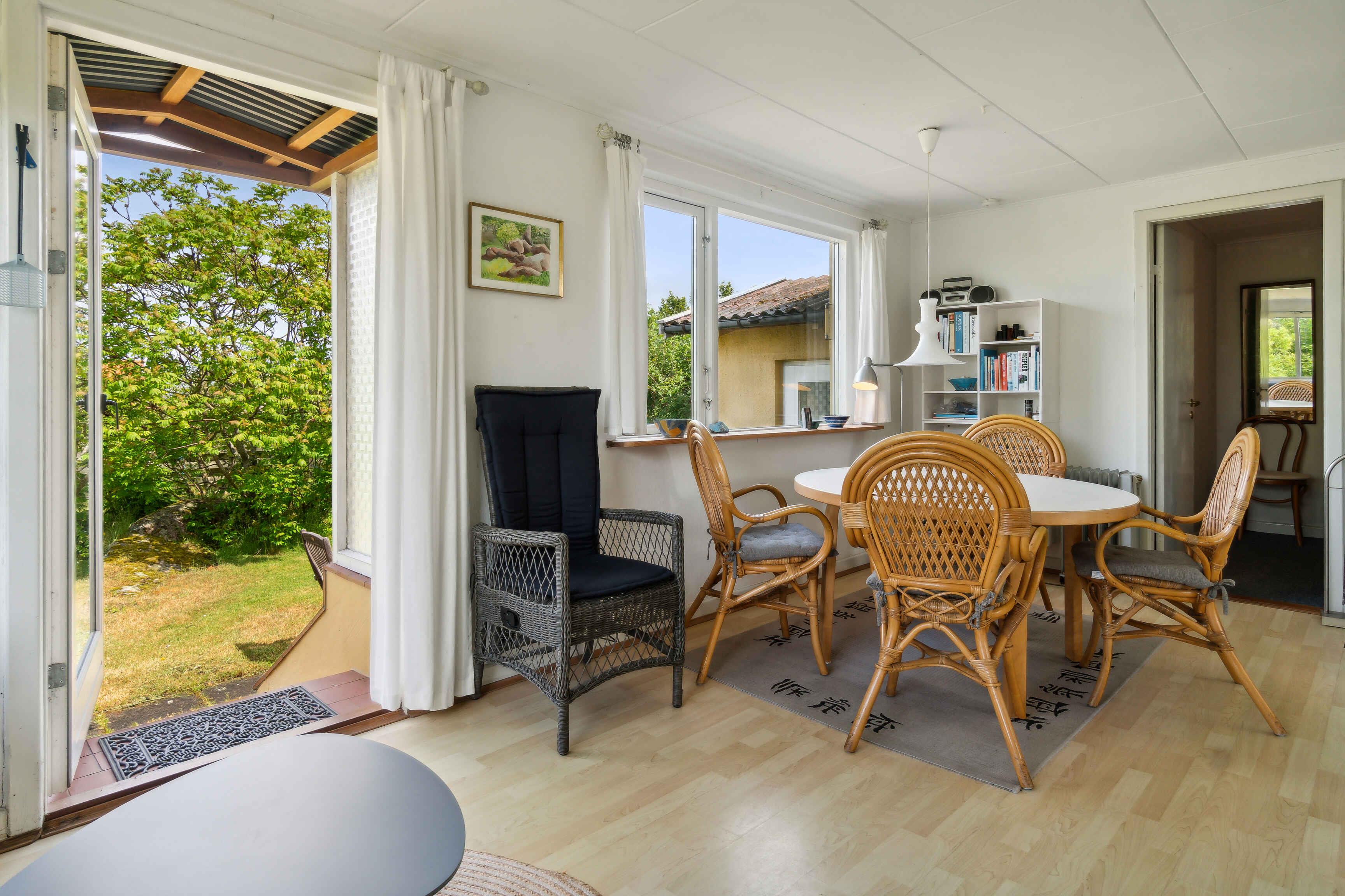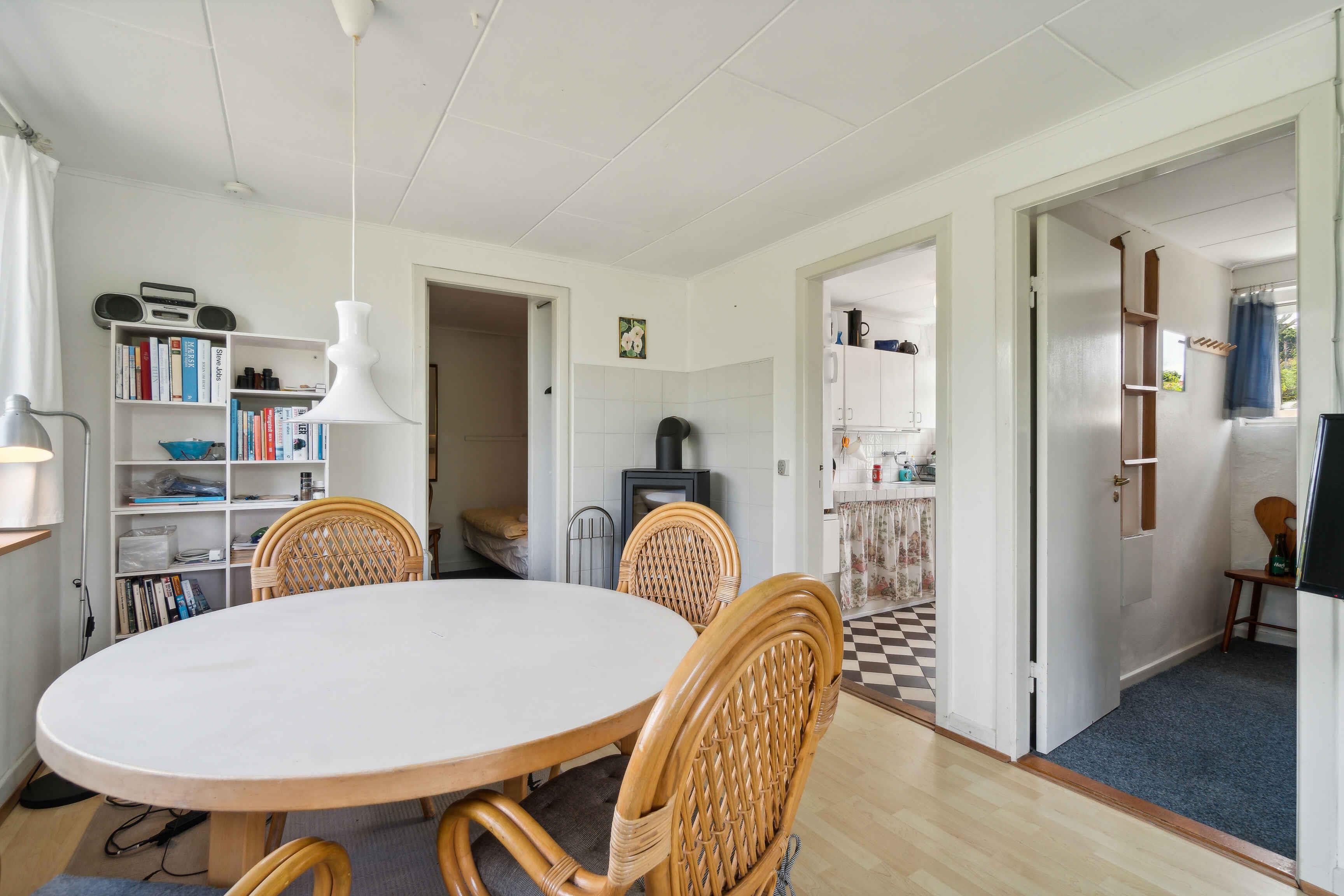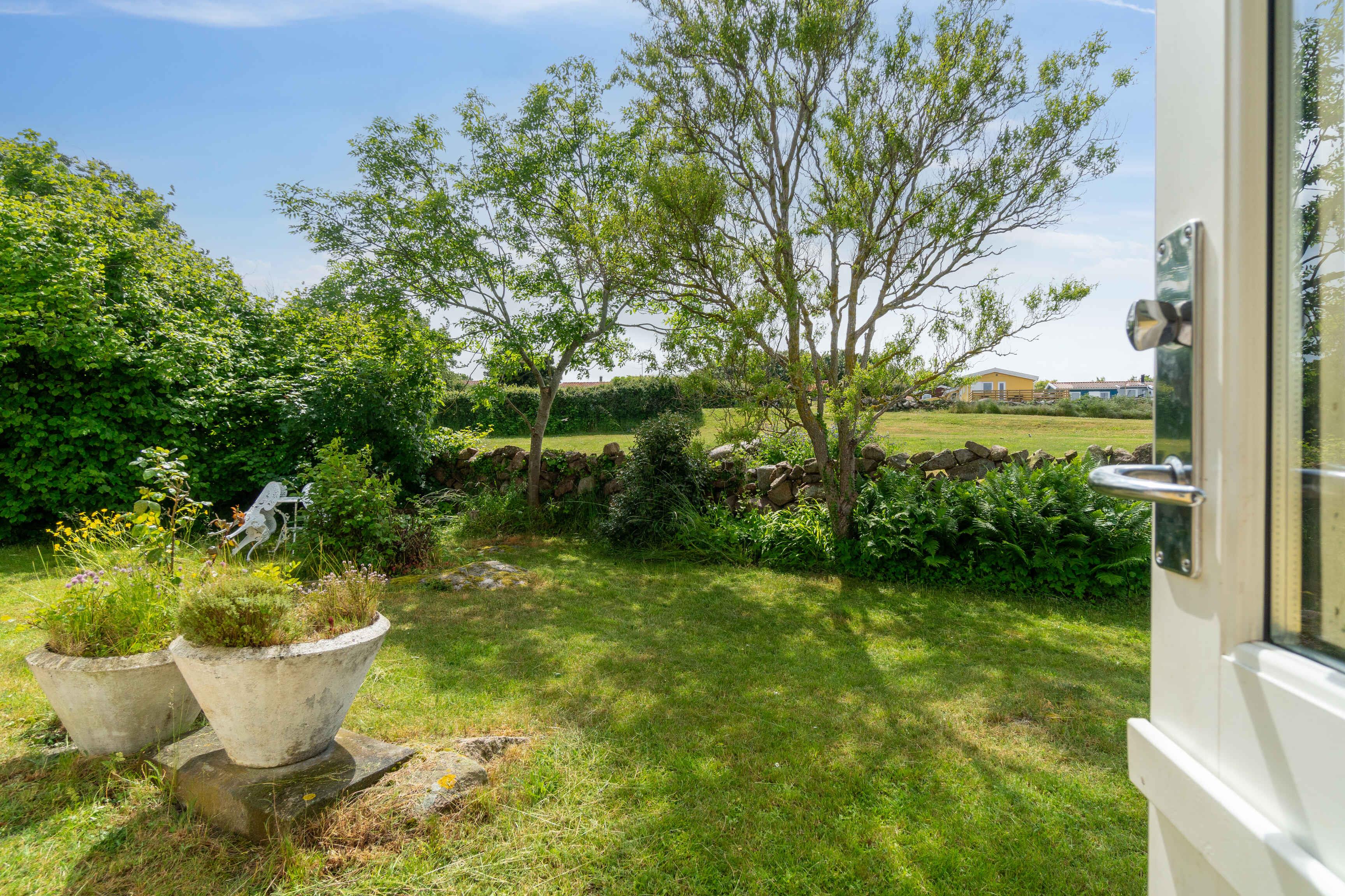 Erleben Sie einen idyllischen Urlaub an der sonnigen Nordküste Bornholms in dieser charmanten Unterkunft, gelegen zwischen Allinge und Sandvig. Mit seiner Nähe zu den Felszeichnungen ist diese Wohnung ein perfekter Ausgangspunkt, um die einzigartige Natur und Kultur der Insel zu erkunden. Das Gebiet bietet Felsformationen, historische Sehenswürdigkeiten und atemberaubende Landschaften, ideal für Natur- und Geschichtsliebhaber. Diese gemütliche Wohnung, Teil eines Doppelhauses, bietet 43 Quadratmeter an Komfort und Stil. Mit Platz für 5 Personen in 3 Schlafzimmern, darunter ein Doppelzimmer, ein Etagenbettzimmer und ein Einzelzimmer, ist das Haus ideal für Familien oder kleine Gruppen. Erleben Sie heimelige Gemütlichkeit im 17 Quadratmeter großen Wohnzimmer mit Essplatz, Sofa, Fernseher und einem wärmenden Holzofen. Ein separates Badezimmer mit Zugang von der Terrasse bietet Privatsphäre und Bequemlichkeit. Die Küche ist gut ausgestattet mit zwei Kochplatten, einem Mini-Ofen und einem geräumigen Kühlschrank mit Gefrierfach, ideal für hausgemachte Mahlzeiten. Draußen, umgeben von Steinmauern und üppiger Bepflanzung, einschließlich eines beeindruckenden Feigenbaums, finden Sie entspannende Terrassen und einen gemeinsamen Garten, wo jede Wohnung ihre eigene Seite hat. Genießen Sie die Vorteile von kostenlosem WLAN und praktischen Einrichtungen wie einem gemeinsamen Technikraum mit Waschmaschine. Die zwei Terrassen des Hauses sind möbliert, so dass Sie die sonnigen Tage und sternklaren Nächte Bornholms genießen können. Rauchen ist im Freien erlaubt, um allen Gästen einen angenehmen Aufenthalt zu gewährleisten. Hier können Sie unvergessliche Erinnerungen schaffen, umgeben von der natürlichen Schönheit und dem historischen Reichtum der Insel.