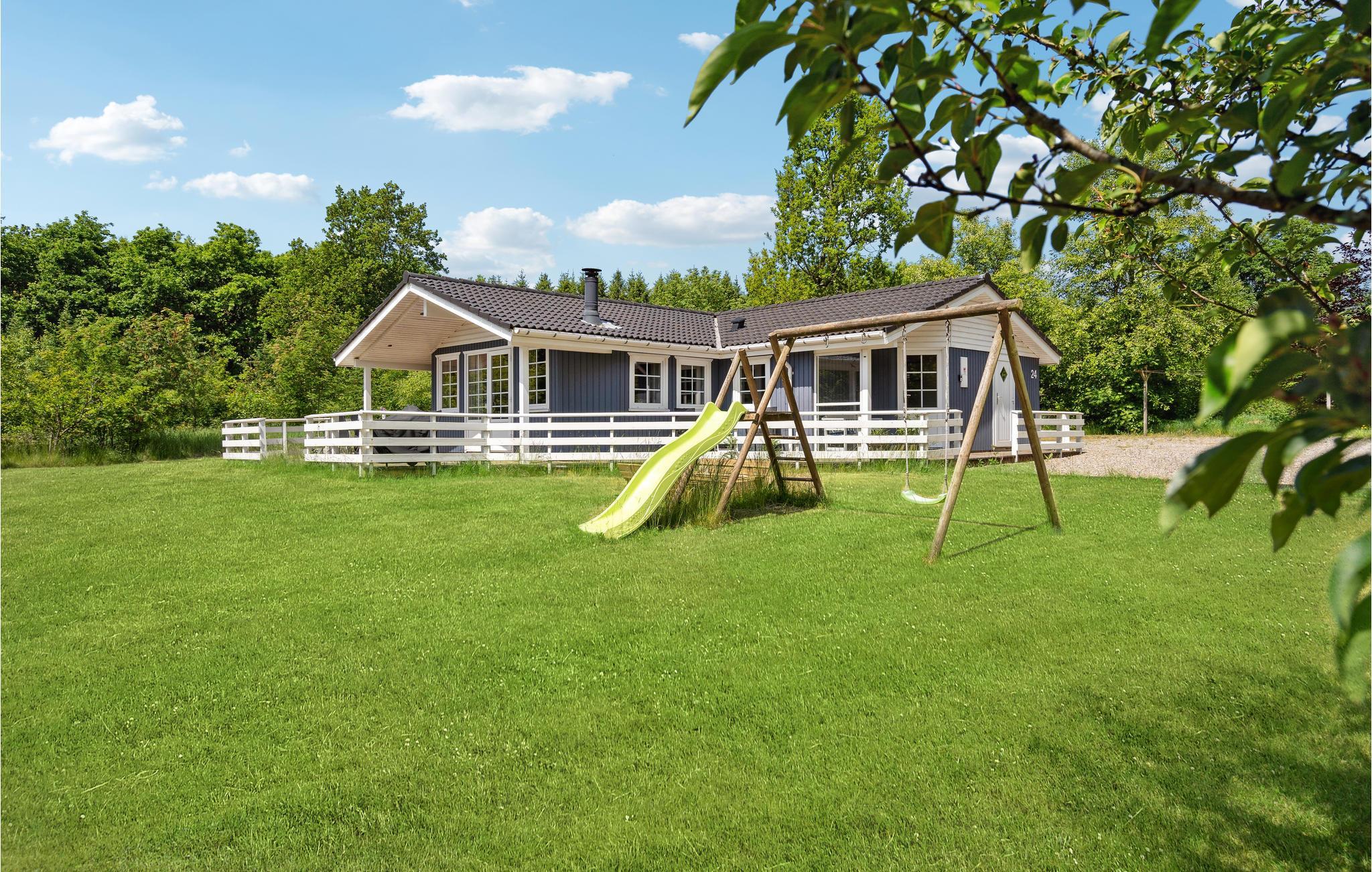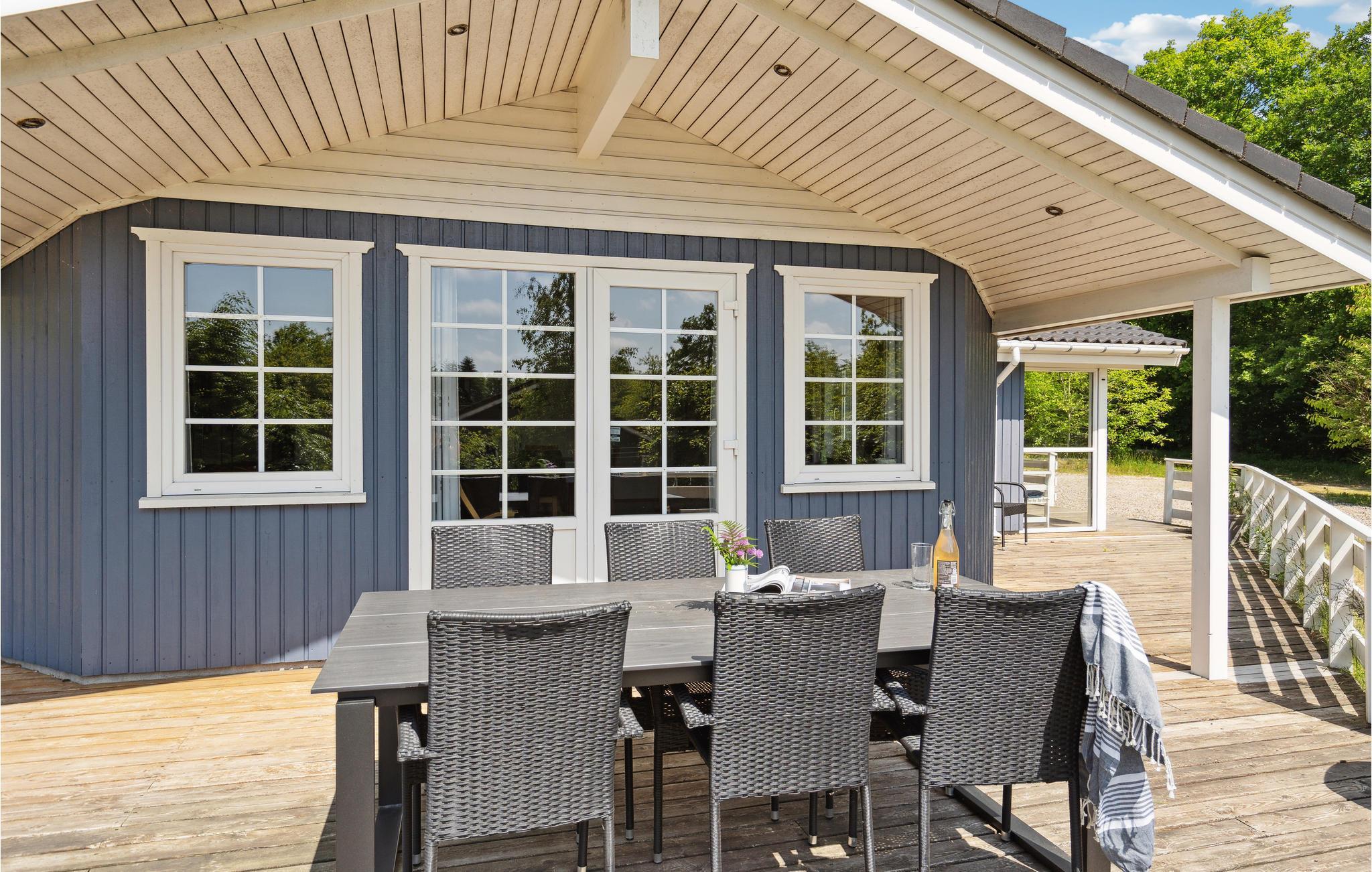 Modernes Holzferienhaus mit Sauna, Whirlpool und großem Garten in Arrild Ferieby, ideal für Familien und Naturfreunde.