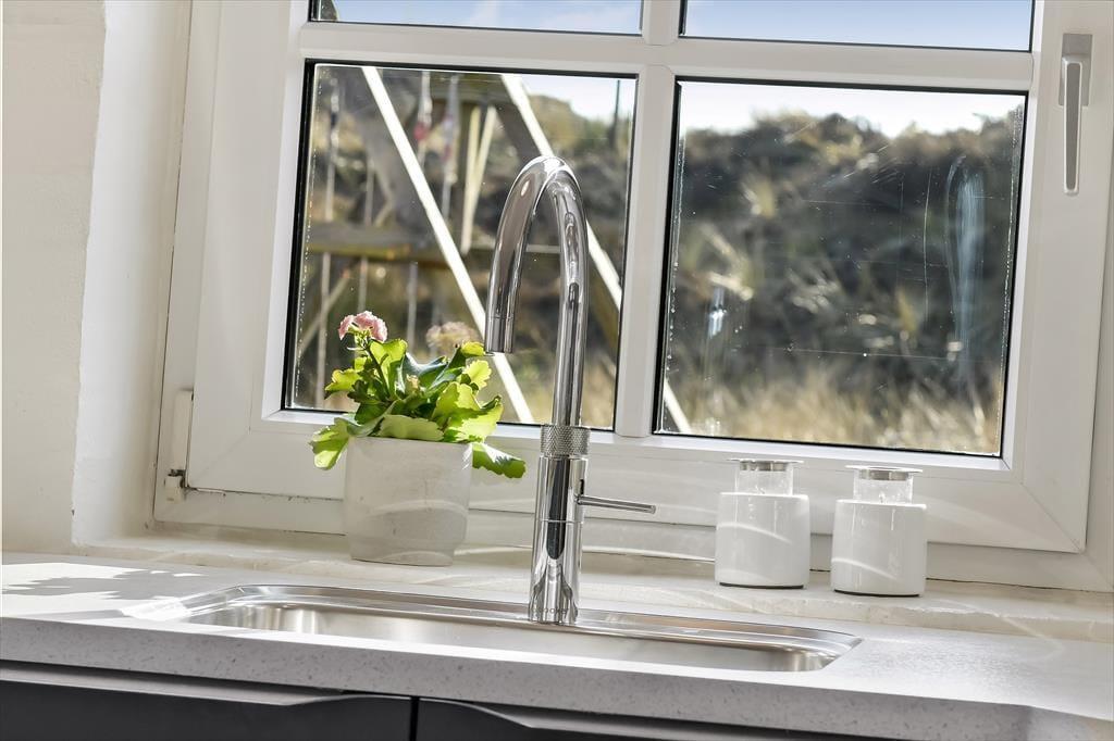 Wohnzimmer und Küche verschmelzen zu einem großen Aufenthaltsraum, in dem gemeinsame Urlaubsstunden mühelos genossen werden können – sei es bei einem Kartenspiel am Esstisch oder einem Filmabend auf dem Sofa vor dem knisternden Kaminfeuer. Wenn der Tag zu Ende geht, kannst du dich in eines der geräumigen Schlafzimmer zurückziehen, wo bequeme Betten für eine erholsame Nachtruhe sorgen. Die stilvoll eingerichteten Badezimmer laden nach einem langen Tag am Strand zu entspannenden Momenten ein. Das Haus wird sowohl innen als auch außen regelmäßig gepflegt und präsentiert sich daher stets in bestem Zustand.