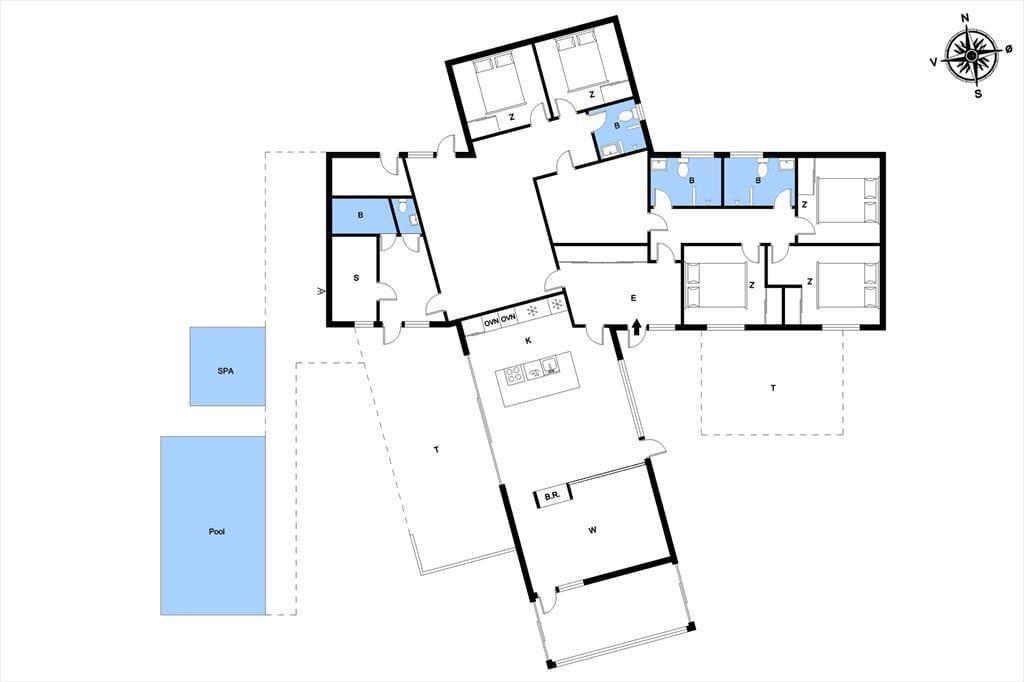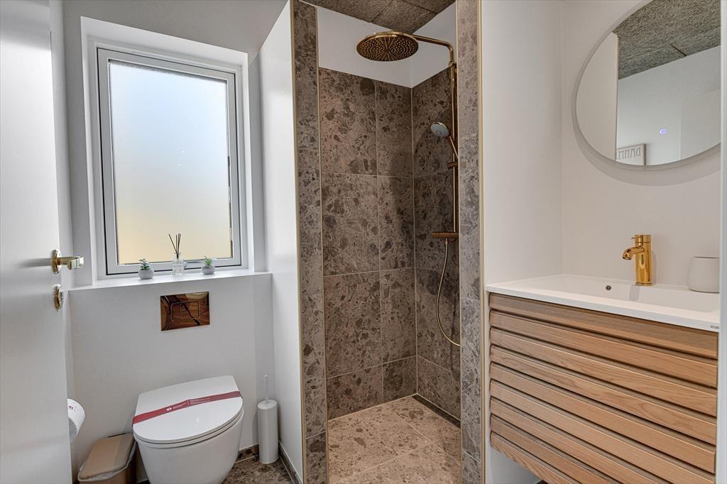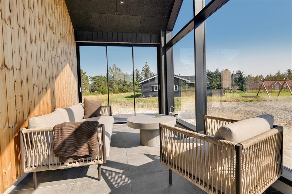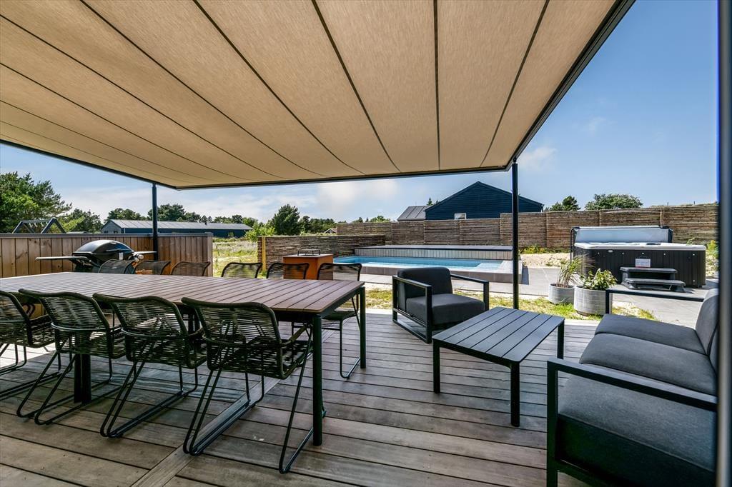 Von sowohl dem Wohnzimmer, dem Wintergarten als auch dem Wellnessraum hast du direkten Zugang zur Terrasse des Ferienhauses, sodass es einfach ist, frische Luft zu schnappen. Bei Sonnenschein kannst du dich auf der Terrasse niederlassen – oder vielleicht sogar im Pool erfrischen. Wenn du die Sauna oder das Dampfbad genutzt hast, kannst du auch draußen unter der Außendusche eine erfrischende Abkühlung genießen, und die gesamte Wellness-Sitzung kann mit einer entspannten Zeit im Whirlpool beendet werden. Die Wellness-Einrichtungen ermöglichen es, die Außenbereiche das ganze Jahr über zu nutzen, was definitiv einen großen Beitrag zur Verschönerung des Urlaubserlebnisses leistet.