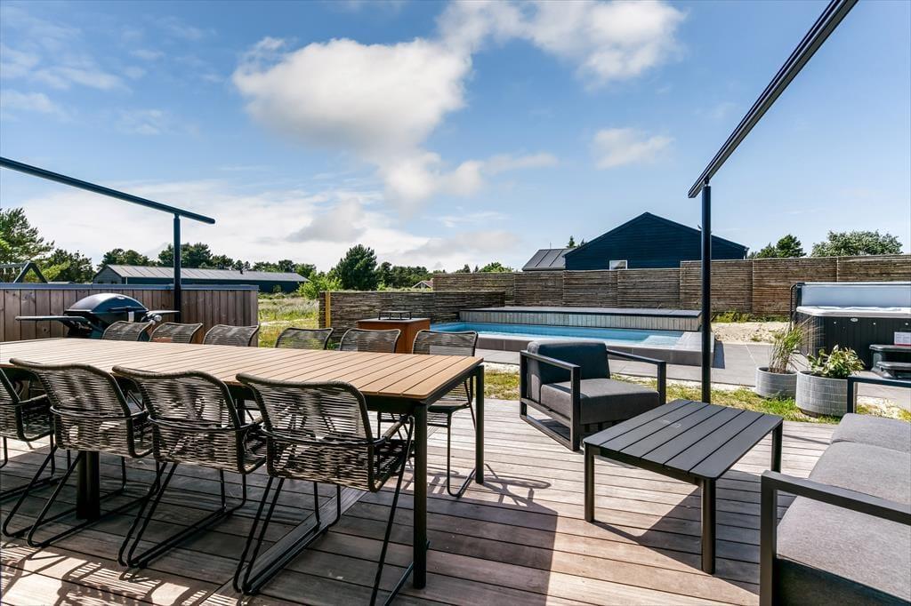 Alle deine Urlaubsträume werden in diesem einzigartigen Juwel eines Luxusferienhauses auf der Poul Thøstesensvej 14 in Blåvand erfüllt, gelegen am Ende einer ruhigen Straße nahe dem Stadtzentrum von Blåvand. Das Ferienhaus wurde 2024 neu gebaut, sodass du einer der ersten sein kannst, der das Leben in exquisitem Ambiente genießt – mit Billardtisch im Aktivitätsraum, einem schönen Wintergarten, eigenem Kino und luxuriösen Wellness-Einrichtungen, einschließlich eines ganzjährig beheizten Außenpools.