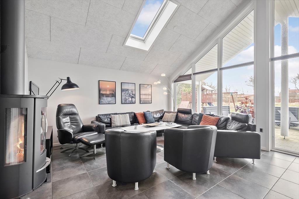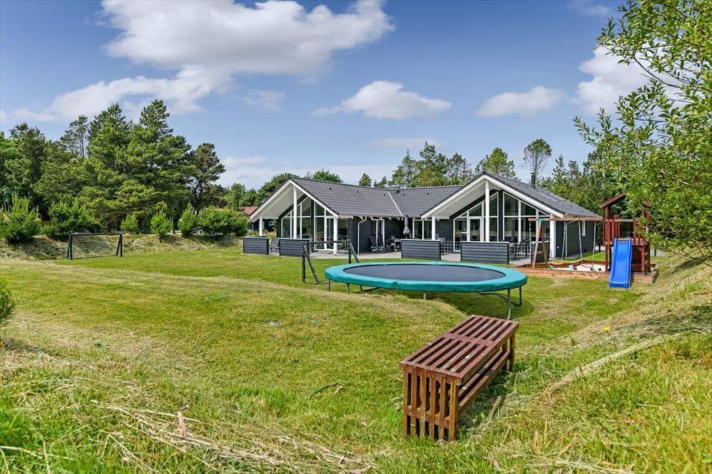 Unter offenem Himmel kannst du ganz nach Stimmung und persönlicher Vorliebe entscheiden, ob du die Sonne primär auf dem Gartenstuhl auf der Terrasse oder lieber ganz aktiv genießt. Etwas ganz Besonderes ist die "Cross-Golf-Bahn" auf der Rasenfläche, die selbst Anfängern jede Menge Spaß garantiert. Ein Fußballtor, ein Trampolin und andere Spielmöglichkeiten stehen ebenfalls bereit. Nach ausgelassenen Stunden auf der Rasenfläche kannst du im Kreise deiner Familie am Nachmittag Kaffee trinken und dänischen Kuchen genießen. Der Grill lädt zu stimmungsvollen Grillabenden ein. Ein Teil des Terrassenareals ist überdacht und eignet sich somit bei Einbruch der Dunkelheit wunderbar als Rückzugsort. Ihr lasst hier gemeinsam in aller Ruhe den erlebnisreichen Urlaubstag ausklingen und genießt dabei die ruhige, schöne Atmosphäre.