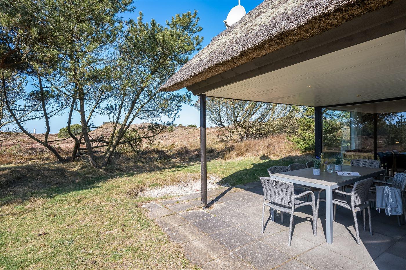 Nahe dem Strand von Blåvand liegt dieses Qualitätsferienhaus mit Whirlpool und Sauna. Von der überdachten Terrasse aus hat man einen herrlichen Blick auf das große, ungestörte Dünengrundstück.