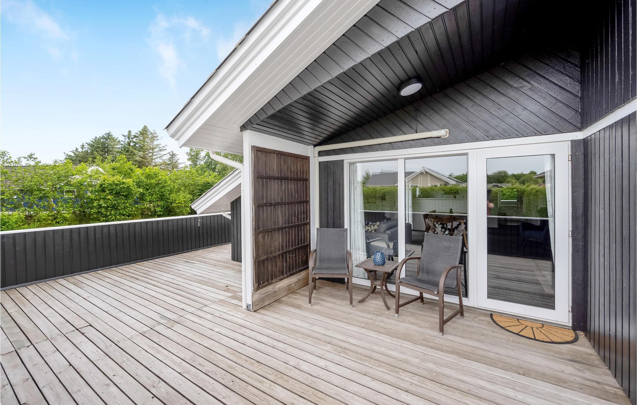 Fußläufig vom Fjord, in Bork Havn, liegt dieses hell eingerichtete Ferienhaus. Das Haus besitzt eine gute Terrasse und einen schönen Garten zum Spielen für Ihre Kinder. In der Küche können Sie beim Kochen der Familie nahe sein, denn sie ist zum Wohnzimmer offen. Das Haus hat drei gute Schlafzimmer und ein großes Badezimmer mit Massagewanne und Sauna. Wenn Sie von einem langen Spaziergang am Fjord oder vom Meer nach Hause kommen, ist es herrlich, sich in der Sauna wieder aufzuwärmen.