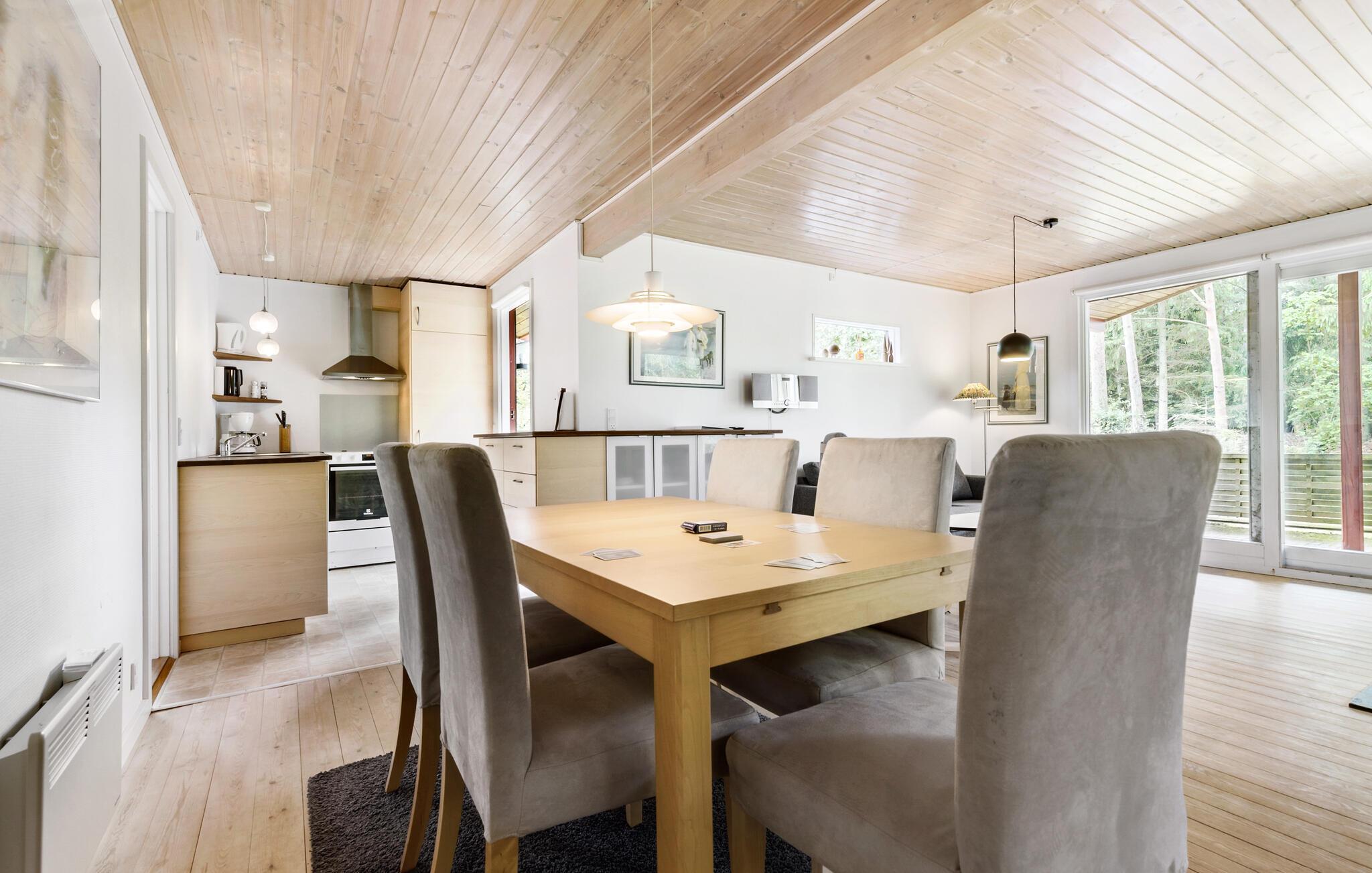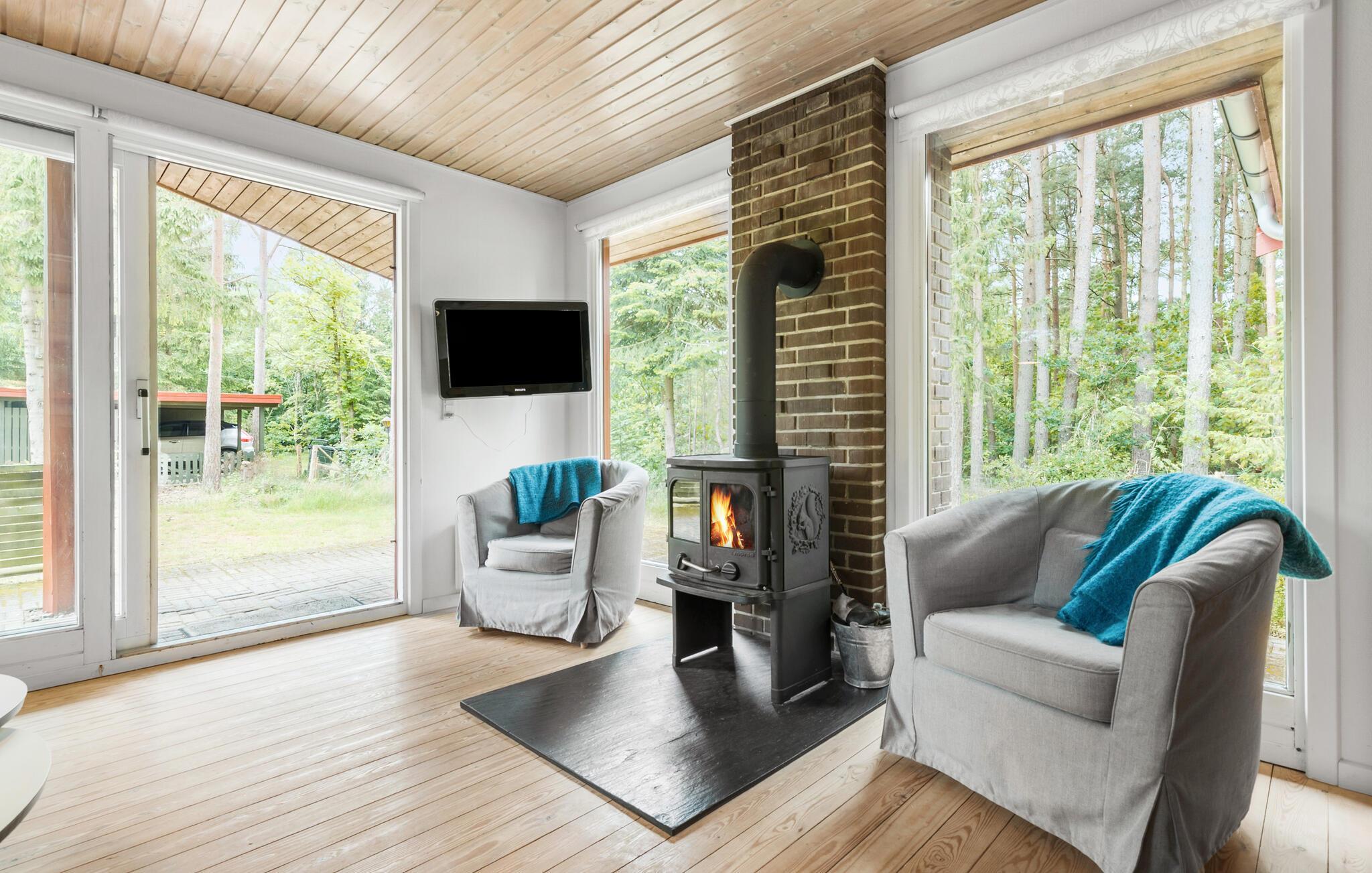 Umgeben von der natürlichen Schönheit Dänemarks, liegt Ihr charmantes Ferienhaus idyllisch inmitten eines kleinen Waldes und bietet Ihnen und Ihrer Familie einen perfekten Rückzugsort. Beginnen Sie den Tag mit einem Frühstück auf der überdachten Terrasse und genießen Sie die frische Waldluft. Die gemütliche Sitzgruppe lädt dazu ein, in der Natur zu entspannen. Nutzen Sie auch den großzügigen Wohnbereich, der durch große Fenster viel Tageslicht bietet. Machen Sie es sich auf den bequemen Sitzgelegenheiten gemütlich und genießen Sie die behagliche Atmosphäre, die durch den Kaminofen verstärkt wird.