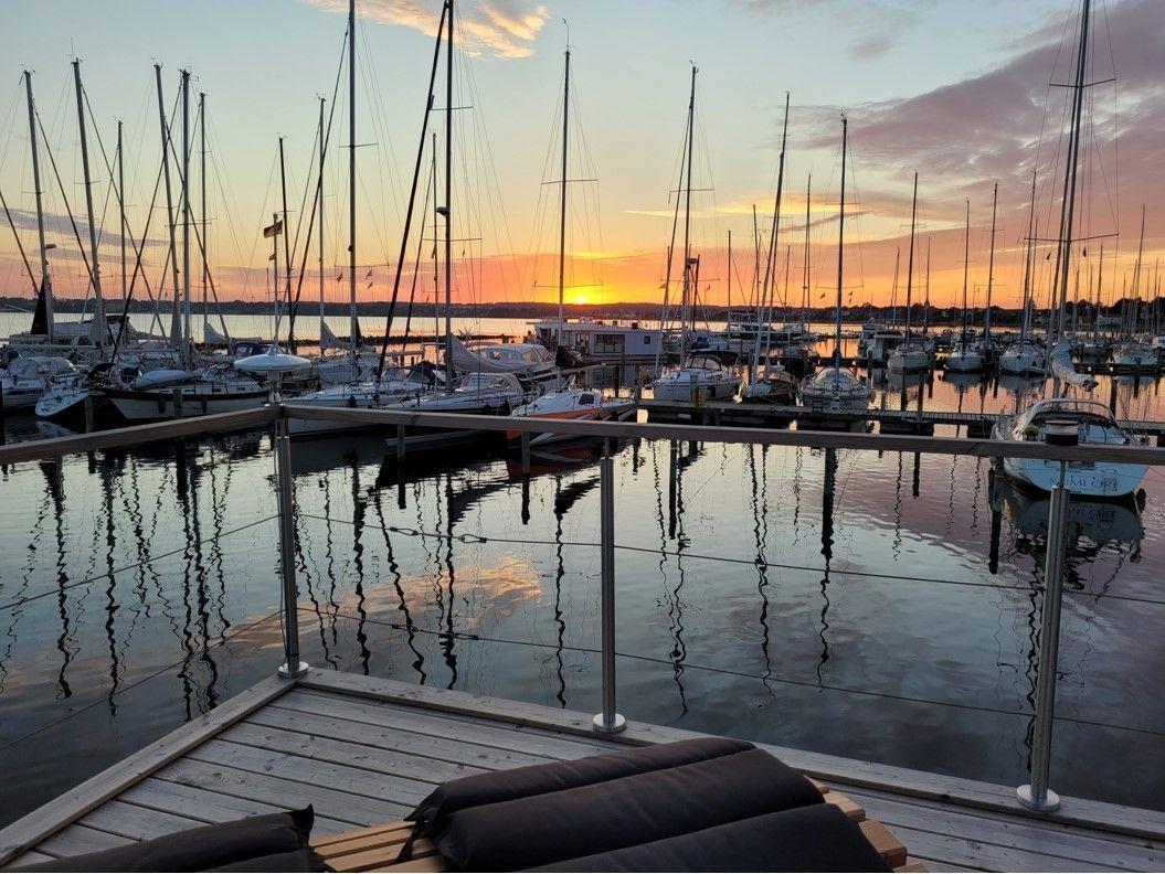 und genießt den grandiosen Ausblick auf die Ostsee. Entweder mit einer Tasse Tee oder Kaffee vom Sofa - mit maritimen Blick auf die Marina - einem Glas Wein in den Händen auf der Terrasse mit S/W Ausrichtung - in der Hängematte - oder mit einem Sundowner auf der 45qm großen Sonnendachterrasse relaxt auf der Liege. Hier genießt Ihr Auszeit, Seeluft & Licht.