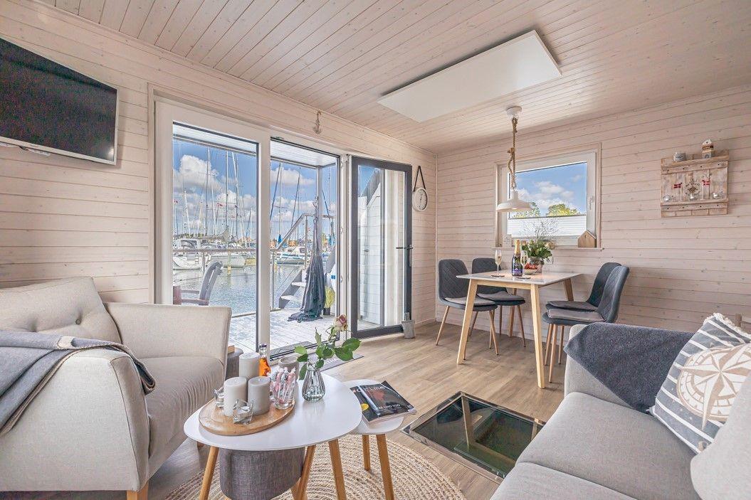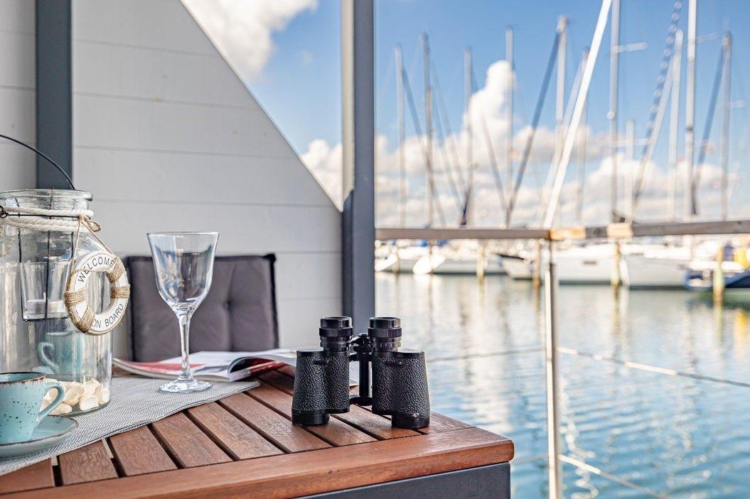 Maritimes Hausboot mit Ostseeblick an der Förde
