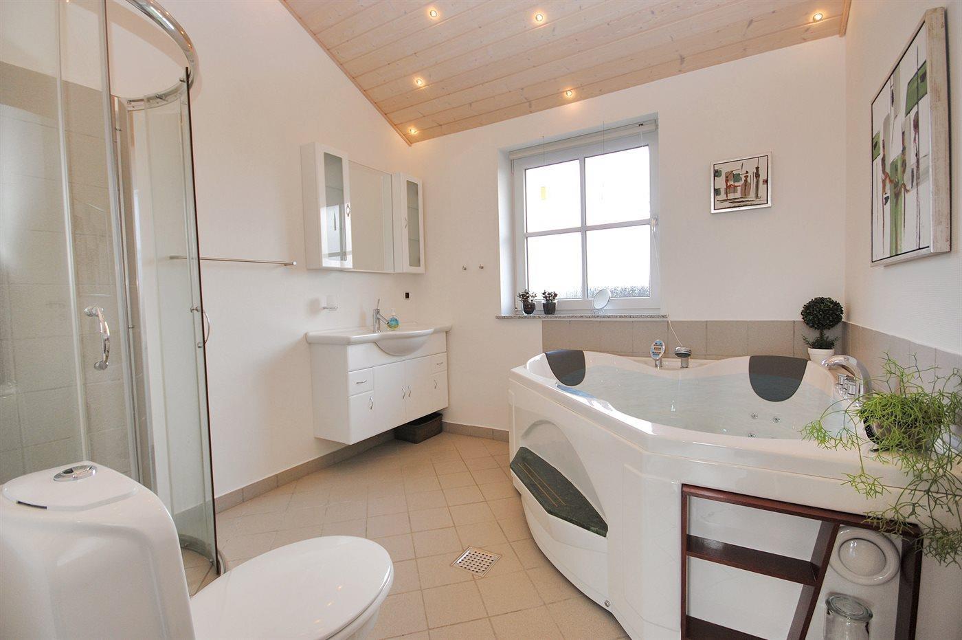 Es gibt 1 Badezimmer mit Duschnische und 2 Toiletten, davon 1 Gästetoilette. Fußbodenheizung in 1 Badezimmer.