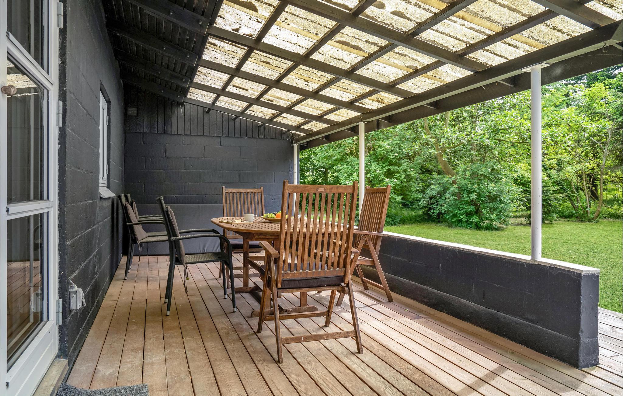 Nettes Ferienhaus am Ende eines kleinen Weges, platziert 200 m vom Strand. Helle, offene Wohnküche. Wohnzimmer mit TV und Kaminofen und gemütlicher Sitzecke. Drahtloses Internet ist natürlich auch installiert. Gute Schlafzimmer und Badezimmer. Teilweise überdachte Terrassenareale umkränzen das Haus. Ideal zum Sonnen und für gemütliche Grillabende. In der Nähe vom Haus liegt ein grünes Areal für Aktivitäten und Spiele mit dem Ball.