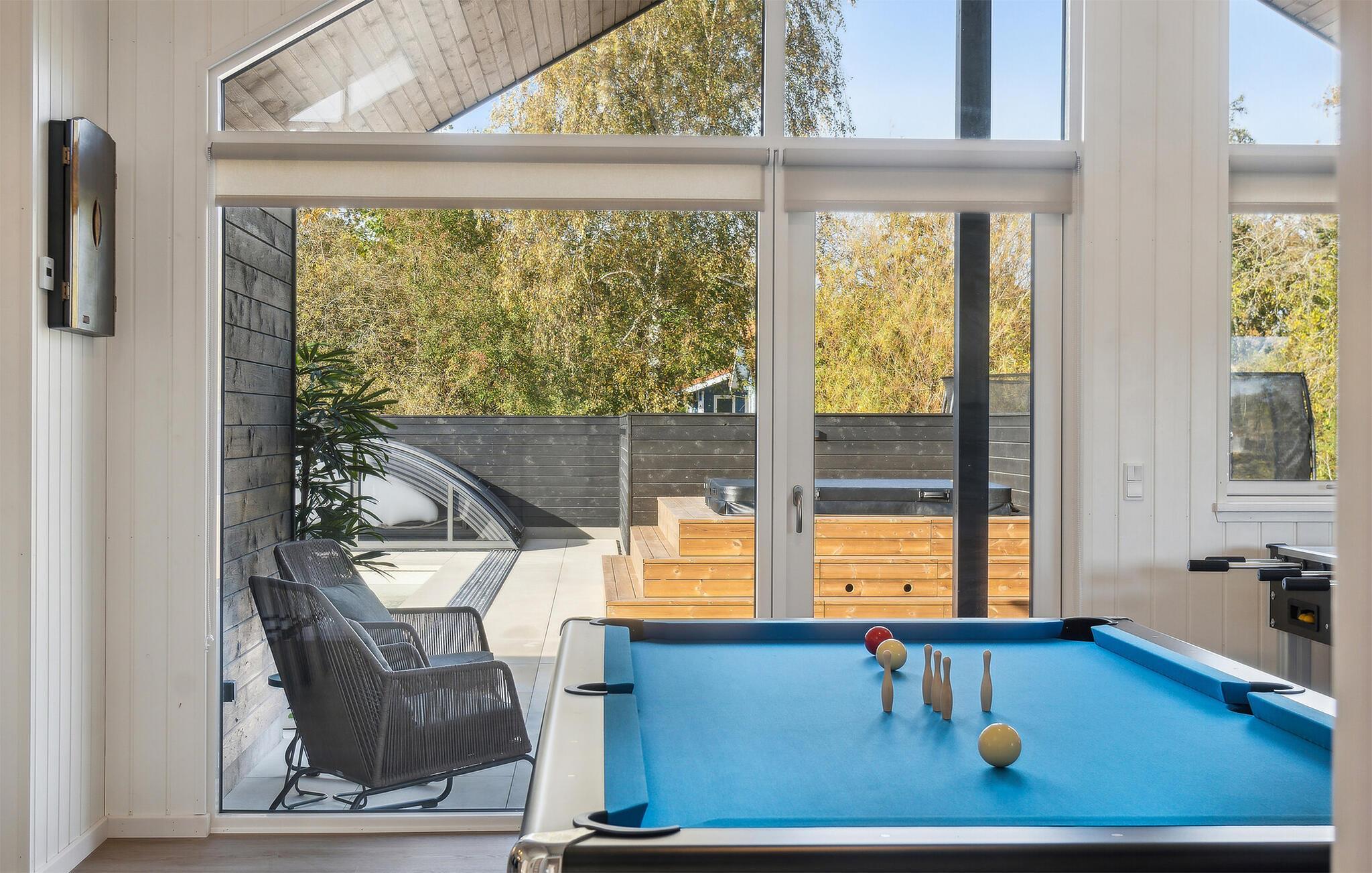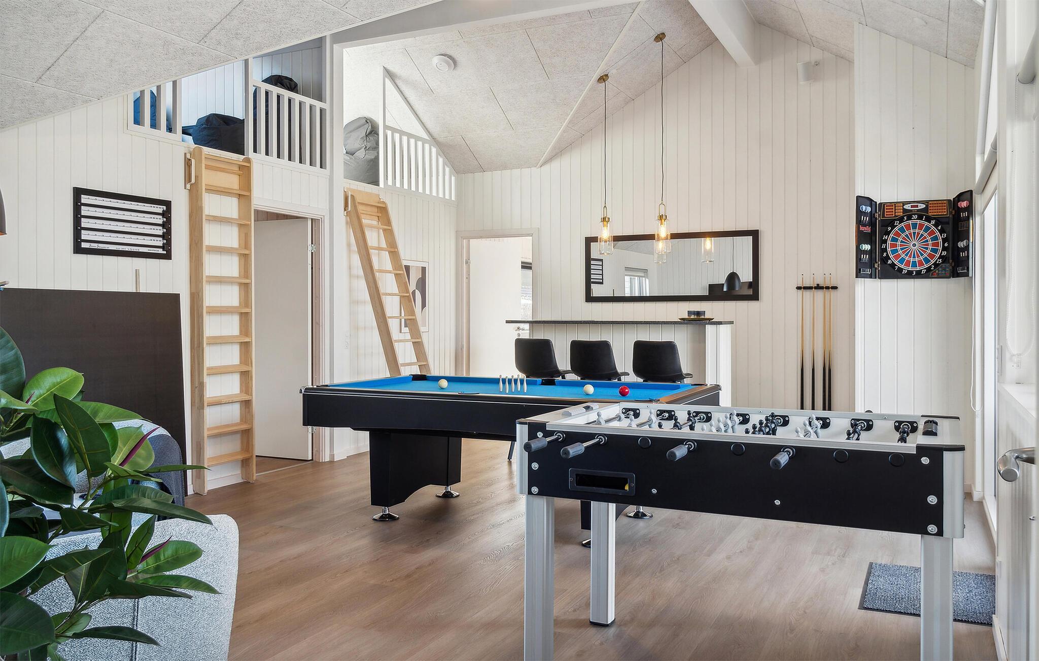 Das Ferienhaus selbst bietet dank des offenen Wohn- und Essbereichs eine einladende Atmosphäre für gemeinsame Abende. Die umfangreiche Ausstattung des Hauses sorgt dafür, dass keine Wünsche offenbleiben. Entspannen Sie sich in der Sauna, genießen Sie den Außen-Whirlpool oder erfrischen Sie sich im Außenpool im Garten. Für unterhaltsame Stunden für Groß und Klein gibt es einen Aktivitätsraum mit Tischtennis, Billard und Tischfußball. Im Garten warten zudem ein Trampolin und eine Schaukel auf die jüngeren Gäste.