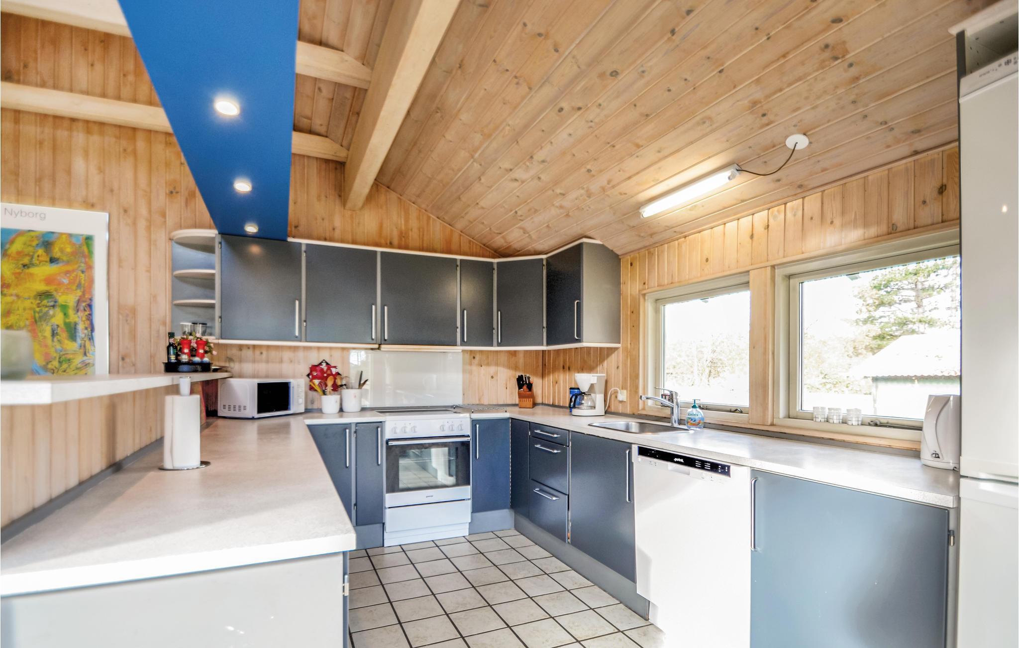 Sehr funktionales Ferienhaus mit einzigartiger Lage in der ersten Reihe zu einem der besten Badestrände der Gegend. Von Haus und Grundstück haben Sie eine schönen Blick auf die Insel Hjelm. Es gibt zahlreiche Möglichkeiten für Aktivitäten, wie Surfing, Angeln etc. Das Haus ist gut eingerichtet und verfügt über zwei Bäder, damit ist es ideal für mehrere Familien. Auf der großen Holzterrasse können Sie grillen. Die Umgebung lädt zu Spaziergängen und Fahrradtouren ein und ist auch für die Küstenfischerei bekannt. Besuchen Sie Ebeltoft mit dem alten Rathaus, der Fregatte Jylland und dem Glasmuseum. Bis zu einer Mountainbike-Strecke haben Sie nur 3 km und auch der Nationalpark Mols Bjerge ist einen Besuch wert.