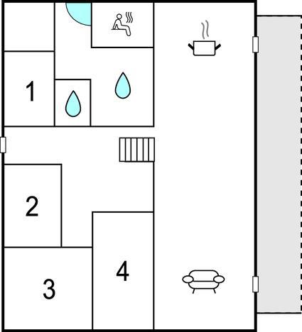 Badezimmer (nr. 1) - WC. Warmes und kaltes Wasser. Dusche
