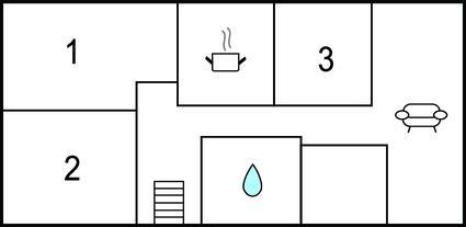 Badezimmer (nr. 1) - WC. Warmes und kaltes Wasser. Dusche