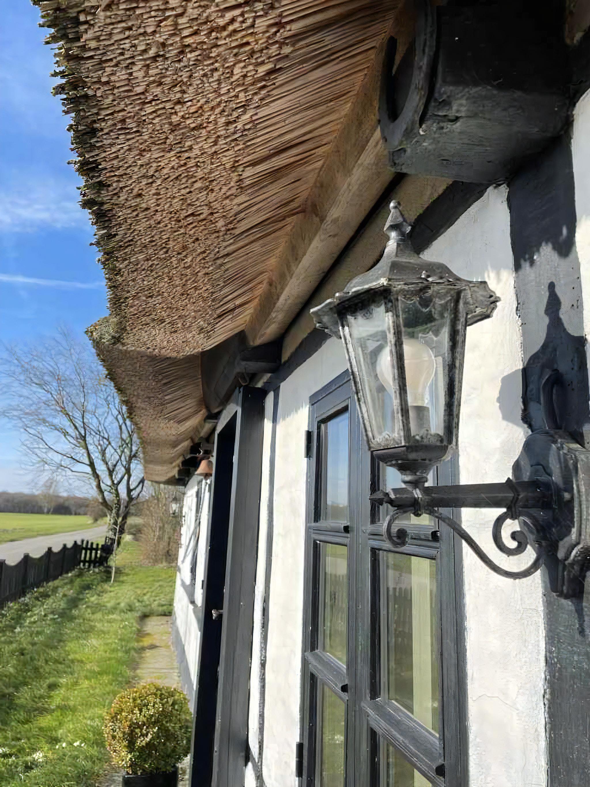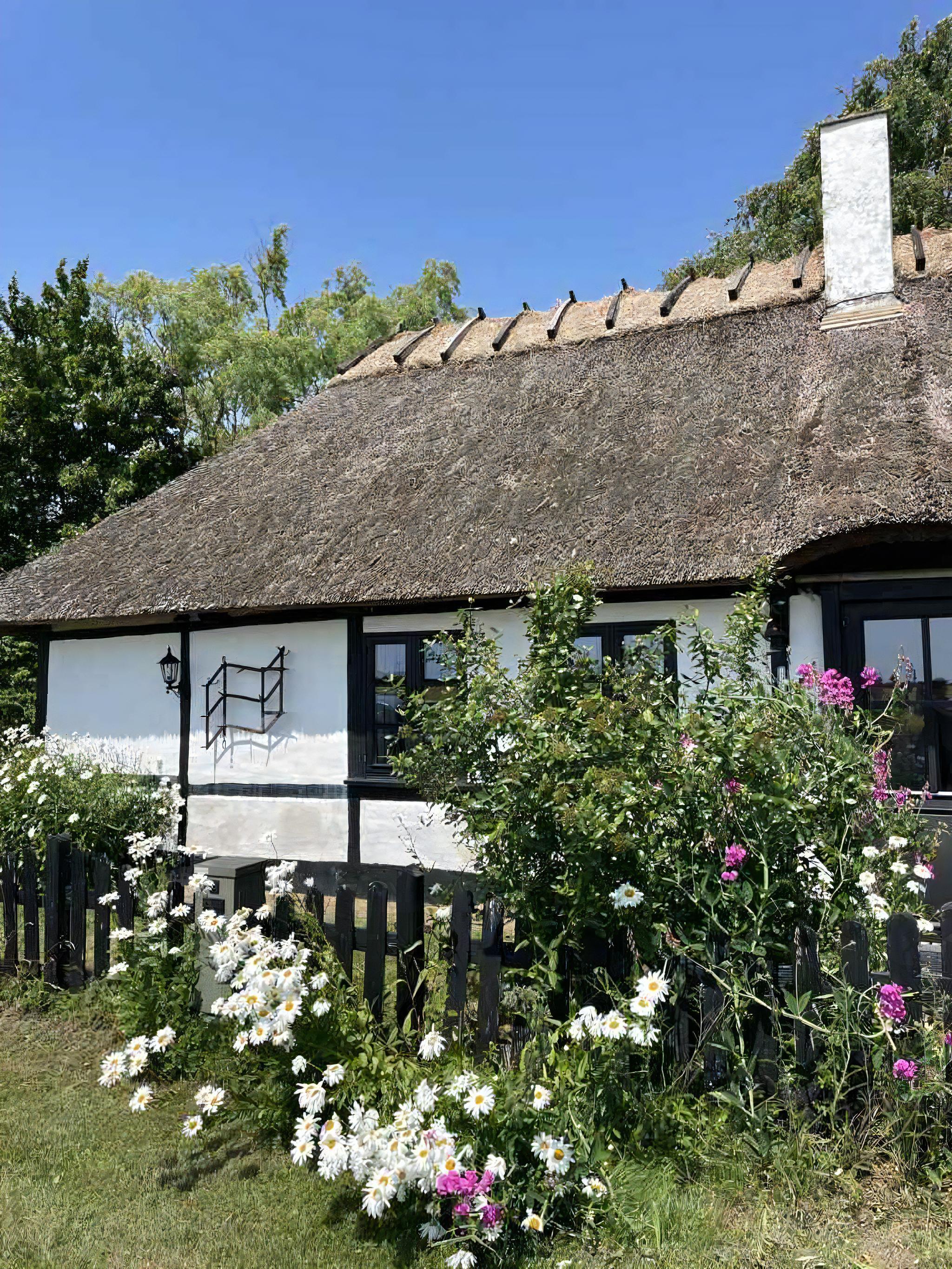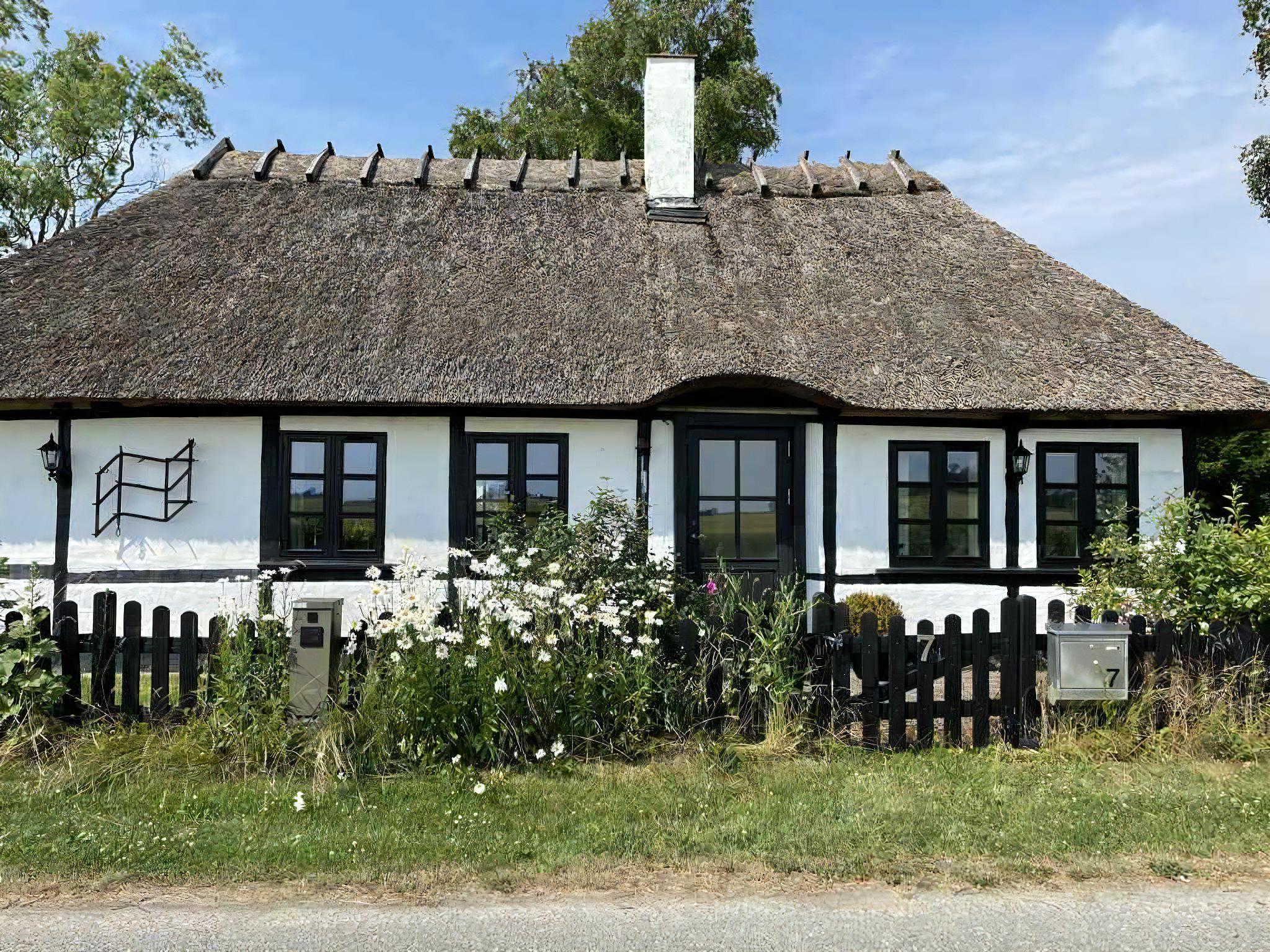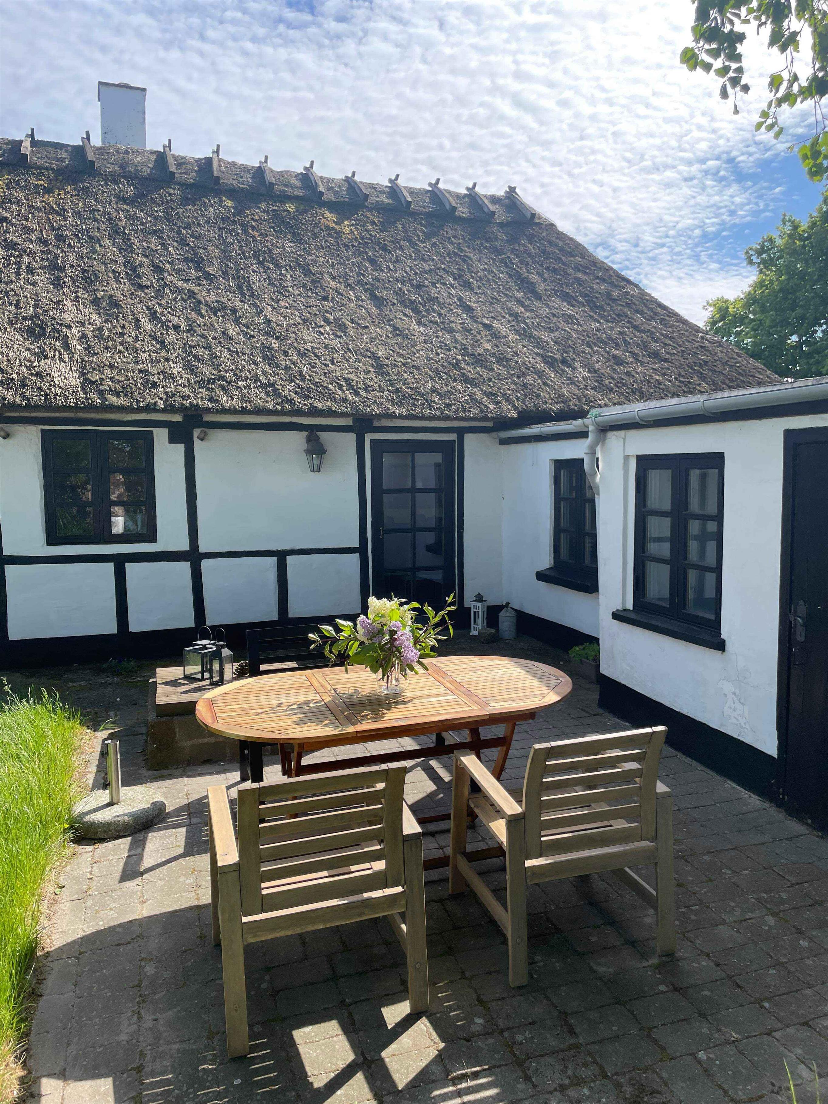 Gemütliches Fachwerkhaus auf Lolland mit Kaminofen, Internet, Gartenmöbeln und zwei Terrassen für erholsame Urlaubstage.