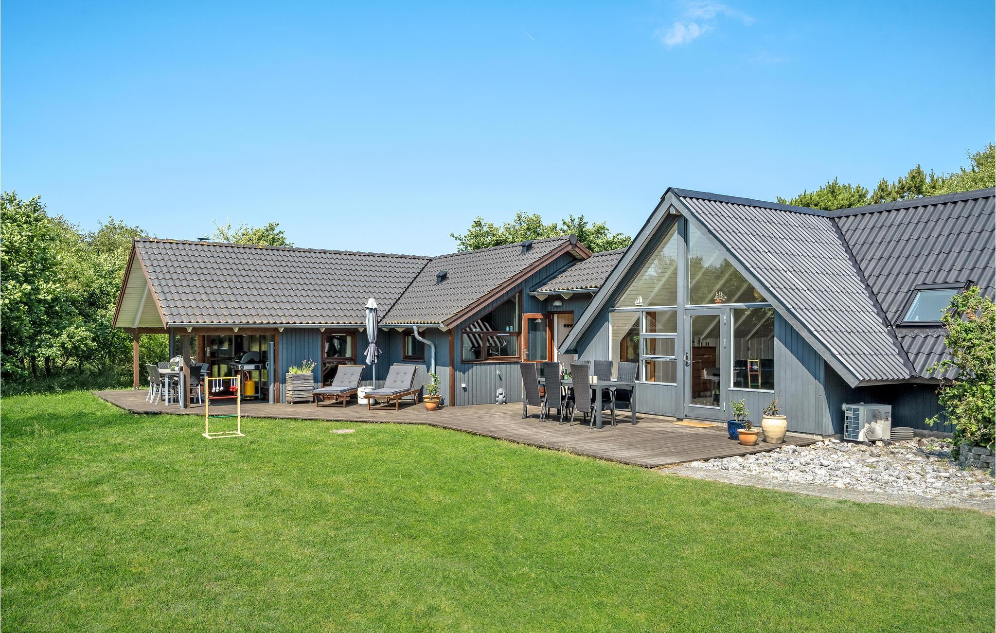 Dieses Haus liegt wunderbar in ruhiger Umgebung am ein schönes Naturgrundstück. Es bietet Ihnen eine ideale Unterkunft für bis zu 12 Personen, somit ist hier ausreichend Platz für 2 Familien mit Haustier, die zusammen Urlaub machen möchten. Im Innenraum erwartet Sie ein modernes und stilvolles Design mit geräumigem Wohnraum und einigen gemütlichen Sitzmöglichkeiten. Machen Sie sich zusammen ein Frühstück und genießen es auf Ihrer offenen Terrasse, während Sie sich von der Sonne bescheinen lassen und die Luft im Freien genießen. Die Atmosphäre des Hauses ist warm und hell, dies wird Ihnen ein wohliges und heimeliges Gefühl verschaffen. Es steht Ihnen ebenso ein Whirlpool und eine Sauna zur Verfügung, wo Sie sich vollkommen entspannen können.