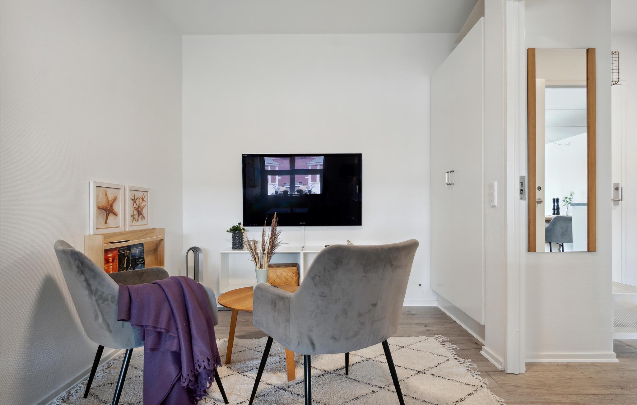 Nur wenige Schritte vom breiten Nordstrand Fanøs entfernt, empfängt Sie diese helle und einladende Ferienwohnung. Im offenen Wohnraum finden Sie alles vor, was Sie für Ihren unbeschwerten Urlaub brauchen. Zaubern Sie sich am Morgen ein leckeres Frühstück und machen beim Essen vor großen Fenstern Pläne für Ihre Aktivitäten und Ausflüge auf der Insel. Nutzen Sie für den Nachmittagskaffee den Balkon und genießen Sie ein paar Sonnenstrahlen. Am Abend können Sie auf dem Sofa Ihre Beine hochlegen, sich entspannen und gemeinsam einen unterhaltsamen Film schauen.