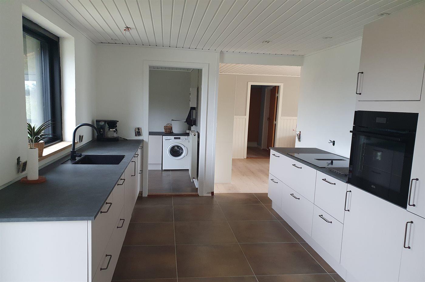 Die Küche ist mit Kühlschrank ausgestattet. Außerdem gibt es 4 Induktions-Kochzonen, Umluftofen, Mikrowelle sowie Geschirrspüler.