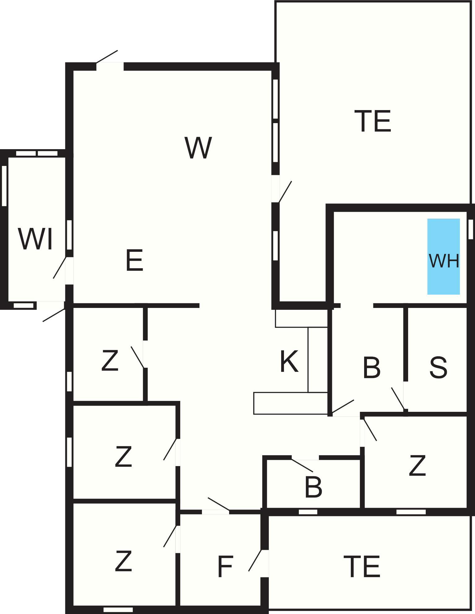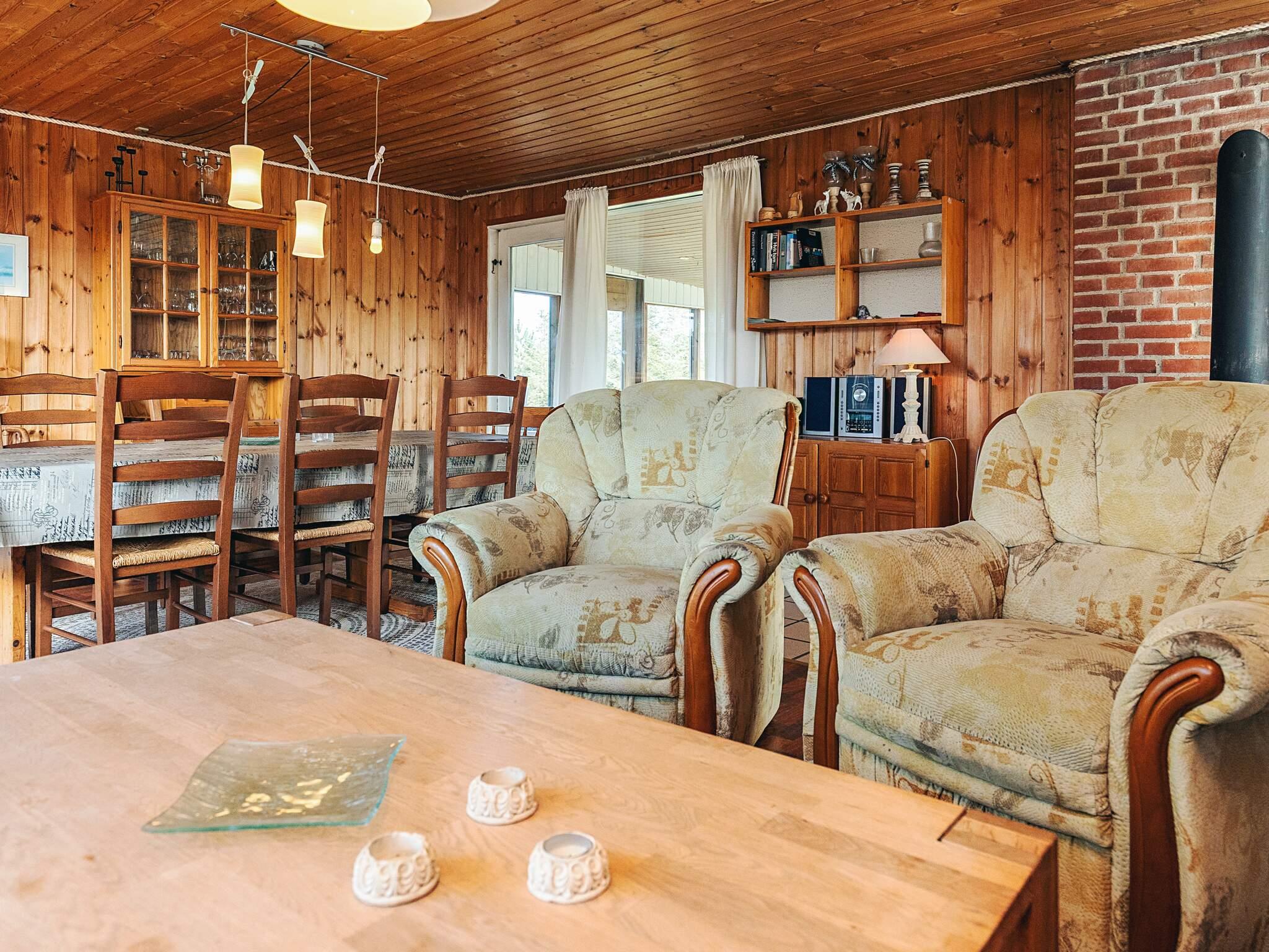 Das Haus wurde 1988/99 erbaut und seitdem fortlaufend instand gehalten. Es hat einen offenen Küchen-/Wohnbereich für das Familienleben sowie vier Schlafzimmer, ein Bad mit Whirlpool und Sauna, zwei Duschen sowie eine Gästetoilette. Der Wohnraum ist hell und geräumig mit Essbereich und gemütlicher Sitzecke. Die Einrichtung ist gemütlich und typisch dänisch mit viel Holz.