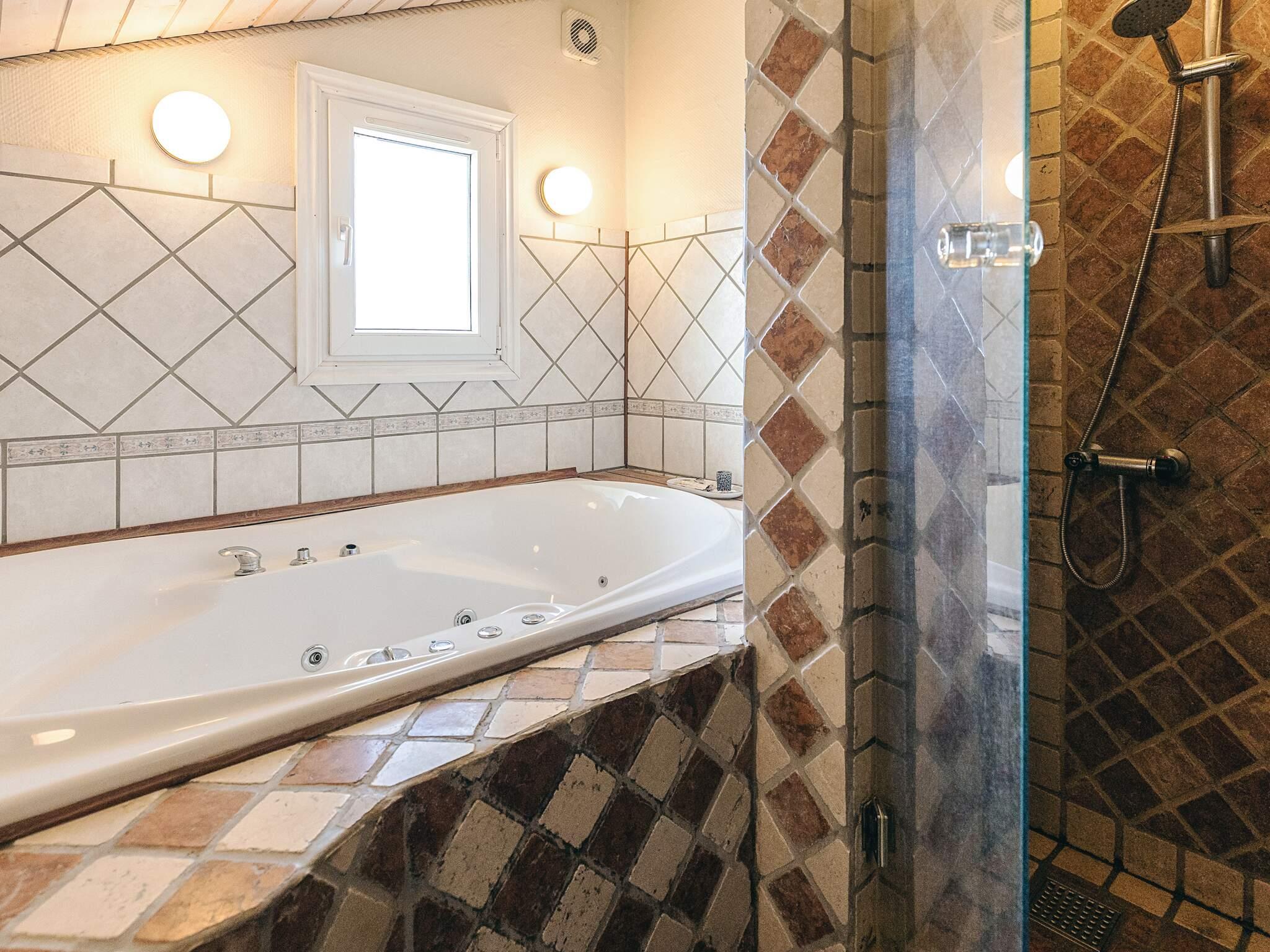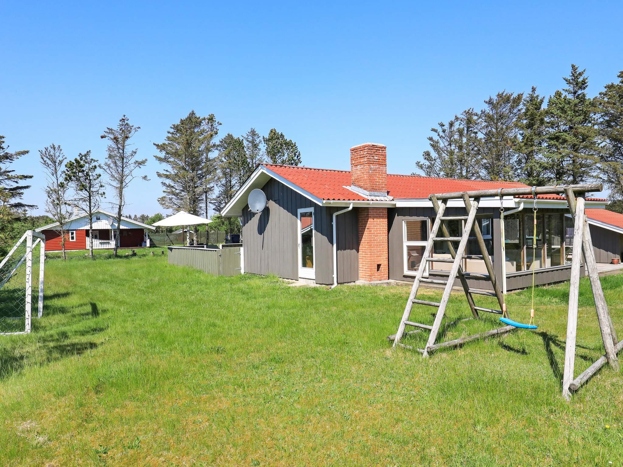 Geräumiges Ferienhaus mit Whirlpool und Sauna sowie vier Schlafzimmern. Sie wohnen hier im ruhigen Ferienhausgebiet bei Grønhøj Strand, südlich von Løkken, auf einem abgeschirmten Naturgrundstück nur ca. 700 m vom Nordseestrand entfernt.
