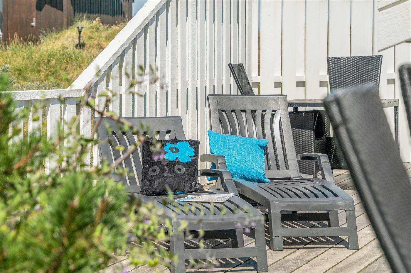 Die Ferienunterkunft liegt auf einem 2600 m² großen Naturgrundstück. Die Entfernung zum Meer beträgt 450 m. Die nächste Einkaufsmöglichkeit liegt 600 m entfernt. Es steht ein 40 m² Terrassenareal zur Verfügung. Außerdem gibt es 10 m² überdachte Terrasse. Geräteraum. Schaukel. Sandkasten. Gasgrill steht zur Verfügung. Es steht ein Carport zur Verfügung. Es ist ein Ladestecker für Elektroautos installiert. Parkplatz auf dem Grundstück.