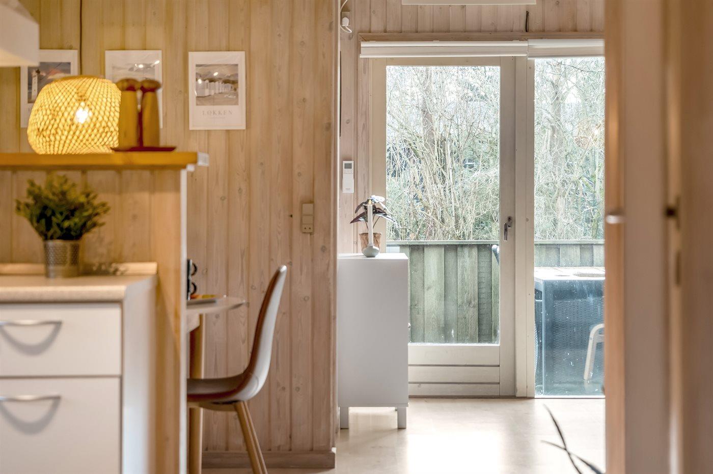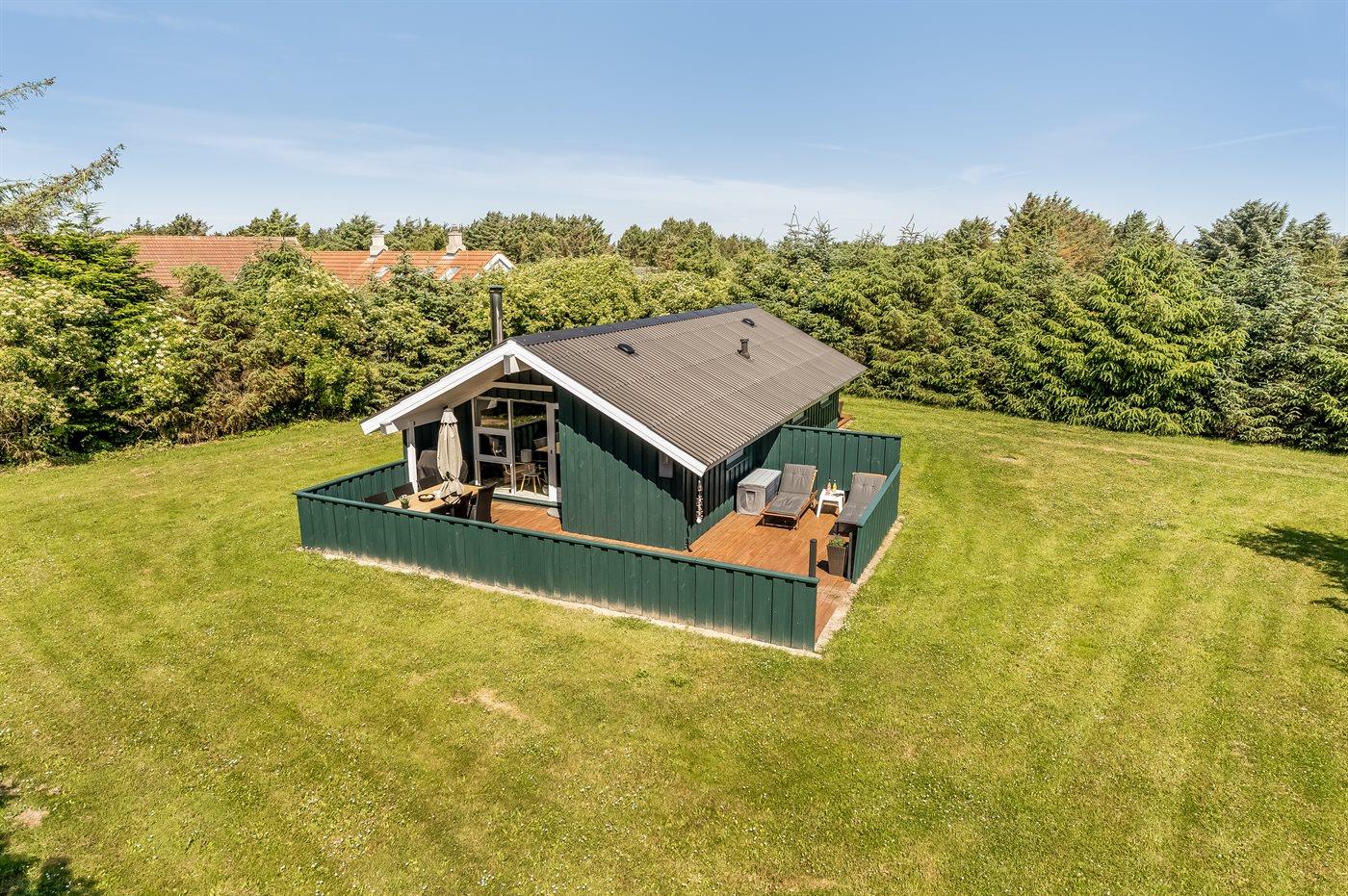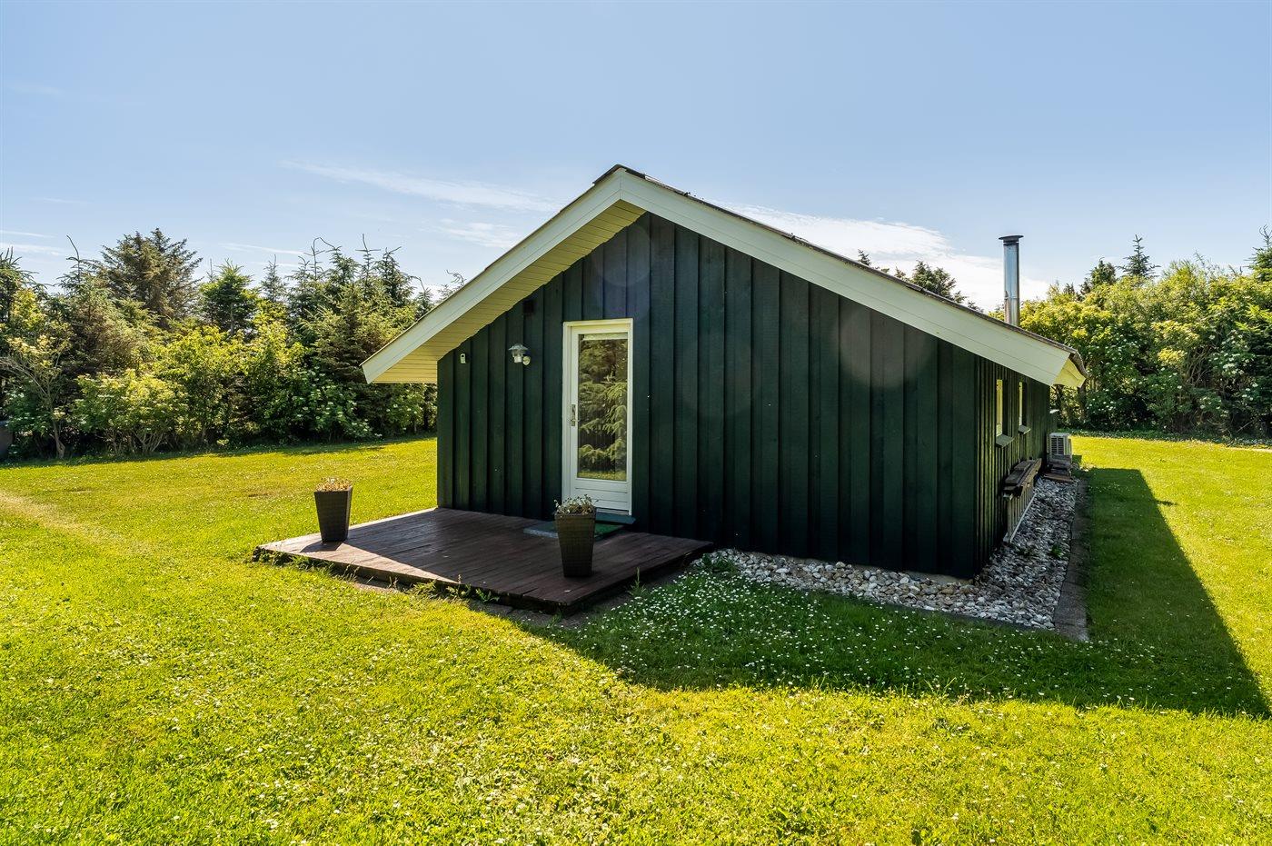 Gemütliches Ferienhaus das auf einem geschlossenen Grundstück in einer attraktiven Ferienhaussiedlung nahe an Strand und Meer liegt.