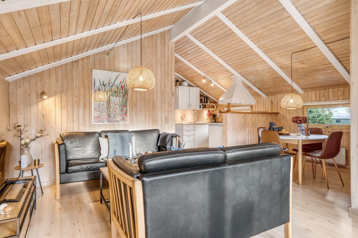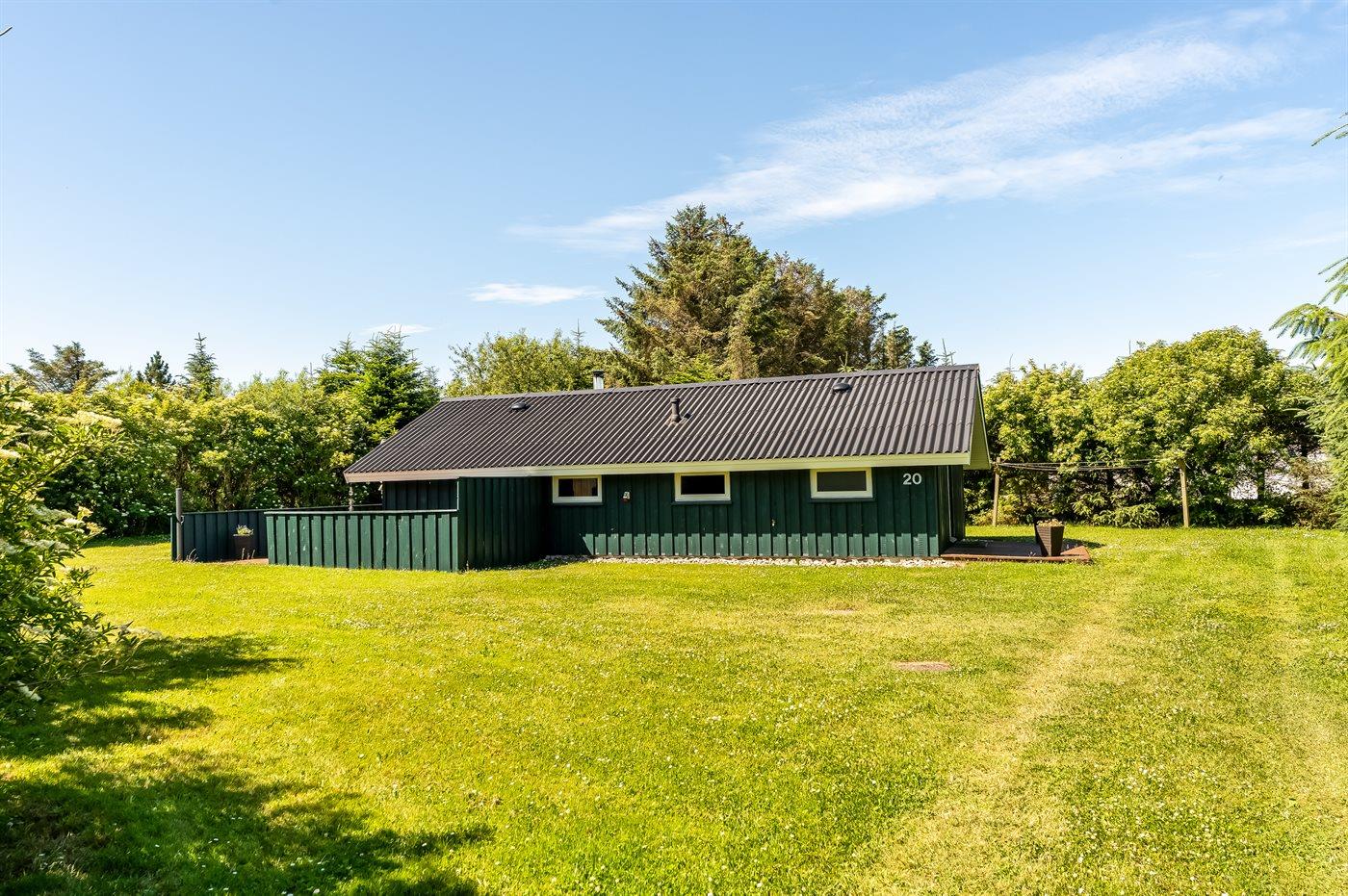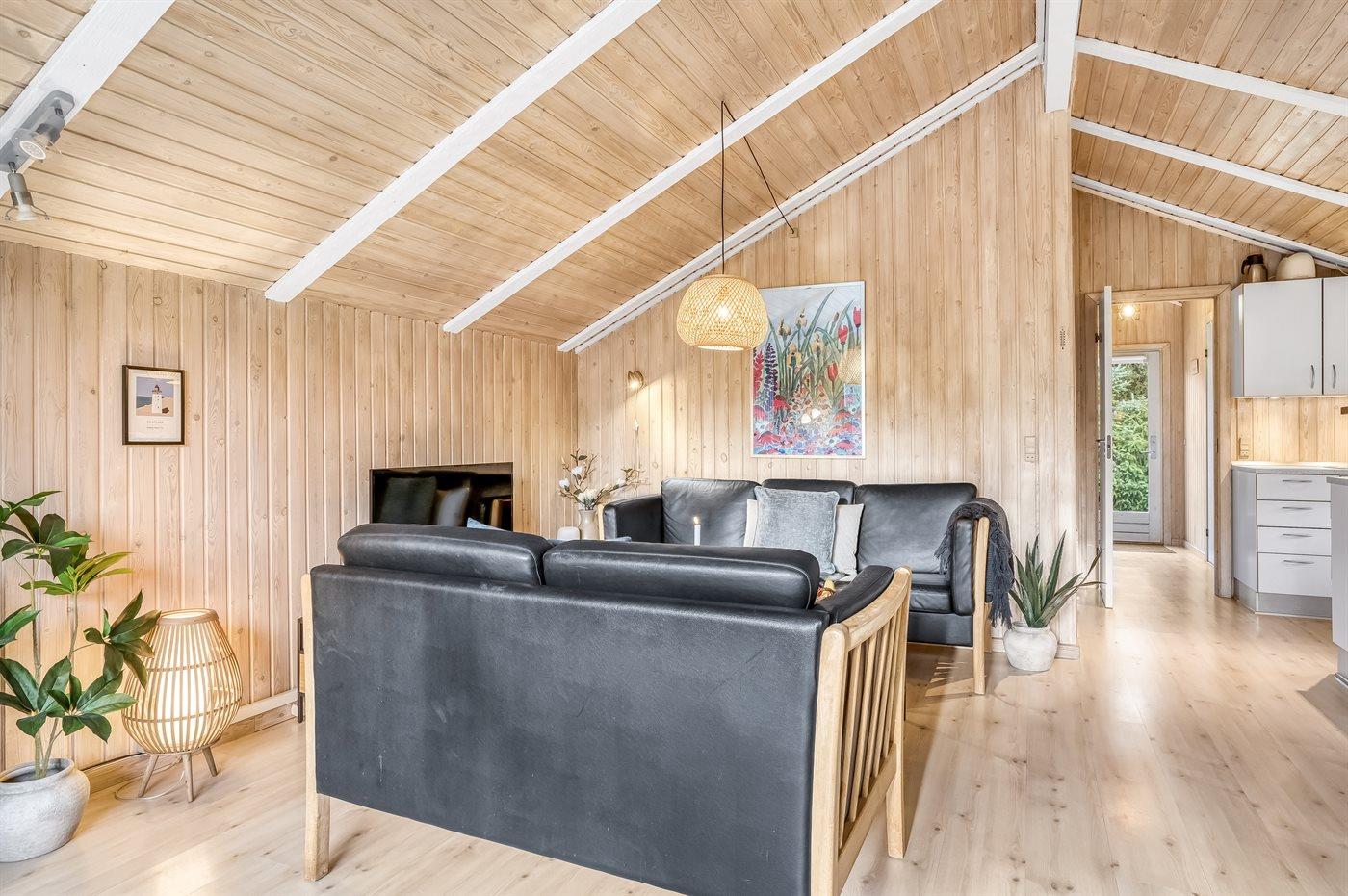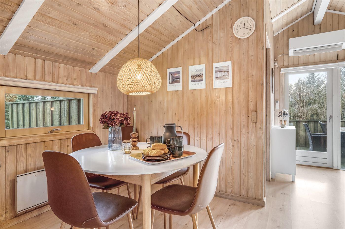 Gemütliches Ferienhaus das auf einem geschlossenen Grundstück in einer attraktiven Ferienhaussiedlung nahe an Strand und Meer liegt.