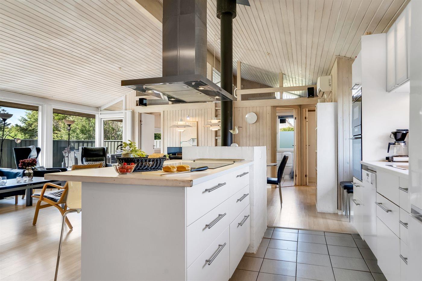 Die Küche ist mit Kühlschrank ausgestattet. Außerdem gibt es 4 Induktions-Kochzonen, Umluftofen, Mikrowelle sowie Geschirrspüler.