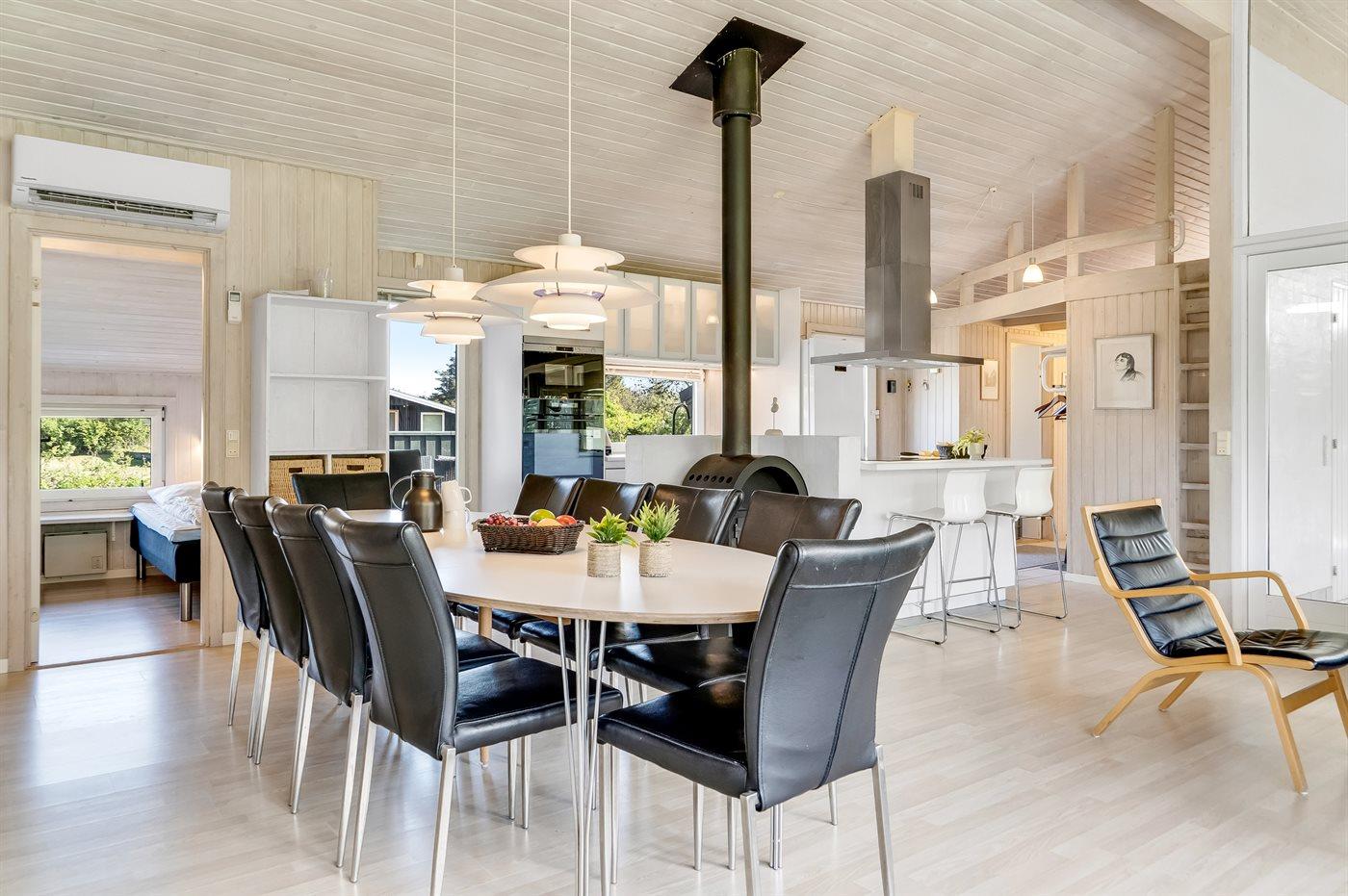 Das Ferienhaus eignet sich für 10 Personen sowie 1 Kleinkind bis zu 3 Jahren. Die Ferienunterkunft hat eine Wohnfläche von 170 m² und wurde 1992 gebaut. 2016 wurde die Ferienunterkunft teilweise renoviert. Es ist erlaubt 2 Haustiere mitzubringen. Die Ferienunterkunft ist mit energiesparender Wärmepumpe ausgestattet. Fußbodenheizung in allen Klinkerböden. Die Ferienunterkunft ist mit Waschmaschine ausgestattet. Wäschetrockner. Tiefkühlmöglichkeit mit 97 Liter Nutzinhalt. Es gibt außerdem einen Kaminofen. Für die jüngsten Feriengäste ist 1 Kinderhochstuhl vorhanden.