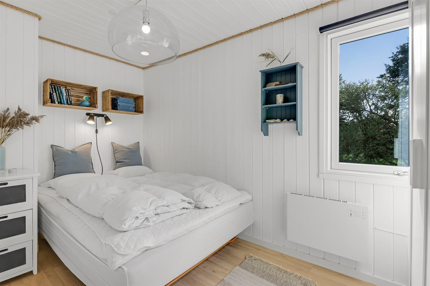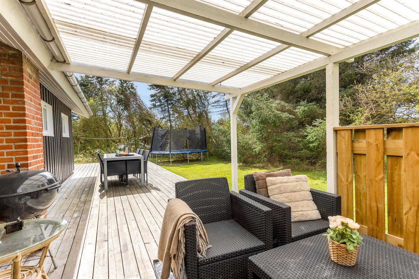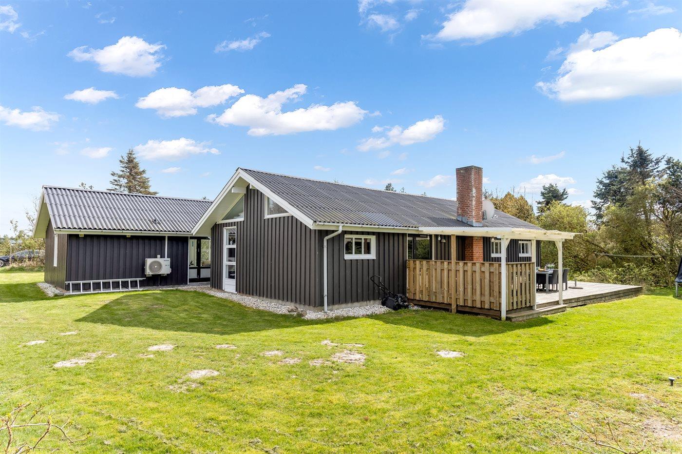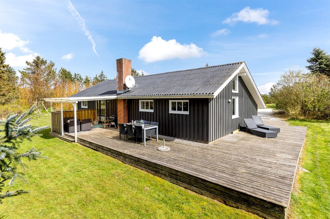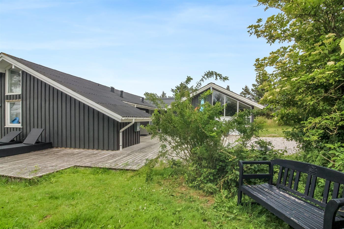 Ein schönes Ferienhaus mit einer großen Wellness-Abteilung und einer guten Lage in landschaftlich schöner Umgebung. Das Grundstück ist von Bäumen und Büschen umgeben und man kan sich daher relativ ungestört auf dem Grundstück aufhalten. Nur etwa 300 m vom Haus entfernt liegt das Meer und der schöne Badestrand und den Erlebnispark Fårup Sommerland erreichen Sie nach einer kurzen Fahrt mit dem Auto. Übrigens: 2 der Schlafplätze finden Sie in Form von Matratzen im offenen Obergeschoss.