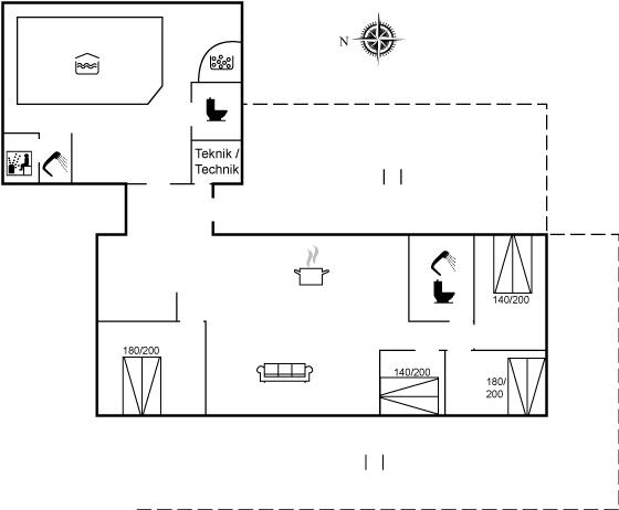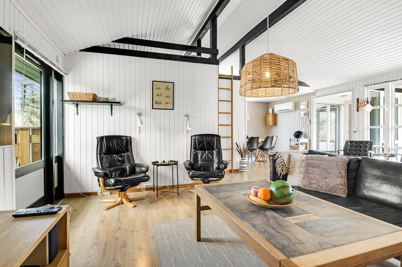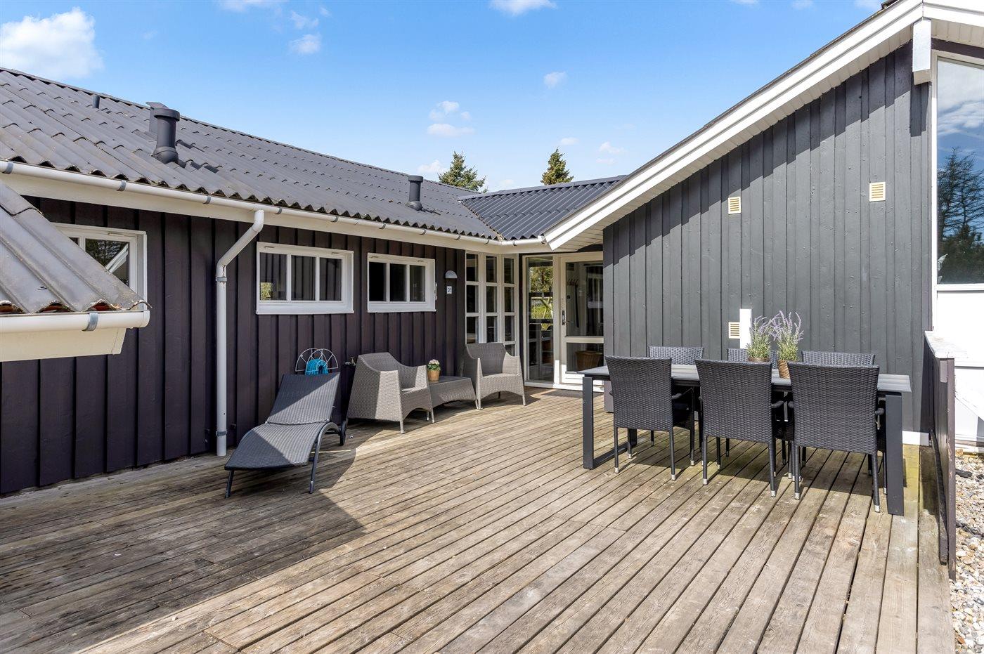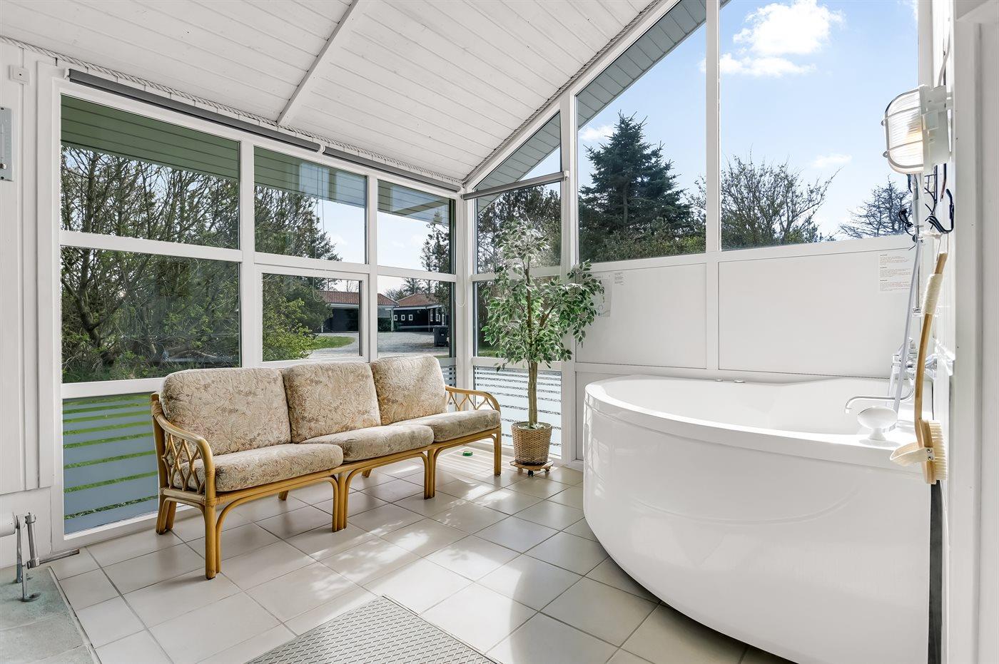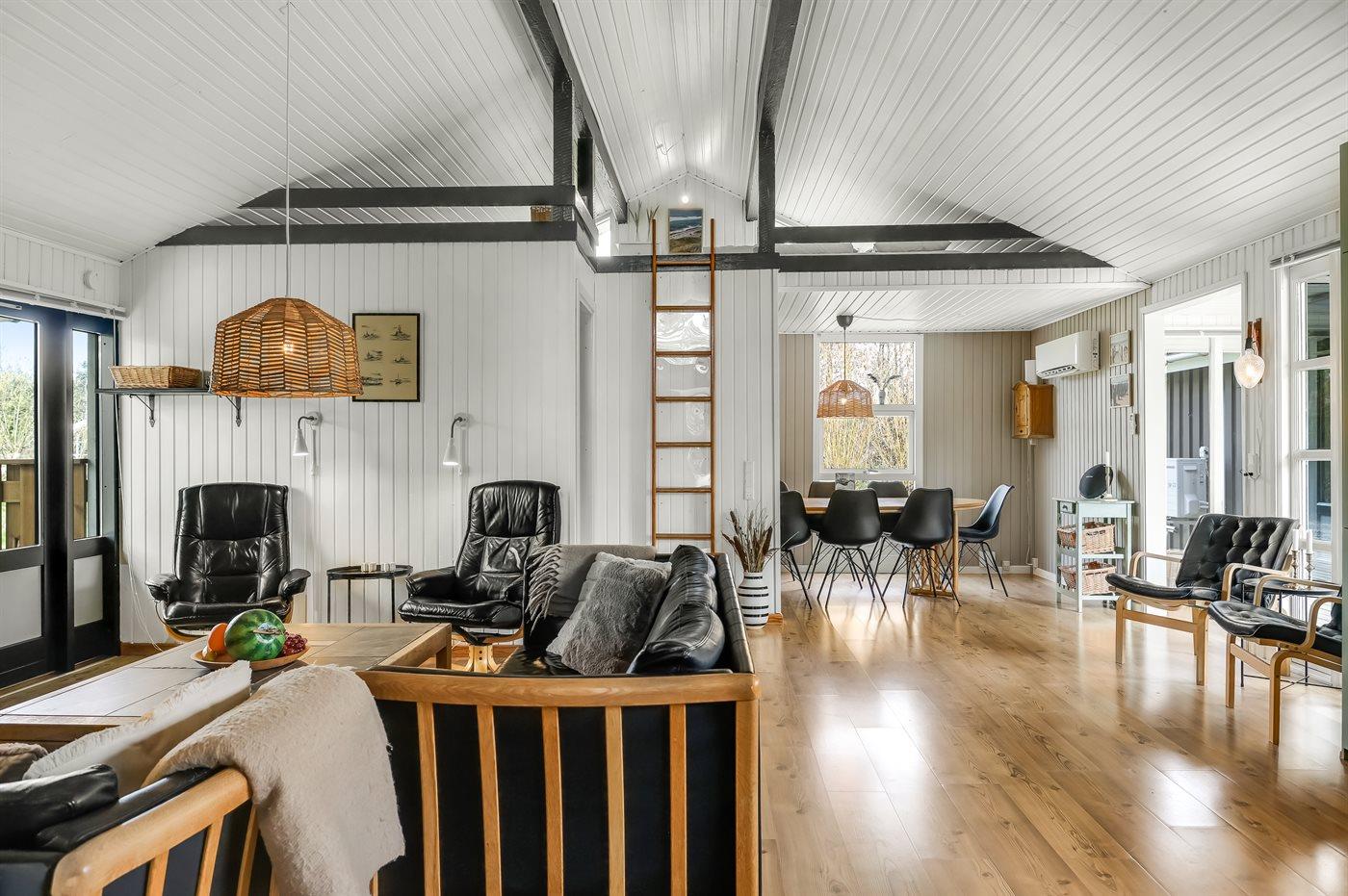 Ein schönes Ferienhaus mit einer großen Wellness-Abteilung und einer guten Lage in landschaftlich schöner Umgebung. Das Grundstück ist von Bäumen und Büschen umgeben und man kan sich daher relativ ungestört auf dem Grundstück aufhalten. Nur etwa 300 m vom Haus entfernt liegt das Meer und der schöne Badestrand und den Erlebnispark Fårup Sommerland erreichen Sie nach einer kurzen Fahrt mit dem Auto. Übrigens: 2 der Schlafplätze finden Sie in Form von Matratzen im offenen Obergeschoss.