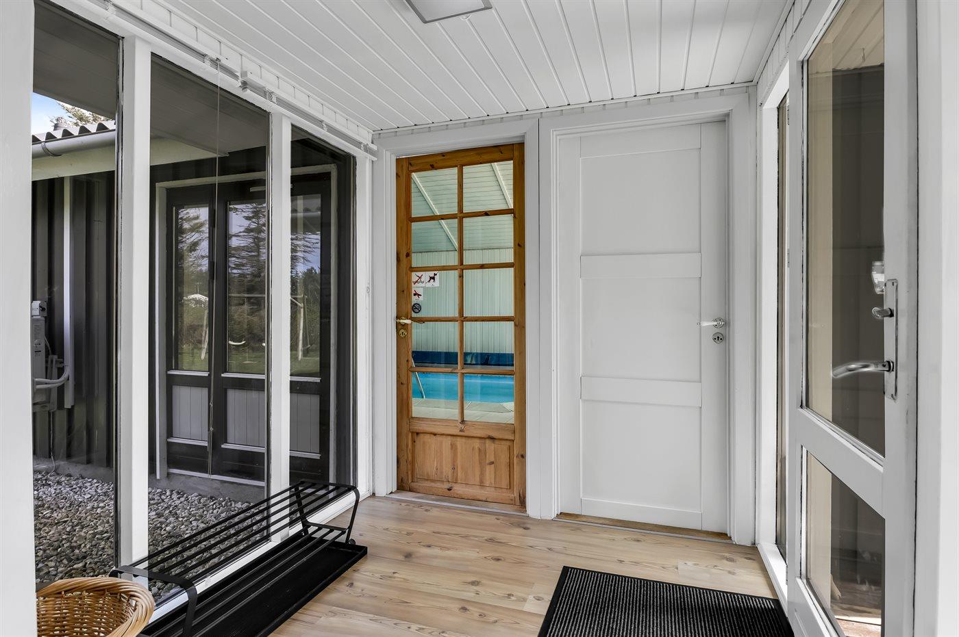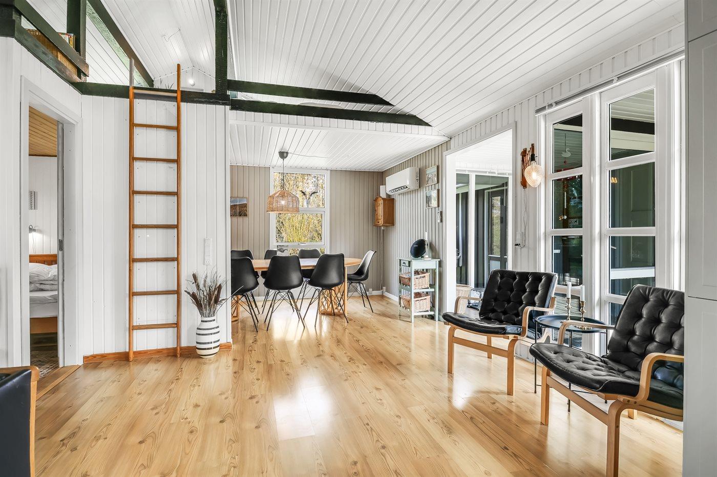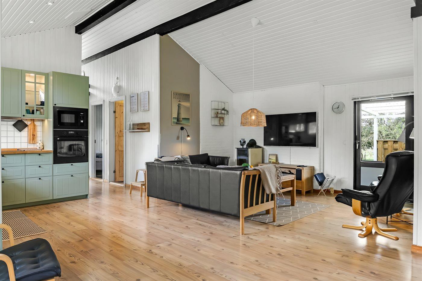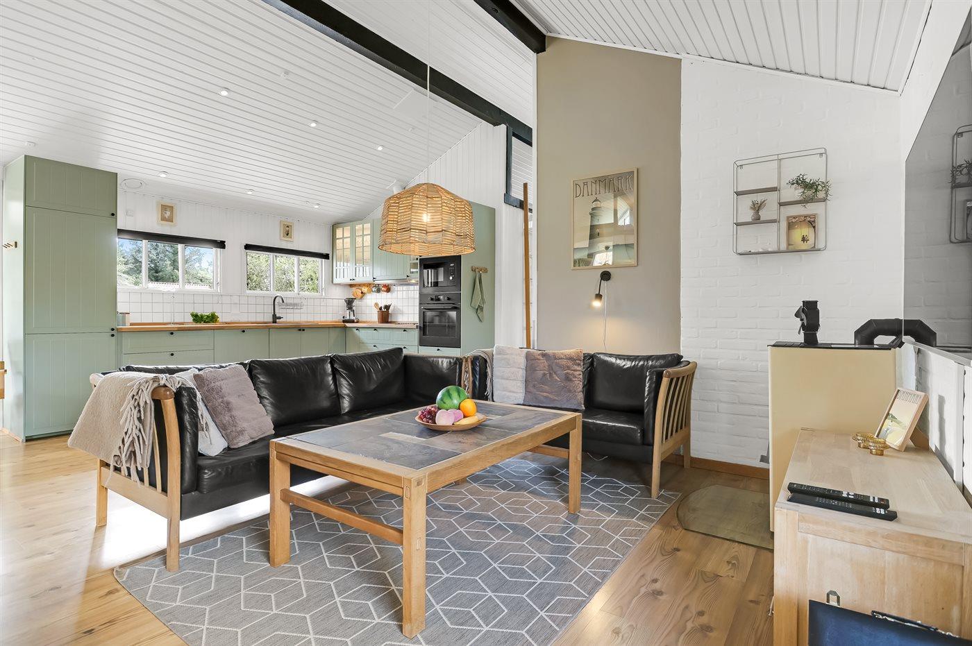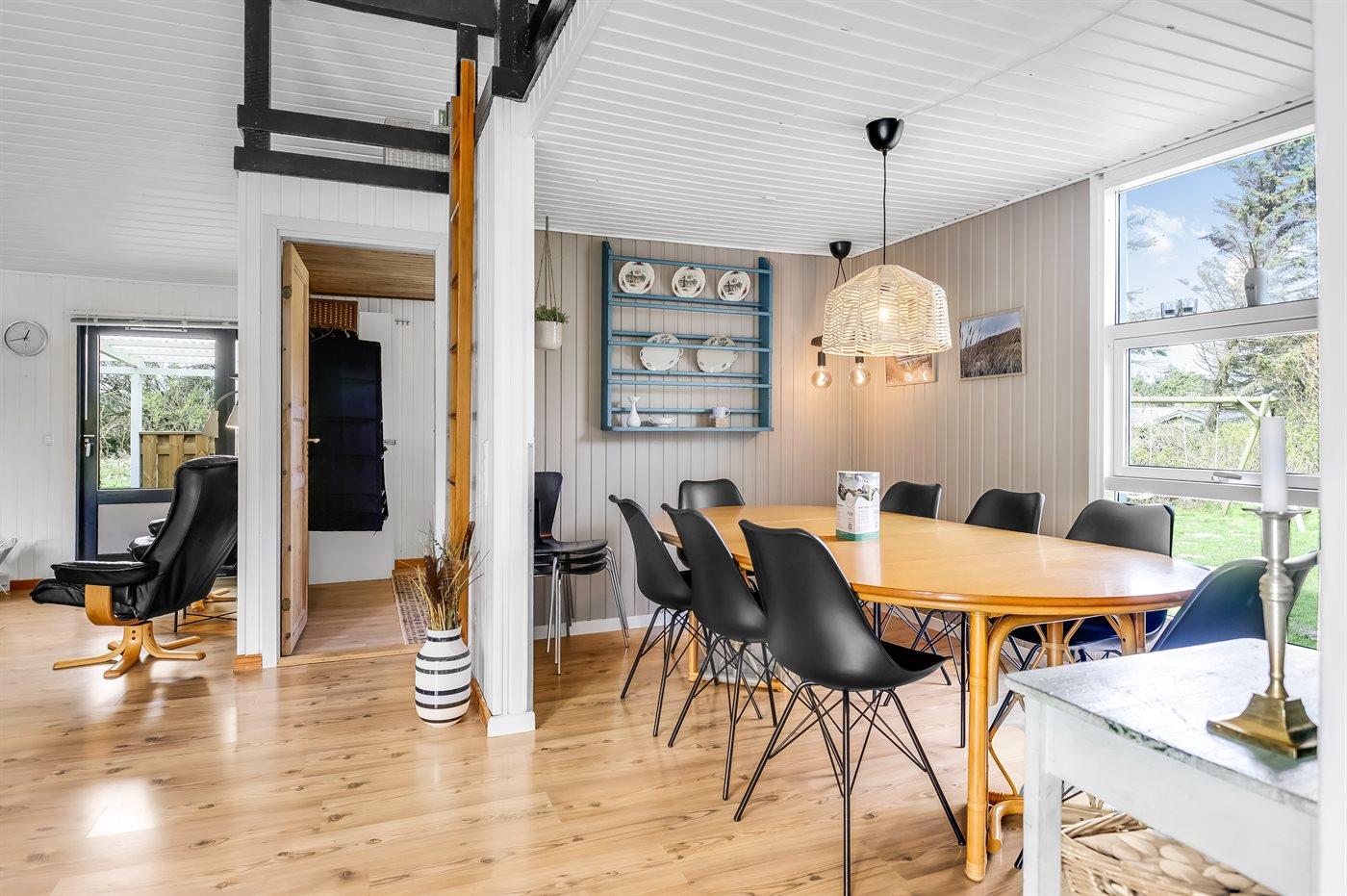 Ein schönes Ferienhaus mit einer großen Wellness-Abteilung und einer guten Lage in landschaftlich schöner Umgebung. Das Grundstück ist von Bäumen und Büschen umgeben und man kan sich daher relativ ungestört auf dem Grundstück aufhalten. Nur etwa 300 m vom Haus entfernt liegt das Meer und der schöne Badestrand und den Erlebnispark Fårup Sommerland erreichen Sie nach einer kurzen Fahrt mit dem Auto. Übrigens: 2 der Schlafplätze finden Sie in Form von Matratzen im offenen Obergeschoss.