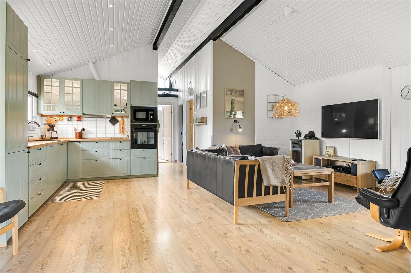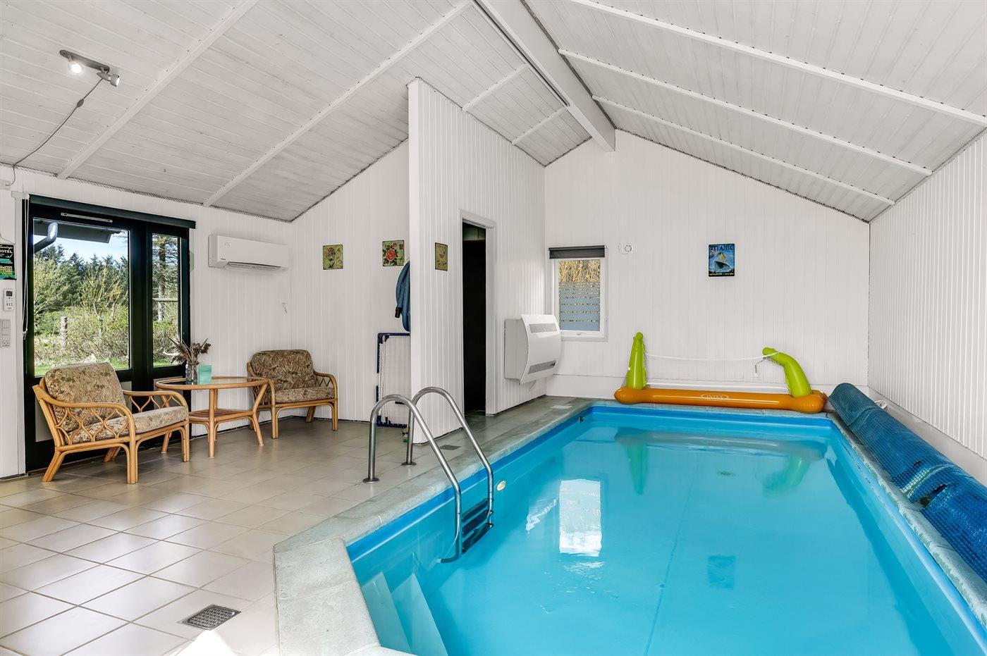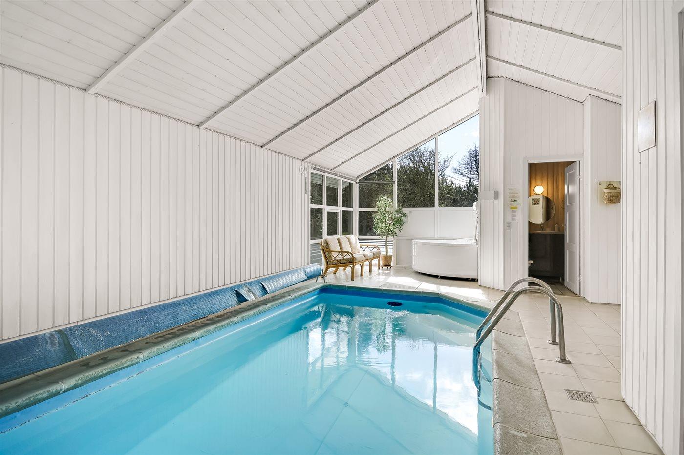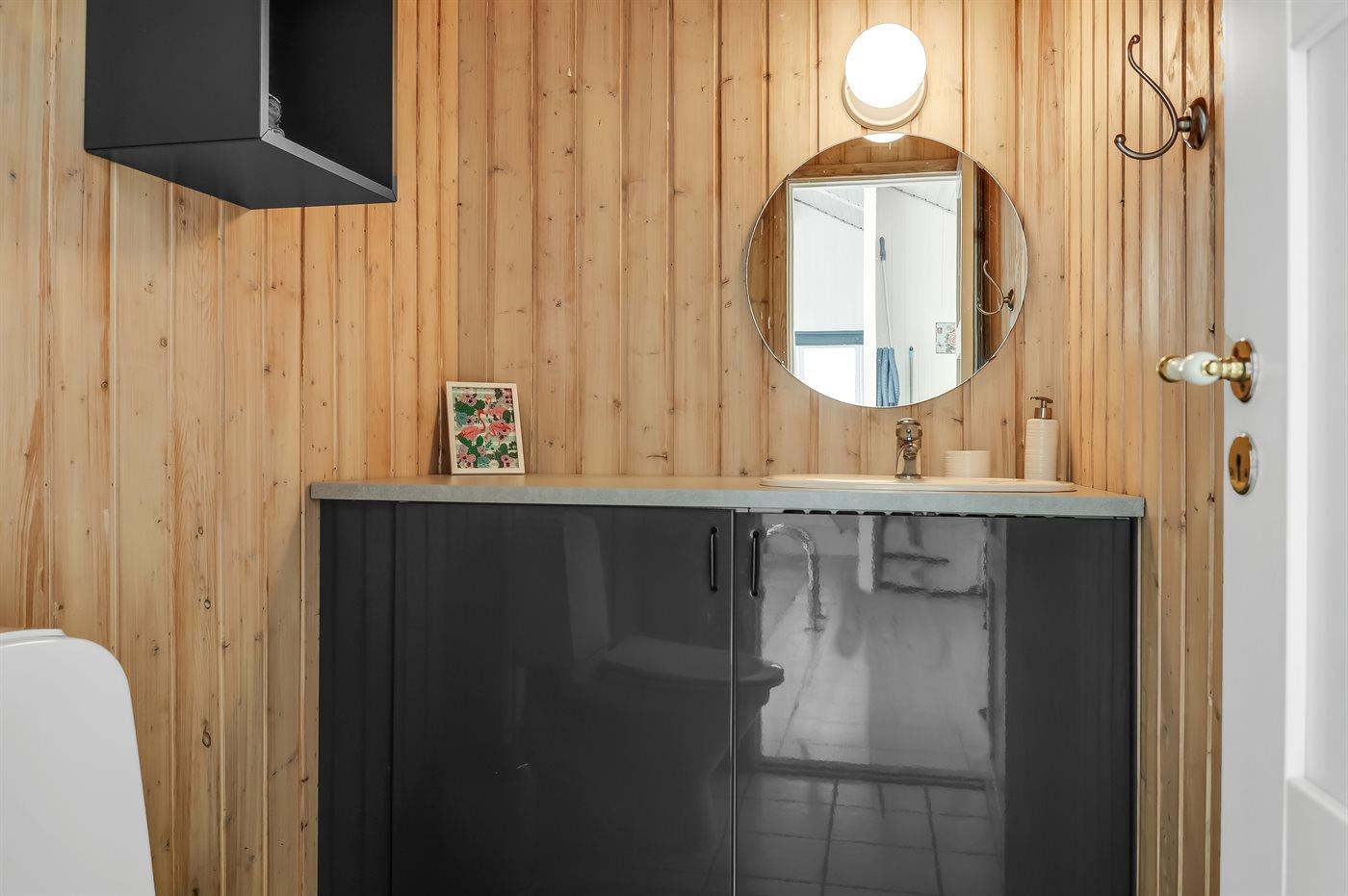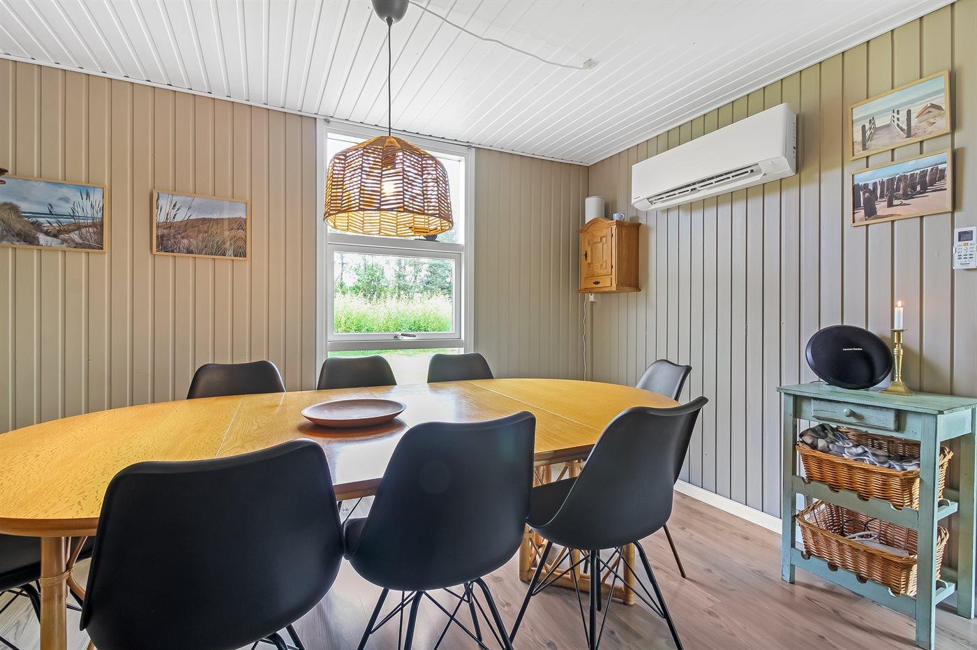 Ein schönes Ferienhaus mit einer großen Wellness-Abteilung und einer guten Lage in landschaftlich schöner Umgebung. Das Grundstück ist von Bäumen und Büschen umgeben und man kan sich daher relativ ungestört auf dem Grundstück aufhalten. Nur etwa 300 m vom Haus entfernt liegt das Meer und der schöne Badestrand und den Erlebnispark Fårup Sommerland erreichen Sie nach einer kurzen Fahrt mit dem Auto. Übrigens: 2 der Schlafplätze finden Sie in Form von Matratzen im offenen Obergeschoss.