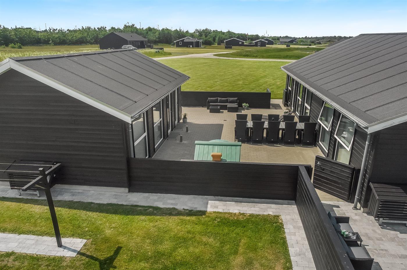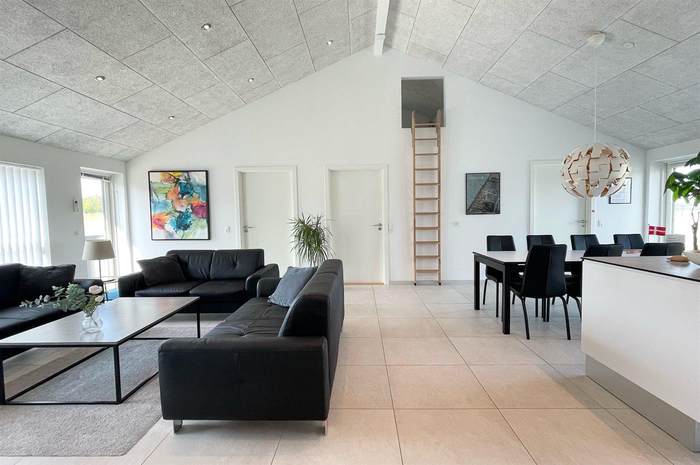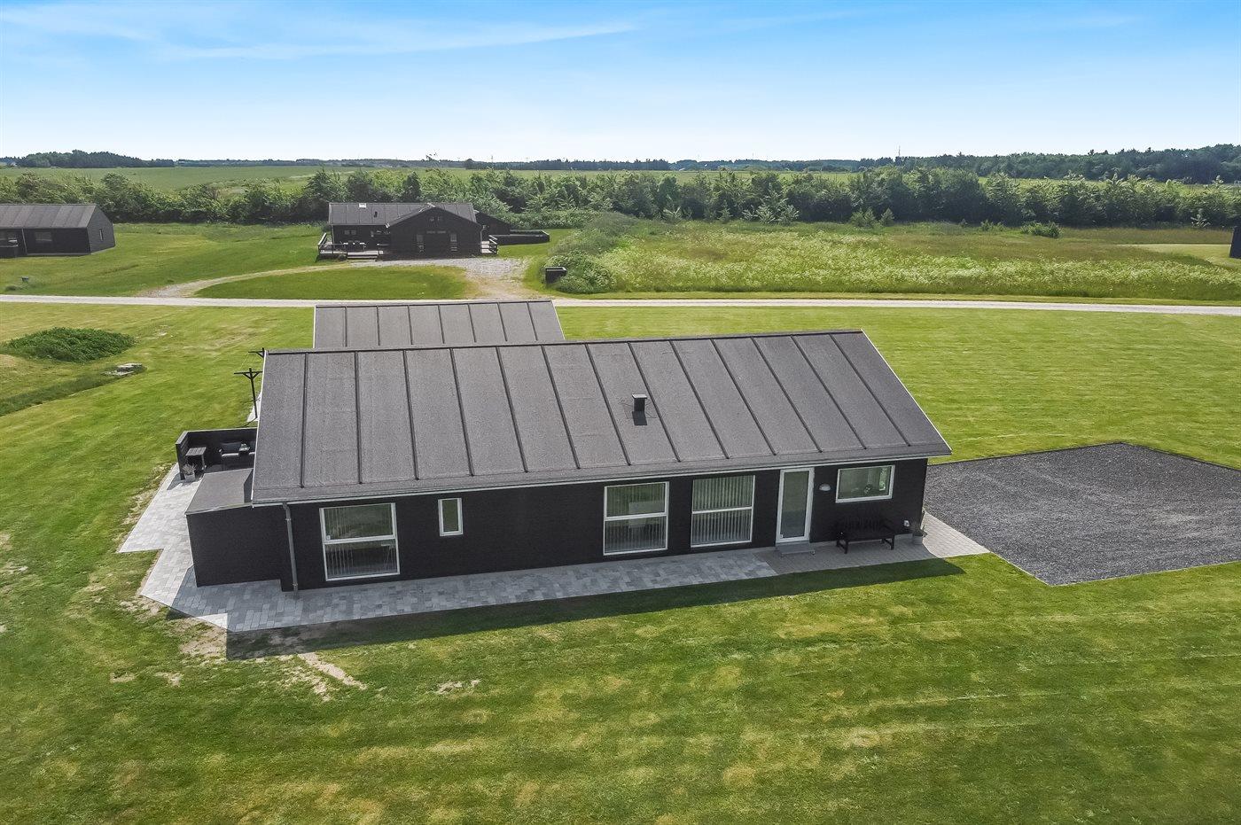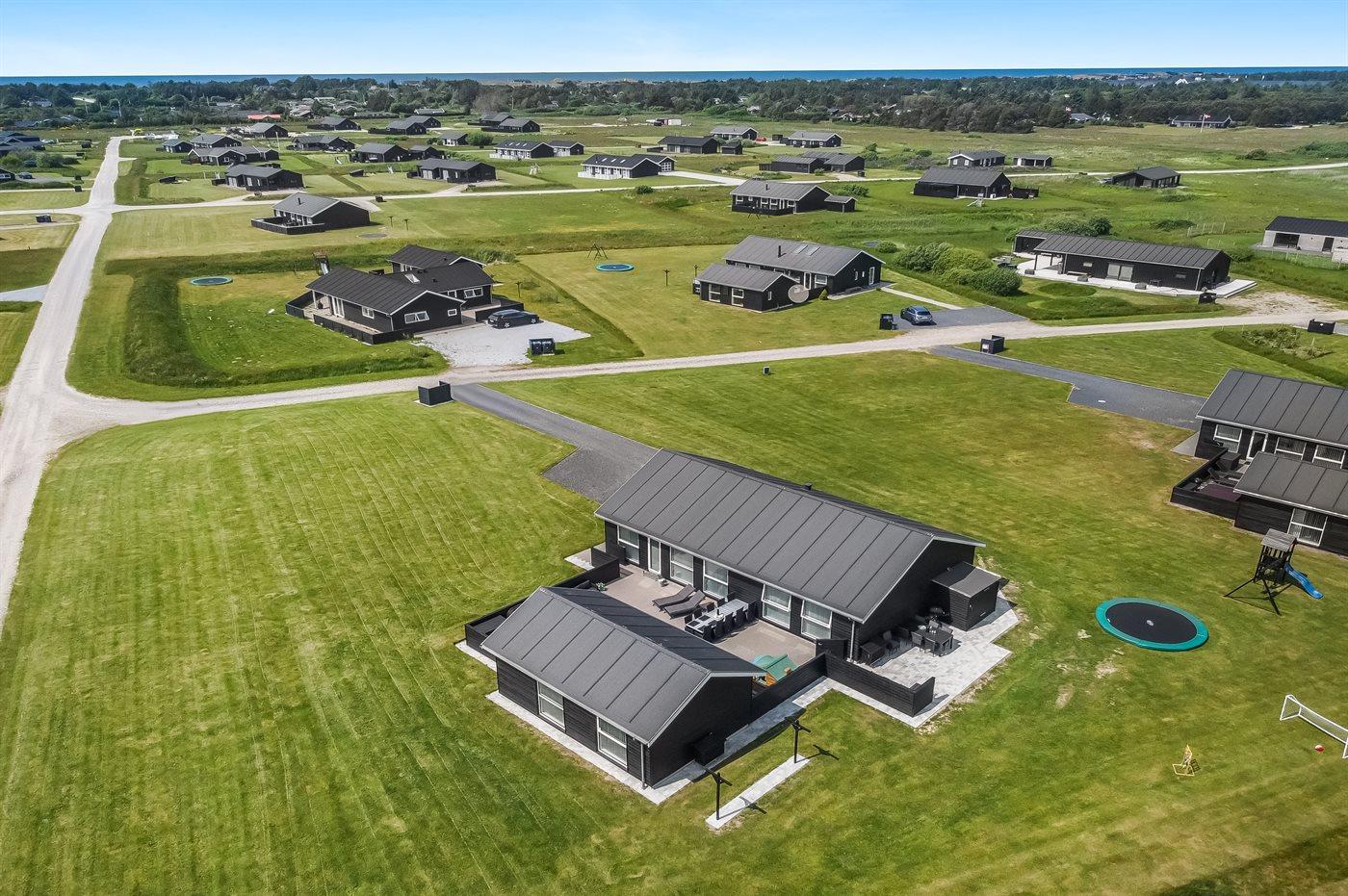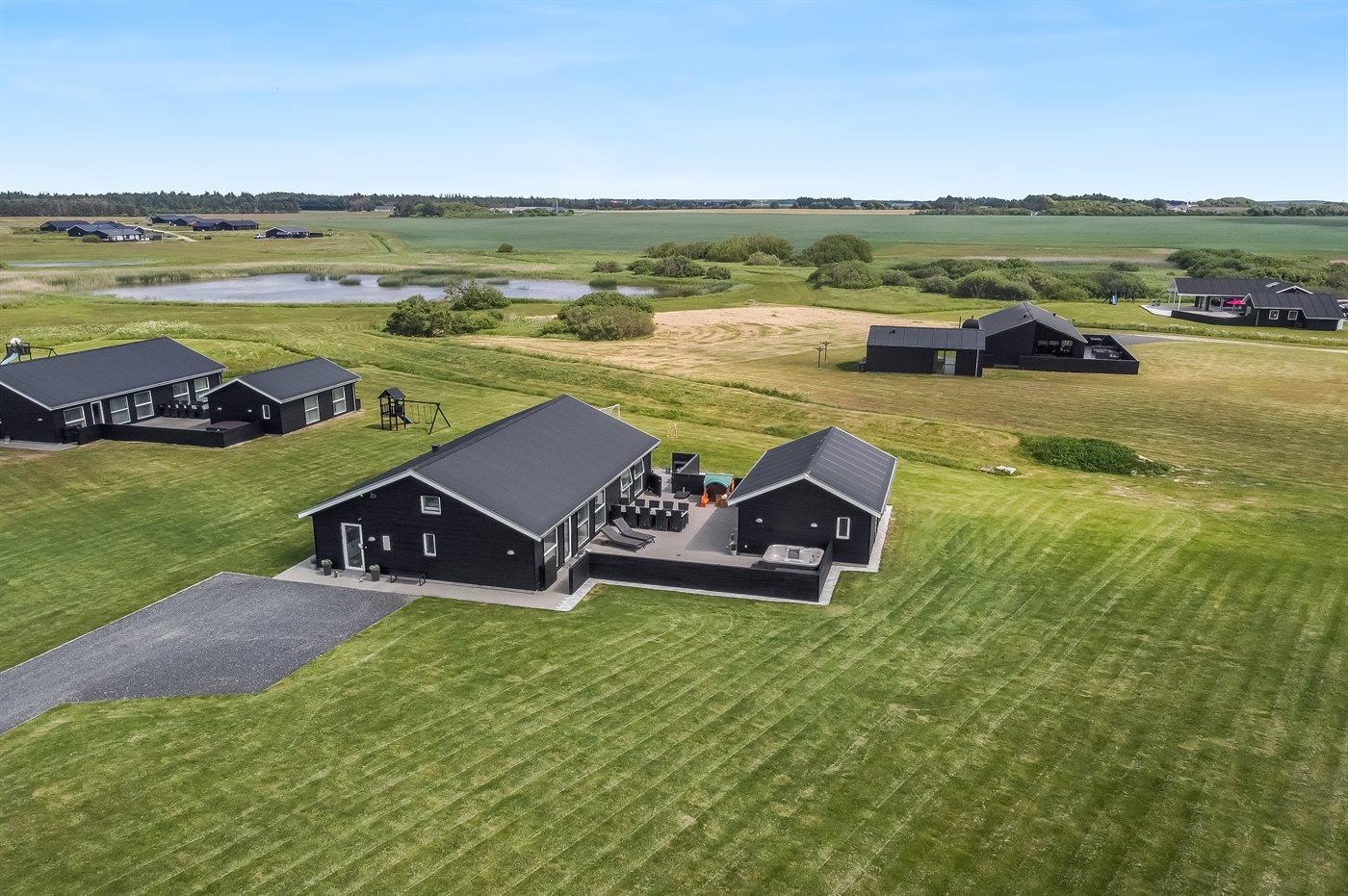 Ein modernes Ferienhaus aus dem Jahr 2019 mit viel Platz, gelegen auf einem 2106 m² großen, offenen Naturgrundstück in einem neuen Ferienhausgebiet, das sich noch im Aufbau befindet. Das Gebiet bietet dir 3 Seen und liegt in kurzer Entfernung zur Nordsee. Das Haus liegt in Gehweite vom Grønhøj Strand – ein herrlich breiter Badestrand mit vielen schönen Dünen, die sowohl Kindern als auch Erwachsenen Möglichkeiten zum Spielen und Entspannen bieten. Den Strand erreichst du zu Fuß entweder über das Wegenetz durch das Ferienhausgebiet oder über die Straße.