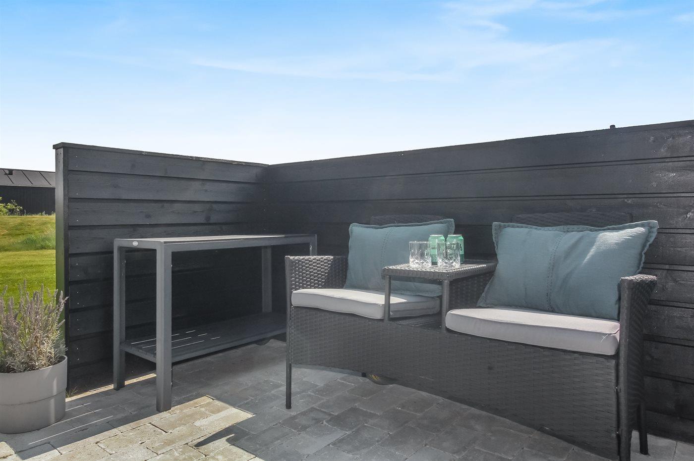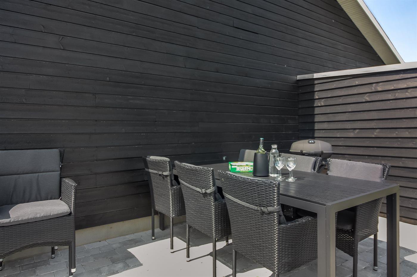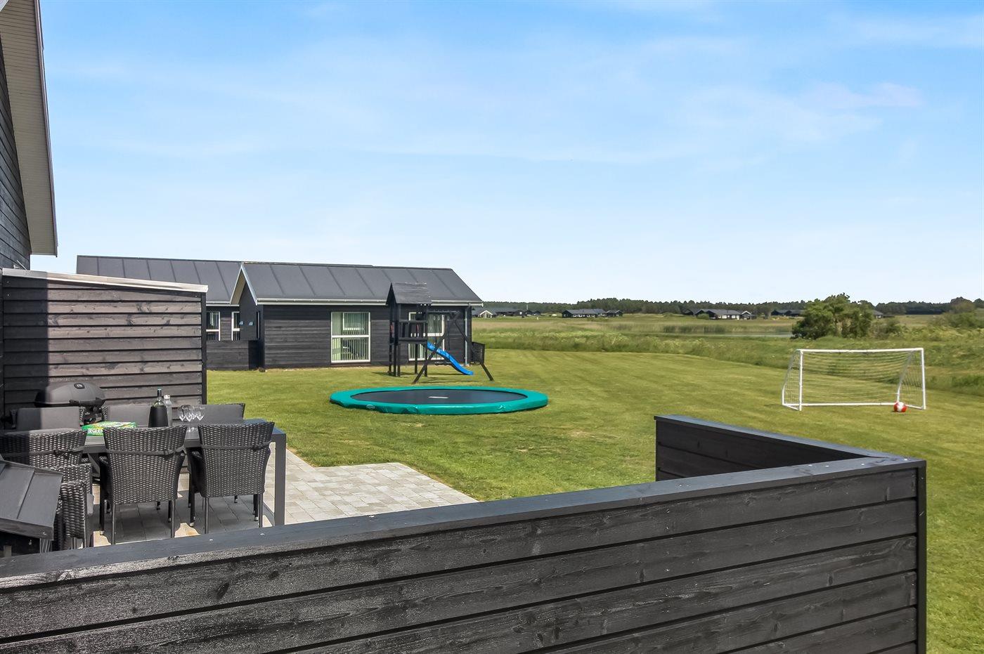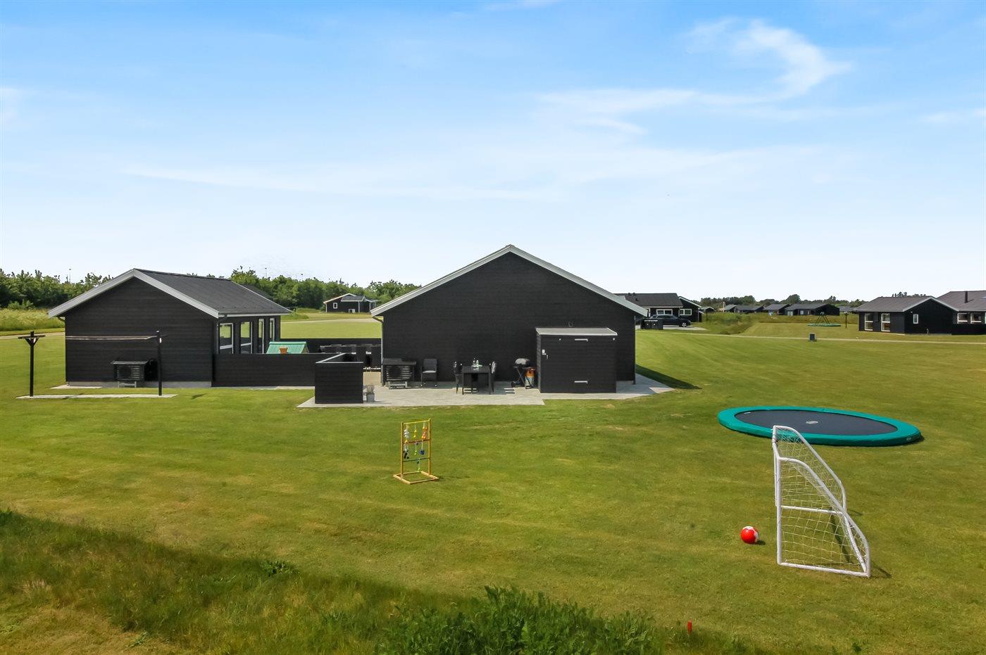 Haus und Annex sind durch eine große, schöne Terrasse von 80 m² verbunden, wo du das ganze Jahr über den Außen-Whirlpool für 4 Personen nutzen kannst. Außerdem gibt es ein Spielhaus und einen Sandkasten. Ein Abstellraum steht dir zur Verfügung. In der Auflagenbox auf der Terrasse findest du verschiedene Spiele für Aktivitäten im Freien – z. B. Krocket, Swingball, Wikingerschach, Cornhole und Leitergolf.