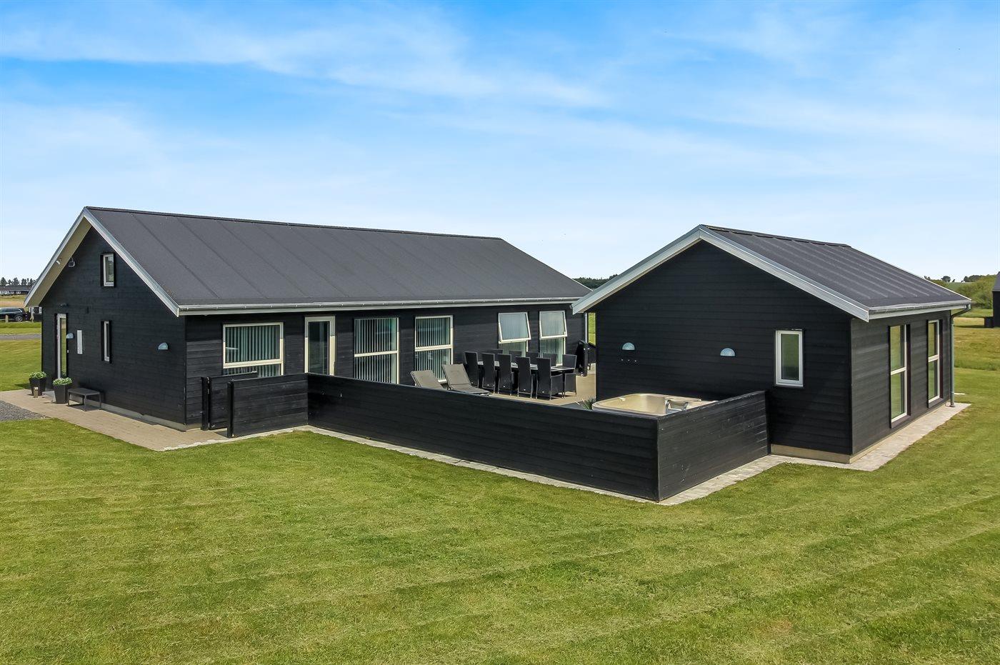 Modernes Ferienhaus in Løkken mit Sauna, Indoor- und Außen-Whirlpool, großem Grundstück und Seeblick.