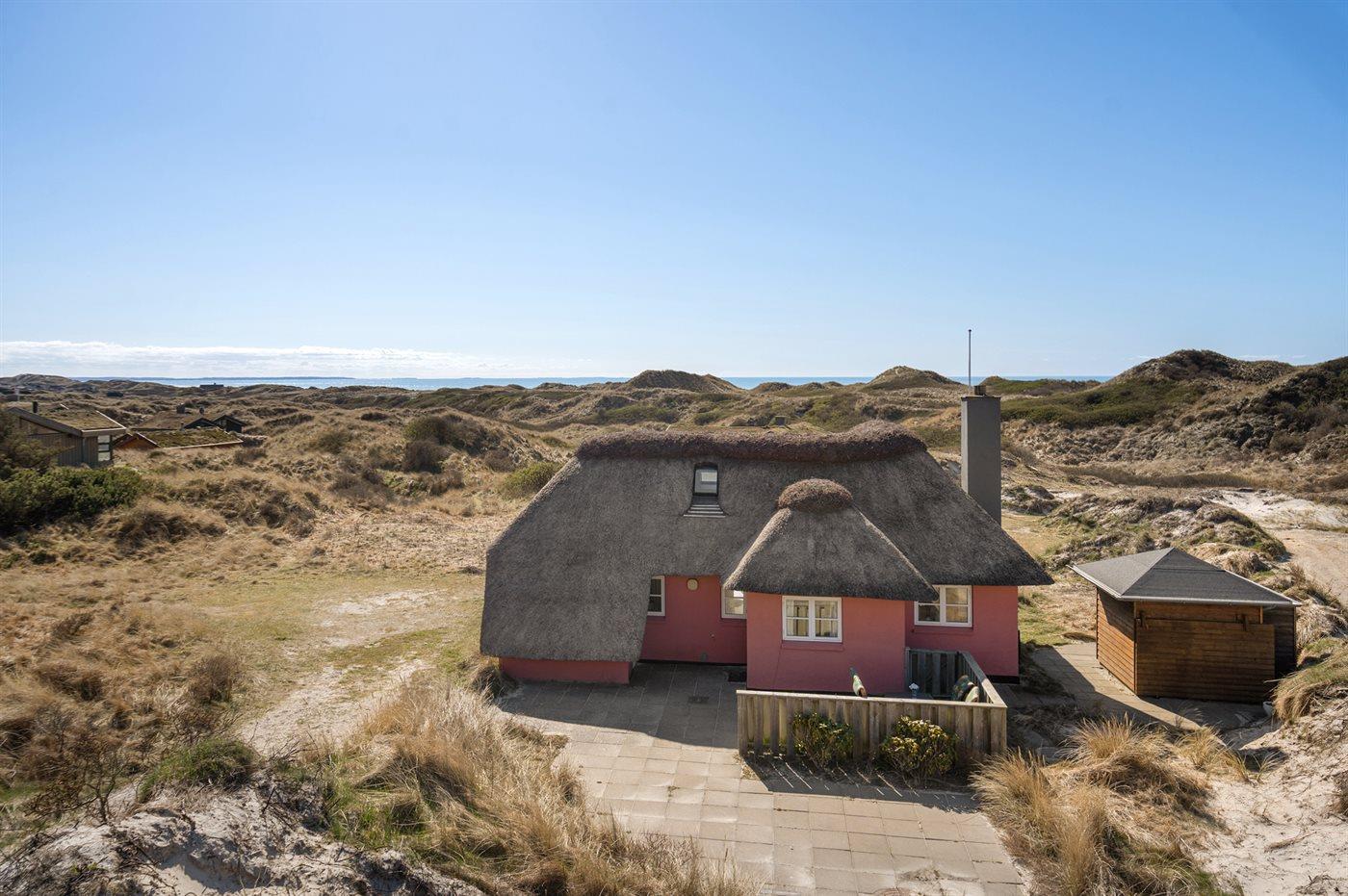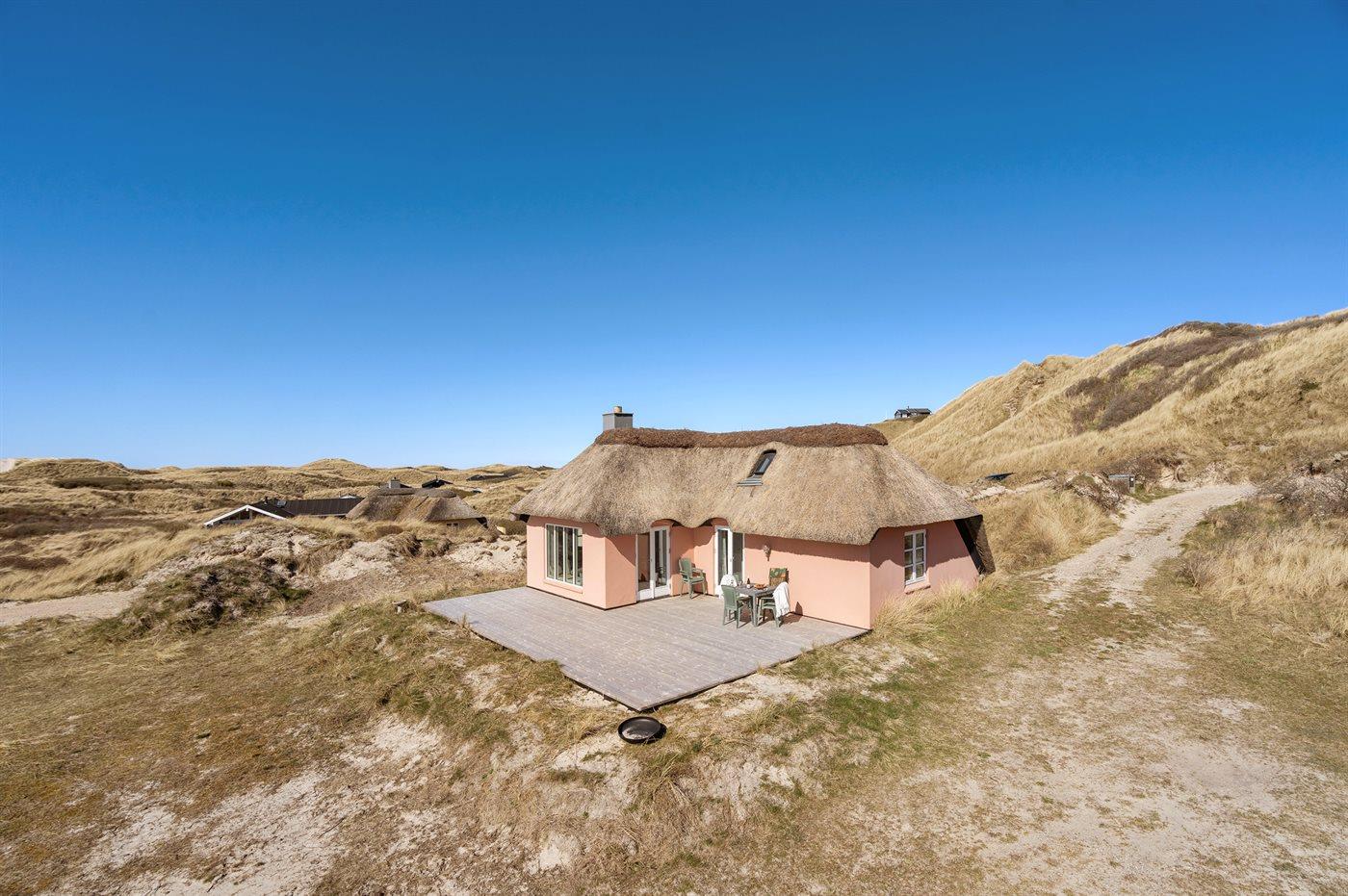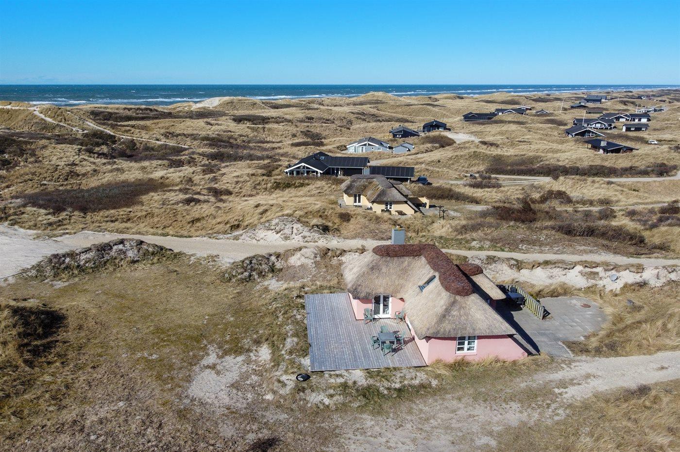 Die Ferienunterkunft liegt auf einem 2500 m² großen Dünengrundstück. Die Entfernung zum Meer beträgt 150 m. Die nächste Einkaufsmöglichkeit liegt 1500 m entfernt. Es steht ein 75 m² Terrassenareal zur Verfügung. Außendusche. Parkplatz auf dem Grundstück.