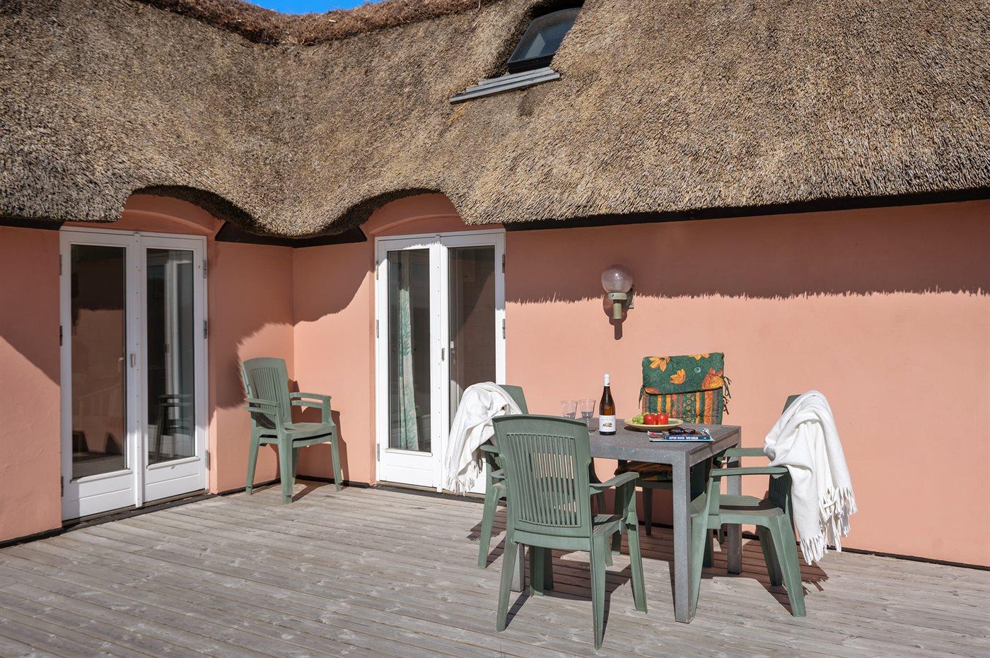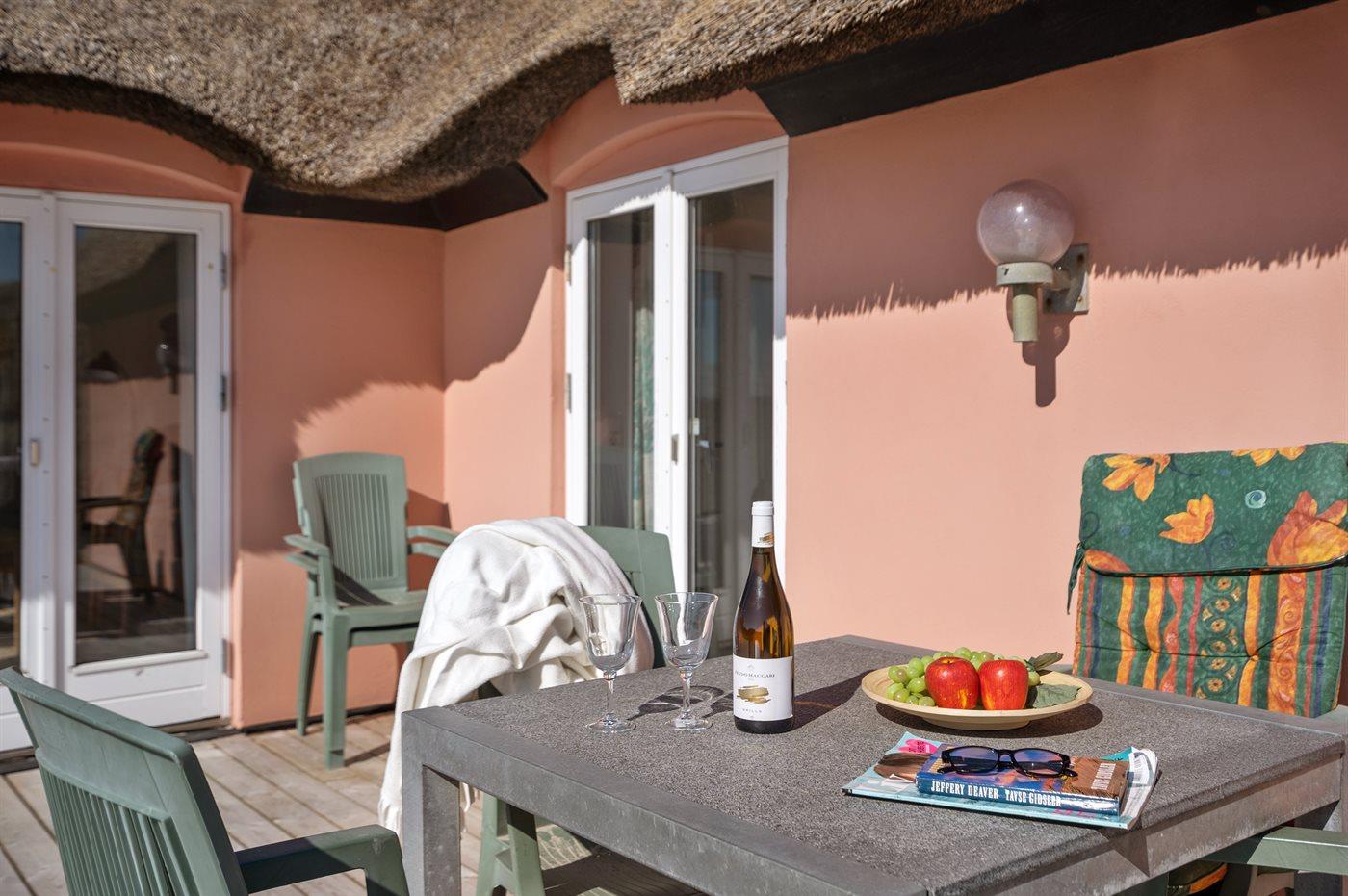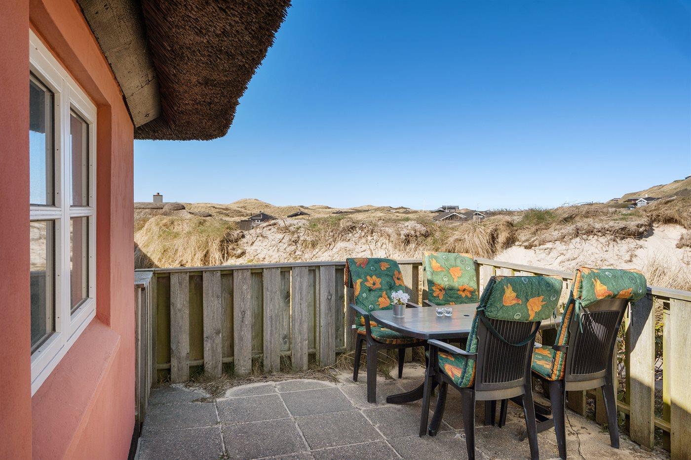 Die Ferienunterkunft liegt auf einem 2500 m² großen Dünengrundstück. Die Entfernung zum Meer beträgt 150 m. Die nächste Einkaufsmöglichkeit liegt 1500 m entfernt. Es steht ein 75 m² Terrassenareal zur Verfügung. Außendusche. Parkplatz auf dem Grundstück.