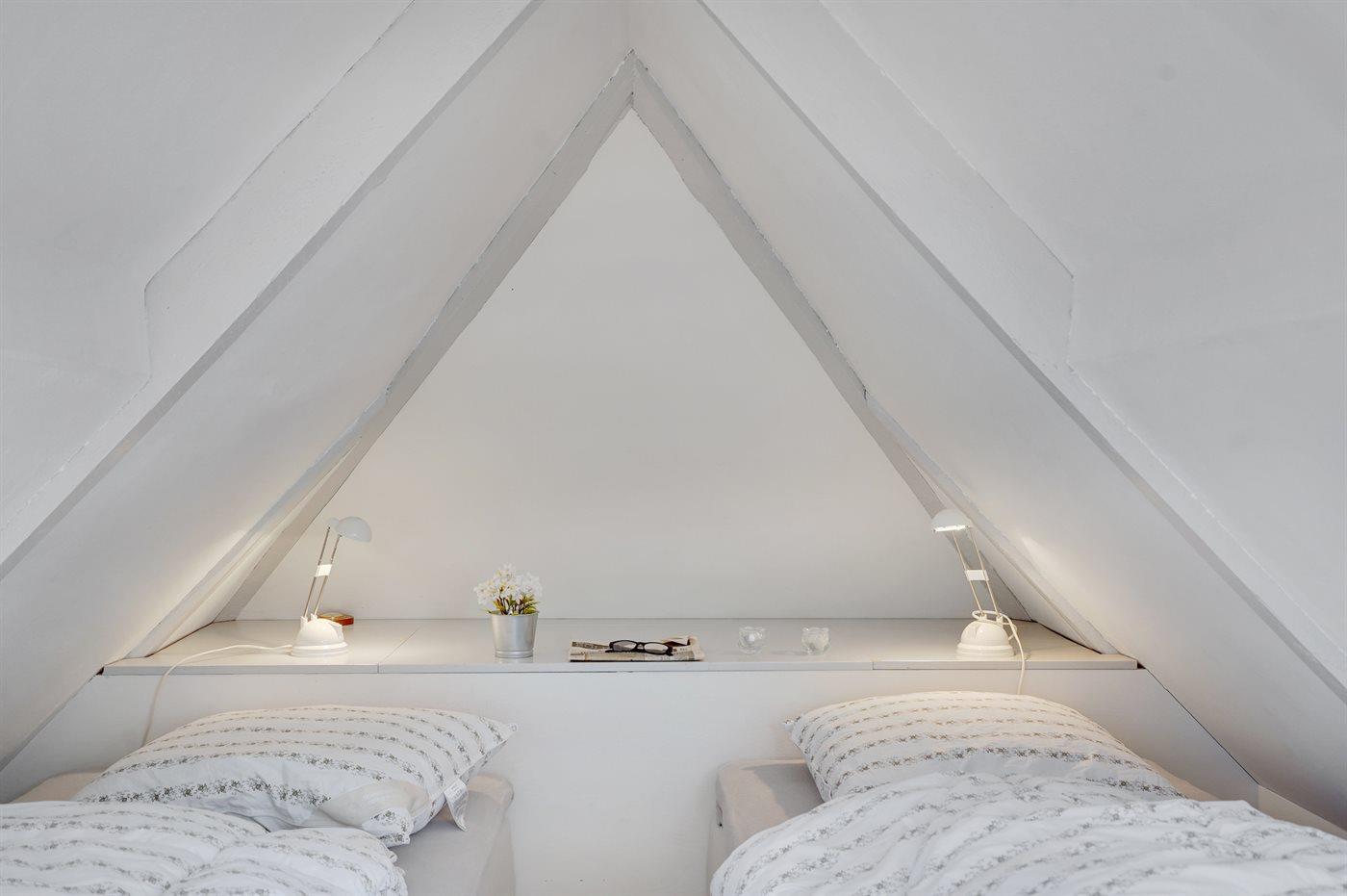 Es gibt einen Schlafraum. 2 Schlafplätze in einem Doppelbett. 2 Schlafplätze in Einzelbetten.1 Schlafplatz in einem Etagenbett. 2 von diesen Schlafplätzen befinden sich im offenen Obergeschoss.