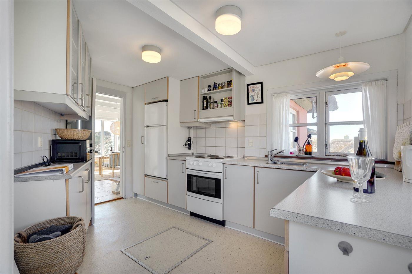 Die Küche ist mit Kühlschrank ausgestattet. Außerdem gibt es 4 elektrische Kochplatten, Umluftofen, Mikrowelle sowie Geschirrspüler.