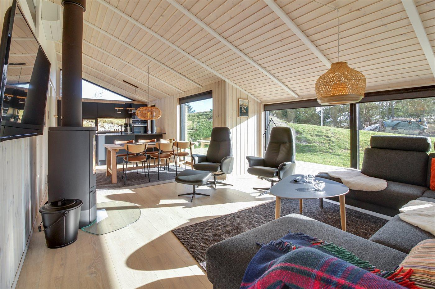Das Ferienhaus eignet sich für 9 Personen sowie 1 Kleinkind bis zu 3 Jahren. 3 der Schlafplätze eignen sich jedoch nur für größere Kinder (4-11 Jahre). Die Ferienunterkunft hat eine Wohnfläche von 87 m² und wurde 2022 gebaut. Haustiere dürfen nicht mitgebracht werden. In der Ferienunterkunft ist eine energiesparender Luft zu Luft Wärmepumpe installiert. Fußbodenheizung in allen Klinkerböden. Die Ferienunterkunft ist mit Waschmaschine ausgestattet. Wäschetrockner. Tiefkühlmöglichkeit mit 60 Liter Nutzinhalt. Es gibt außerdem einen Kaminofen. Für die jüngsten Feriengäste ist 1 Kinderhochstuhl vorhanden.