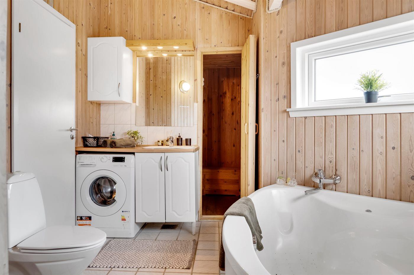 Es gibt 1 Badezimmer mit Duschnische und 2 Toiletten, davon 1 Gästetoilette. Fußbodenheizung in 1 Badezimmer. Es steht eine Sauna zur Verfügung in der Sie sich so richtig entspannen können.