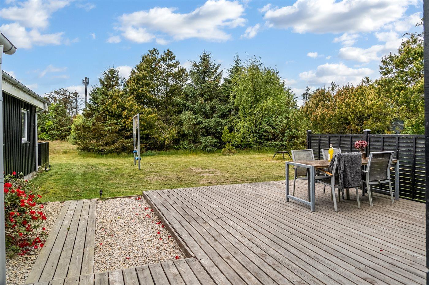 Die Ferienunterkunft liegt auf einem 1260 m² großen Naturgrundstück. Die Entfernung zum Meer beträgt 900 m. Die nächste Einkaufsmöglichkeit liegt 500 m entfernt. Es steht ein offenes Terrassenareal zur Verfügung. Schaukel. Es steht ein Grill zur Verfügung. Parkplatz auf dem Grundstück.