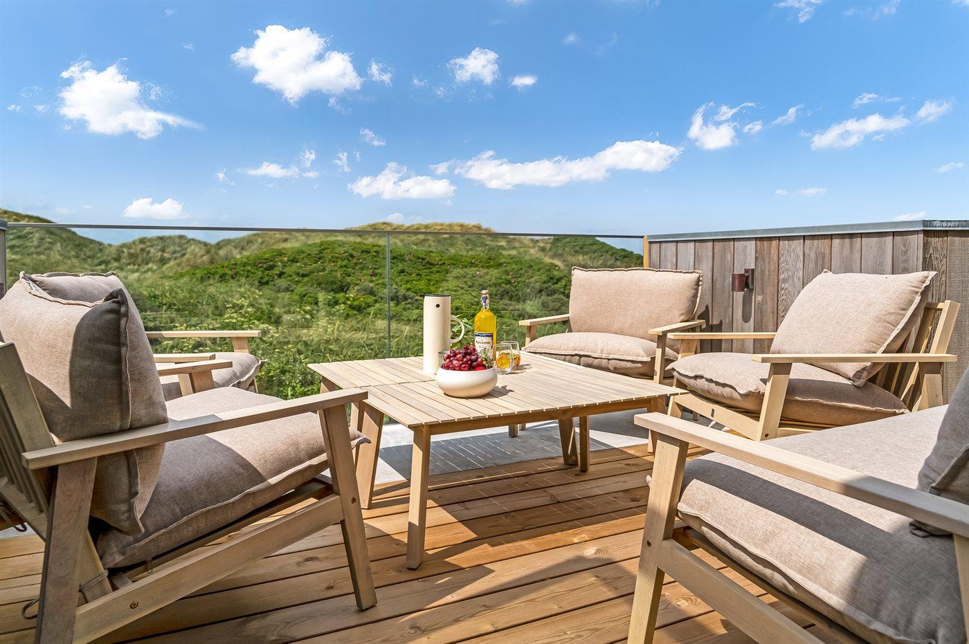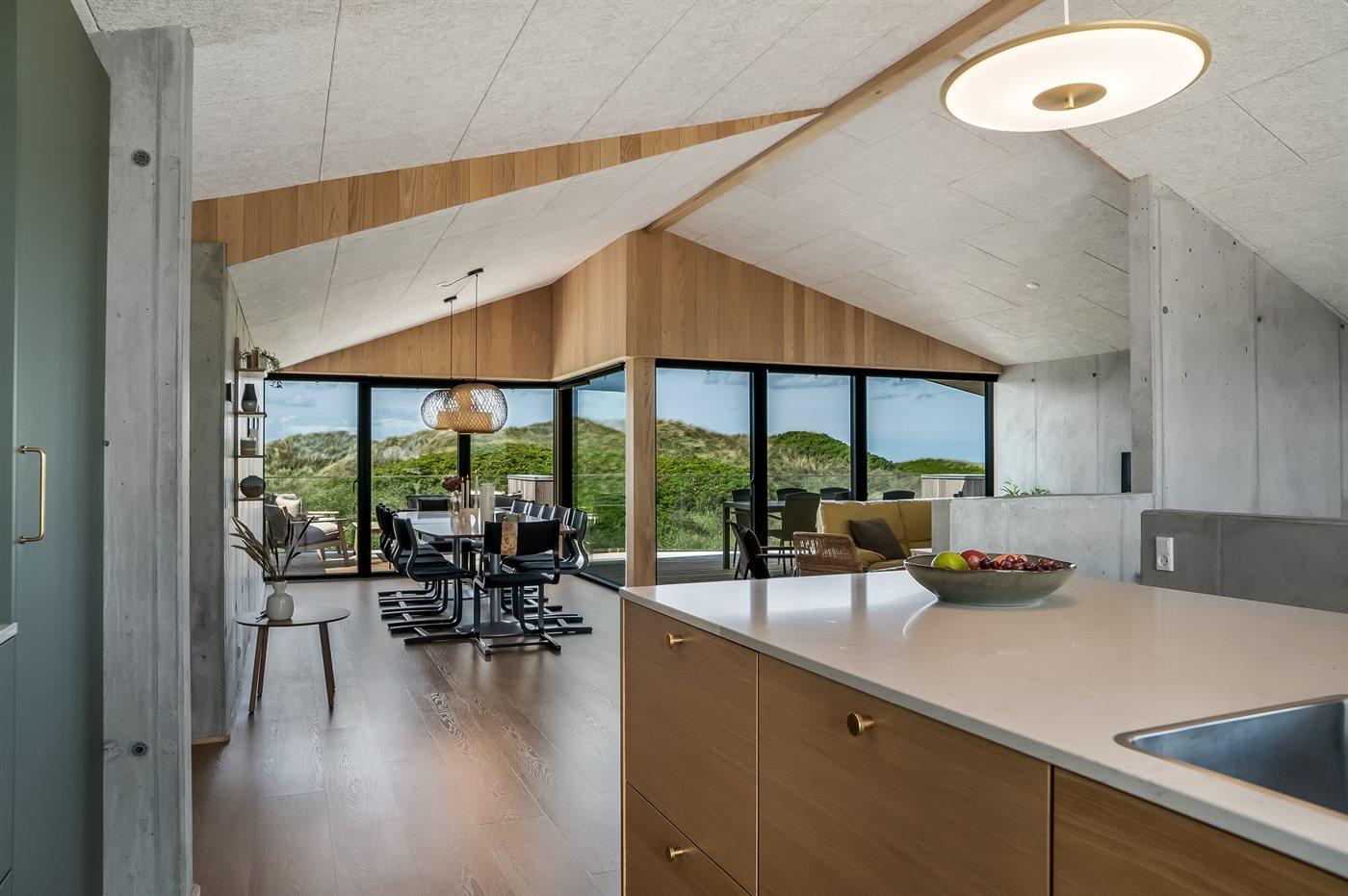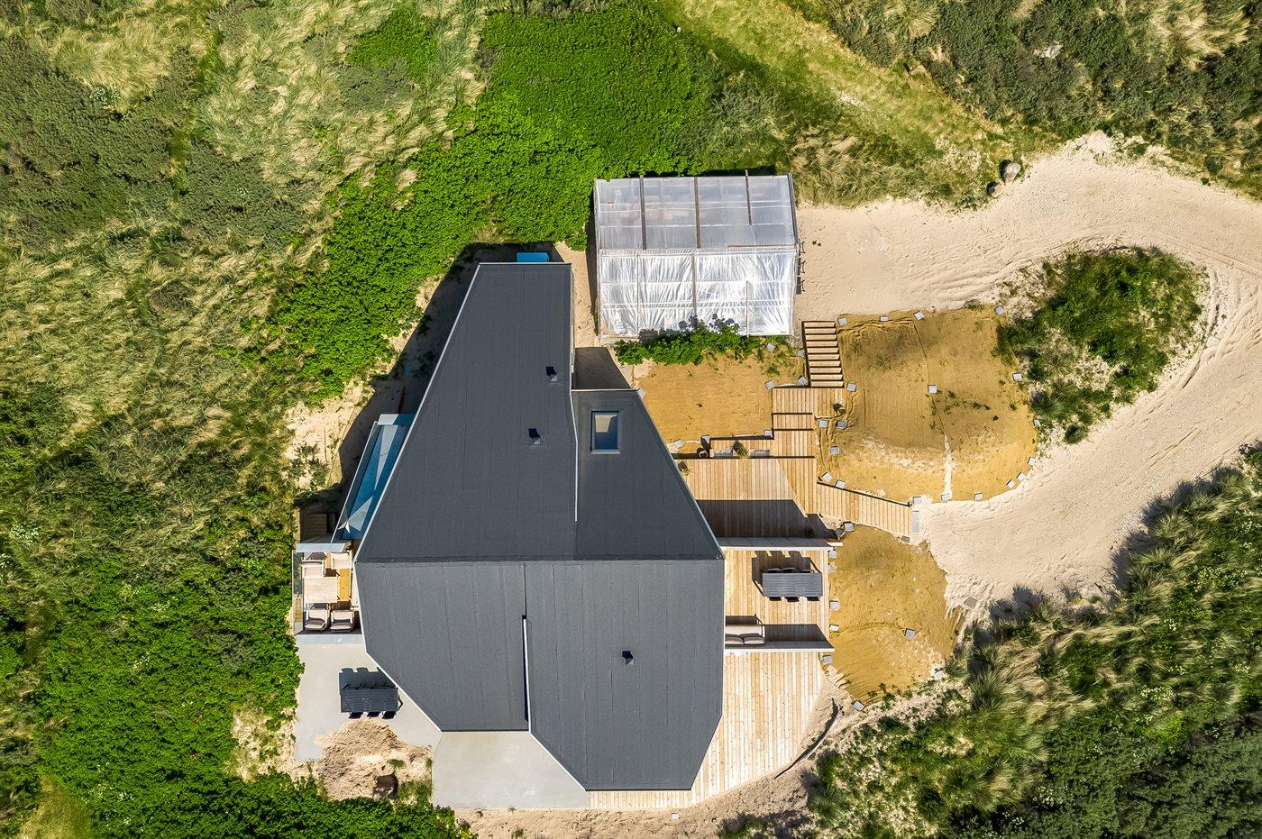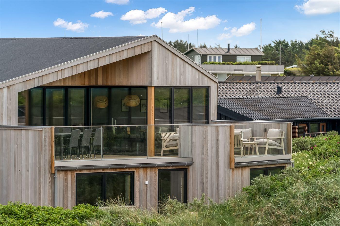 Das Haus liegt einzigartig am Ende einer Sackgasse mit den Dünen und dem Meer im Westen und dem unter Naturschutz stehenden Gebiet Munkens Klit im Norden. Vom erhöhten Küchen- und Wohnbereich hast du einen fantastischen Blick auf das Meer und die Dünen, mit direktem Zugang zu den Terrassen, auf denen du die Morgen- und Abendsonne mit Meerblick genießen kannst. Lausche dem Rauschen der Nordsee von den fünf Doppelzimmern aus, die mit großen Fenstern zu den Dünen im Westen hin ausgerichtet sind.
