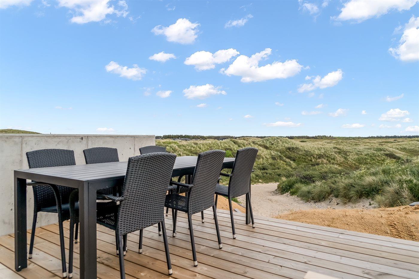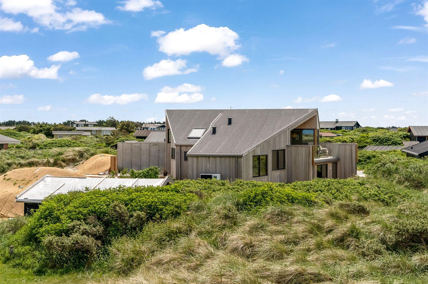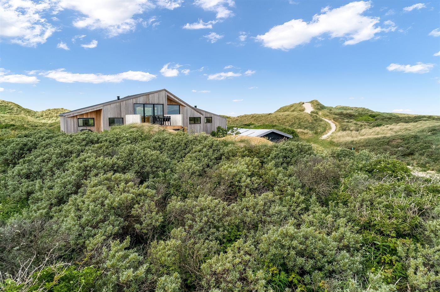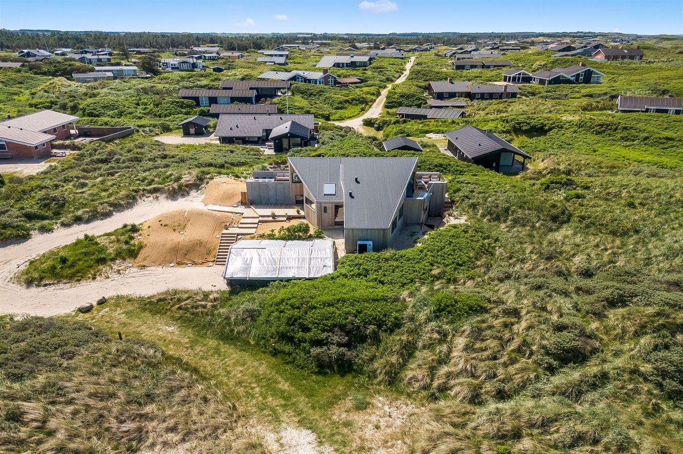 Das Ferienhaus liegt auf einem 2.586 m² großen Dünengrundstück. Das Meer ist nur 50 m entfernt. Die nächste Einkaufsmöglichkeit befindet sich in 400 m Entfernung. Zum Haus gehören offene Terrassenbereiche sowie eine überdachte Terrasse. Ein Grill steht zur Verfügung. Zudem gibt es eine Garage und Parkmöglichkeiten direkt am Haus.
