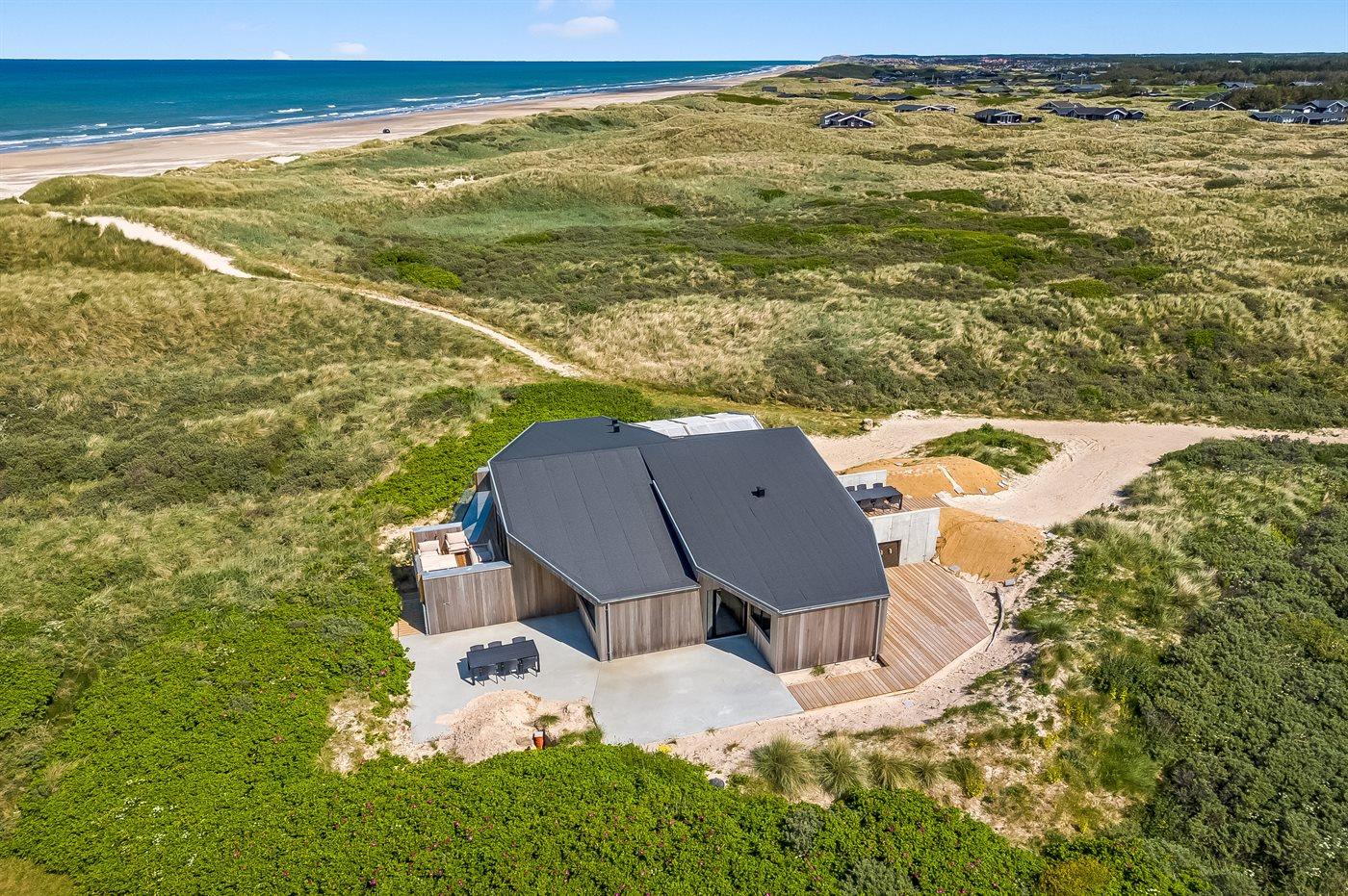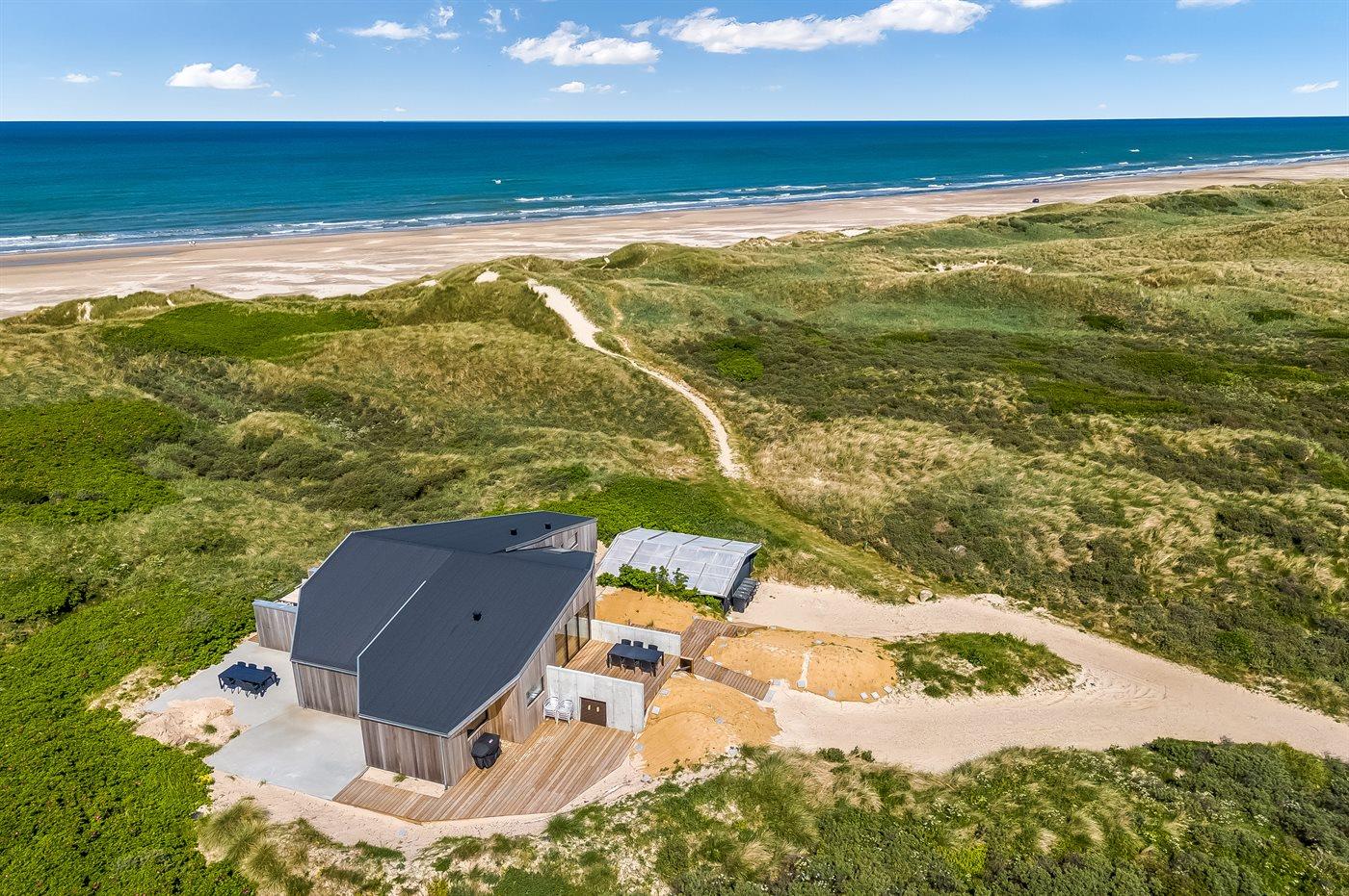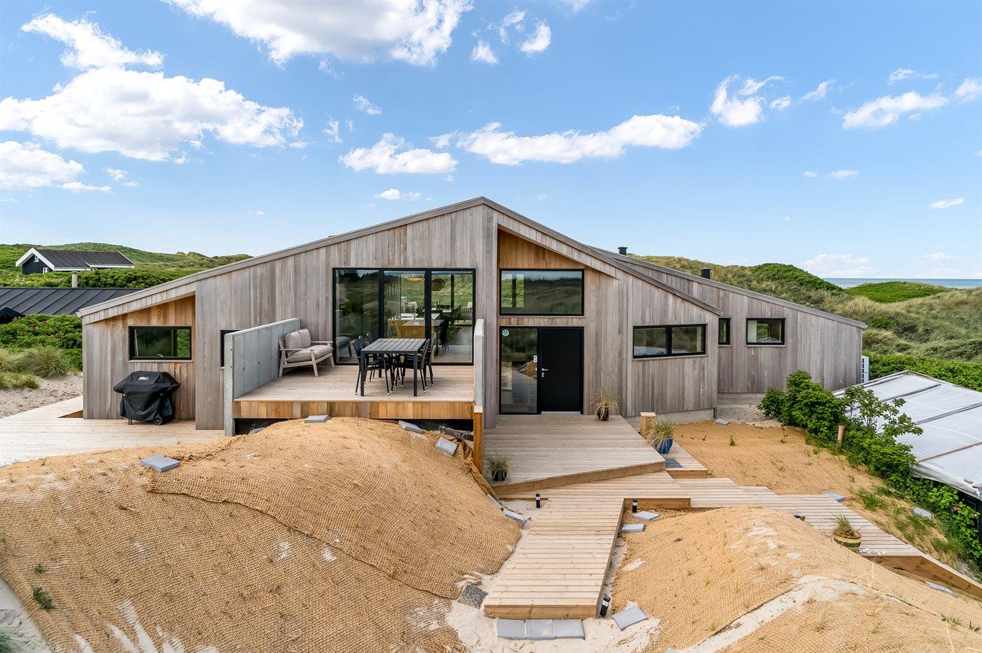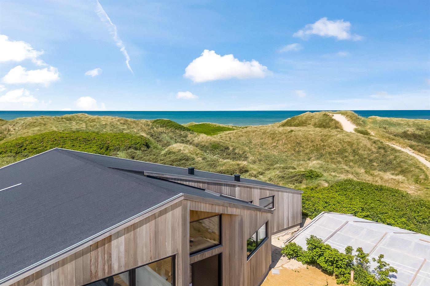 Genießen Sie Meerblick und Luxus in diesem neu erbauten Ferienhaus direkt an der Westküste Dänemarks.