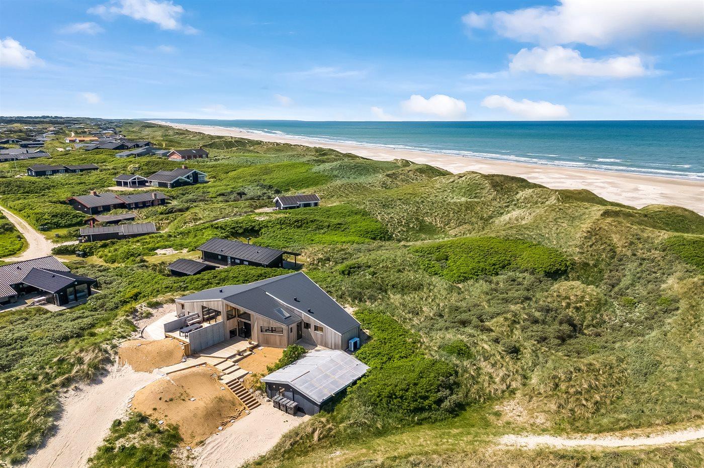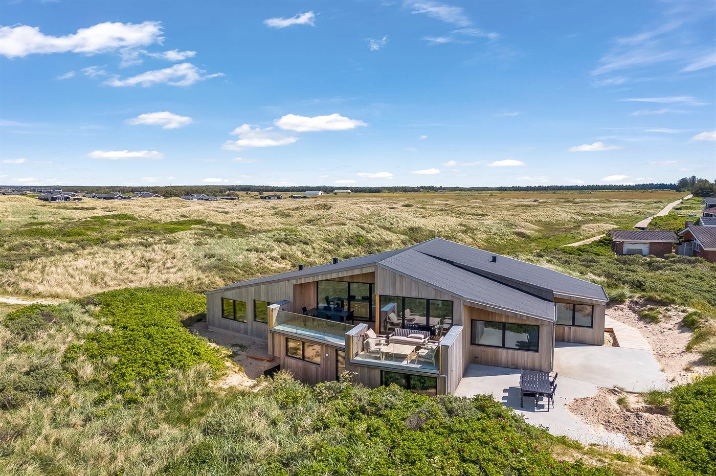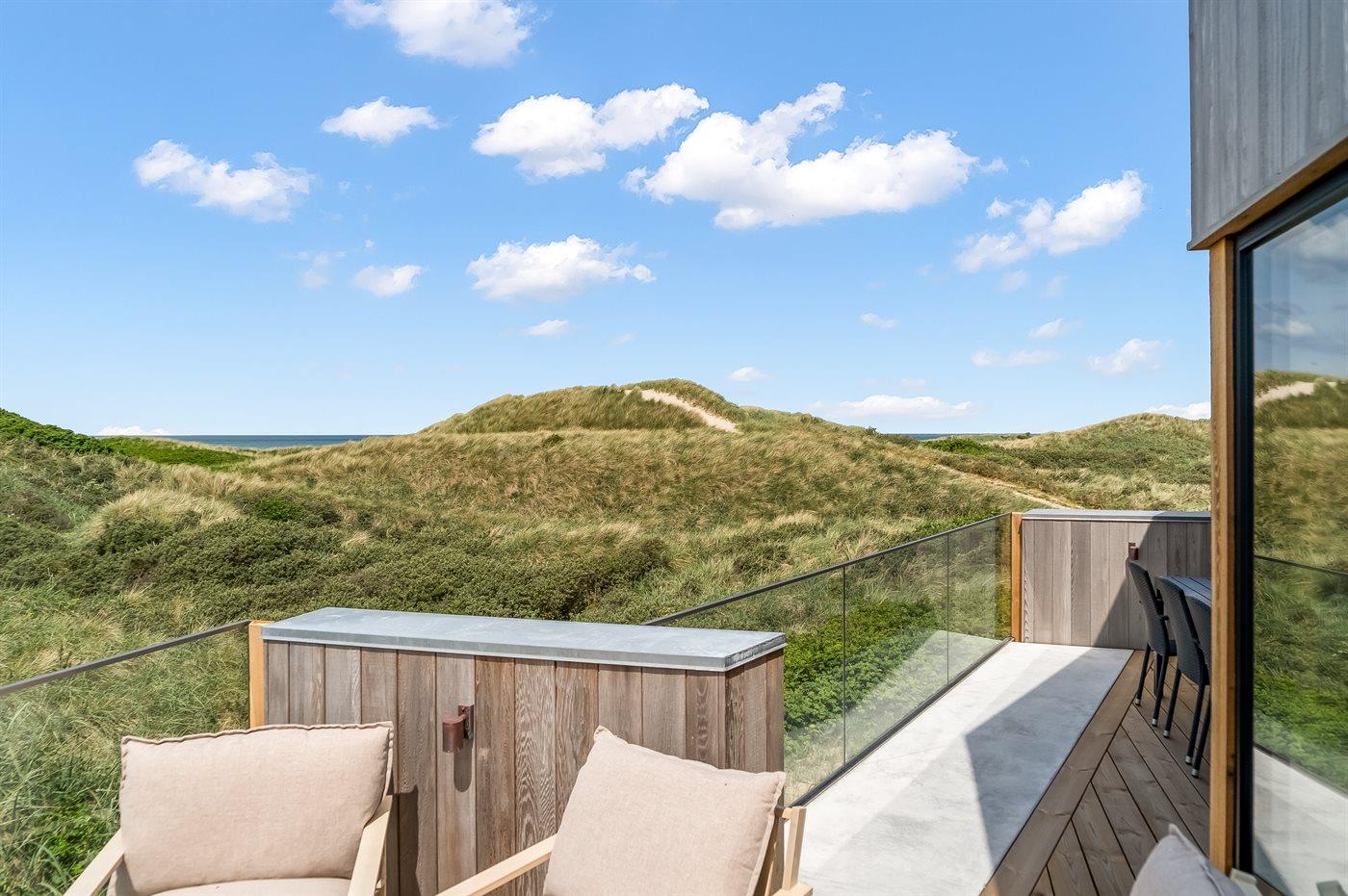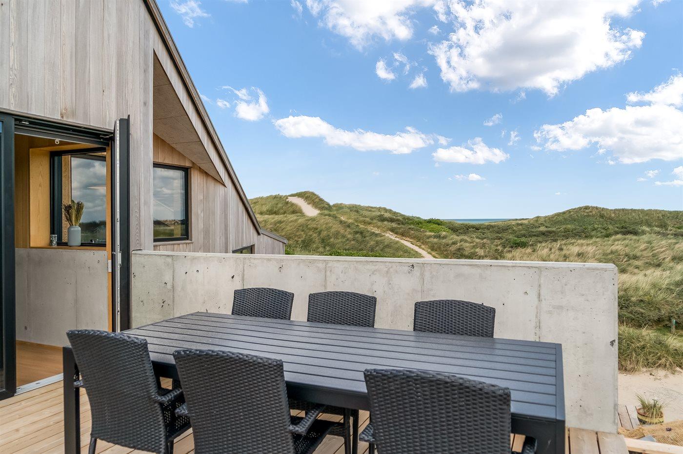 Genießen Sie Meerblick und Luxus in diesem neu erbauten Ferienhaus direkt an der Westküste Dänemarks.